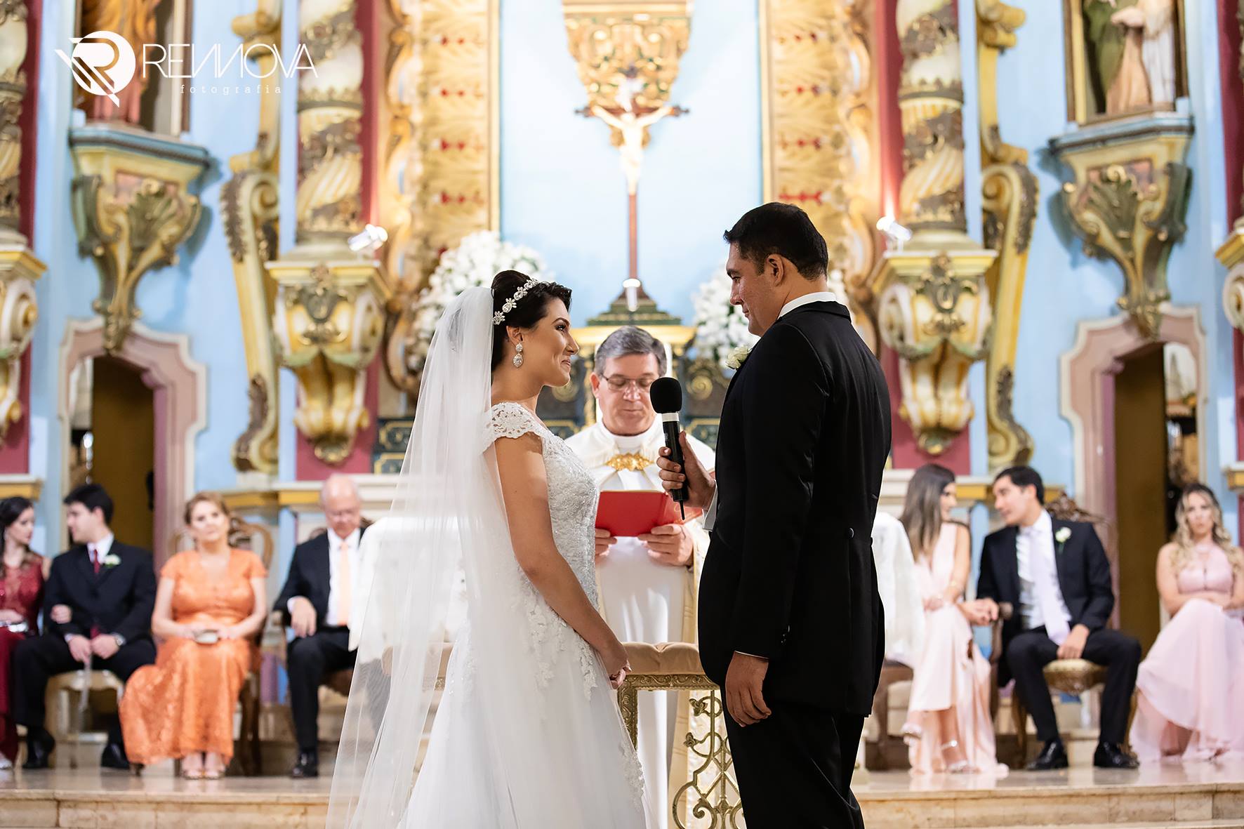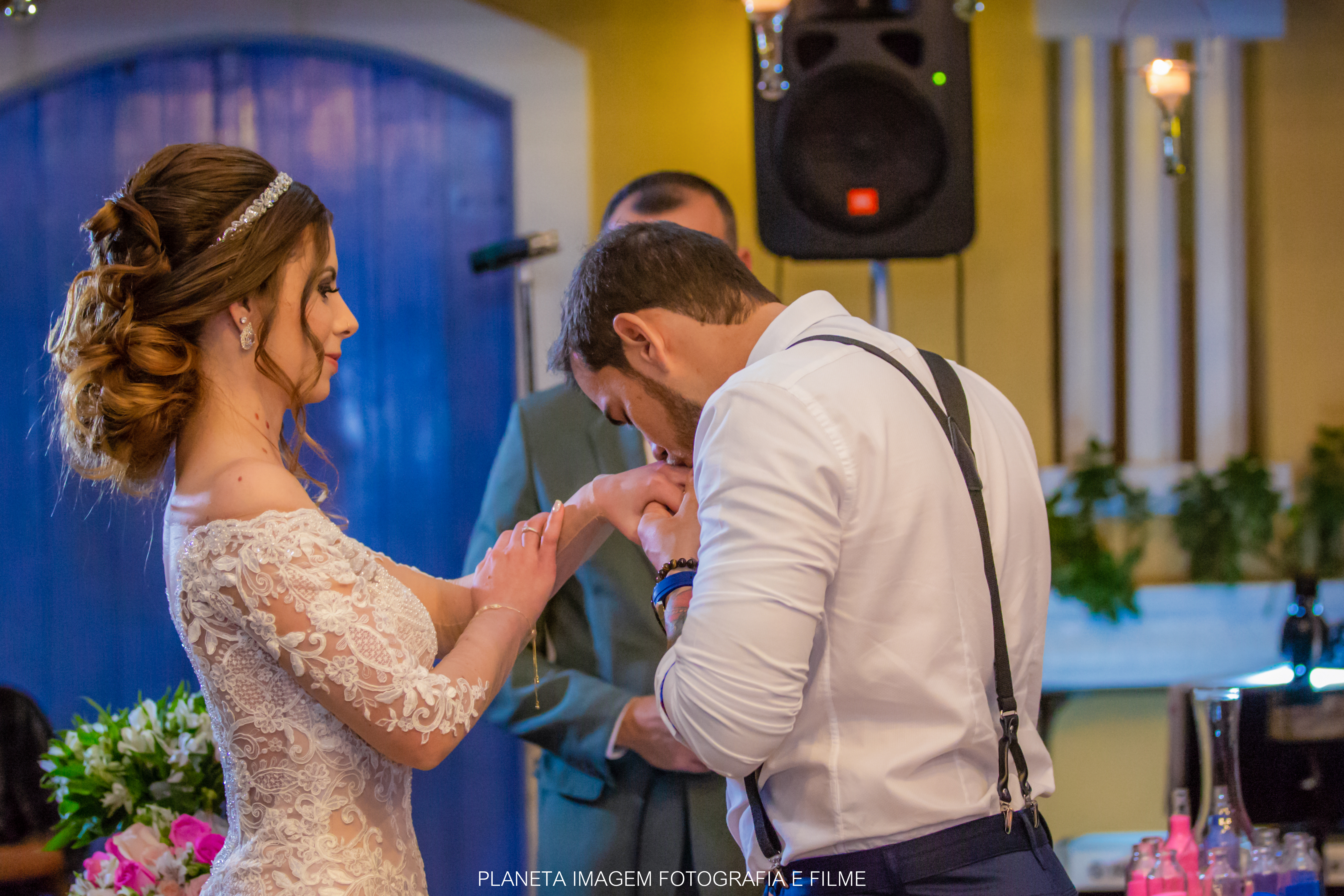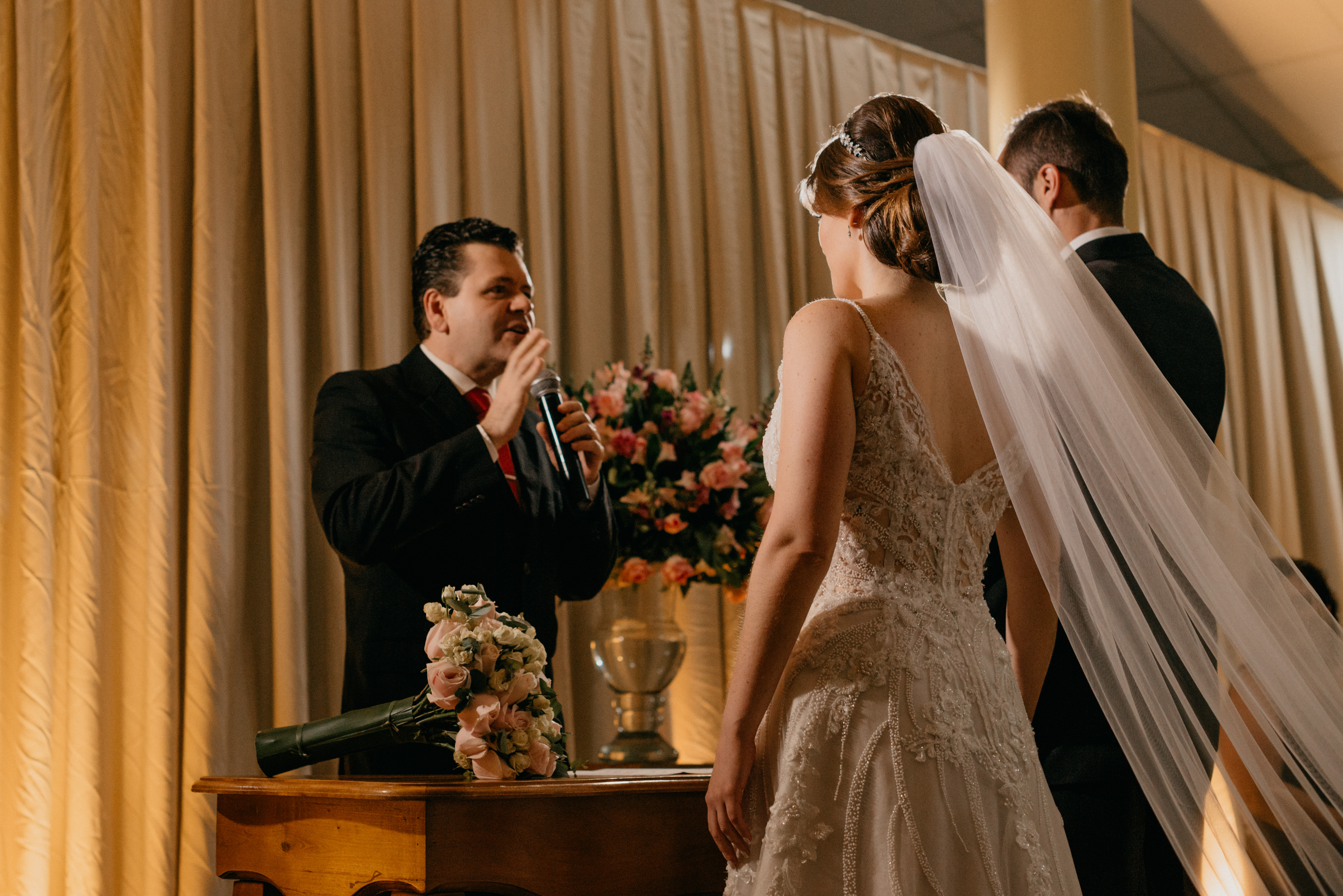 A cerimônia foi linda, contou um pouco da história dos dois, a paixão, o amor, o encontro!