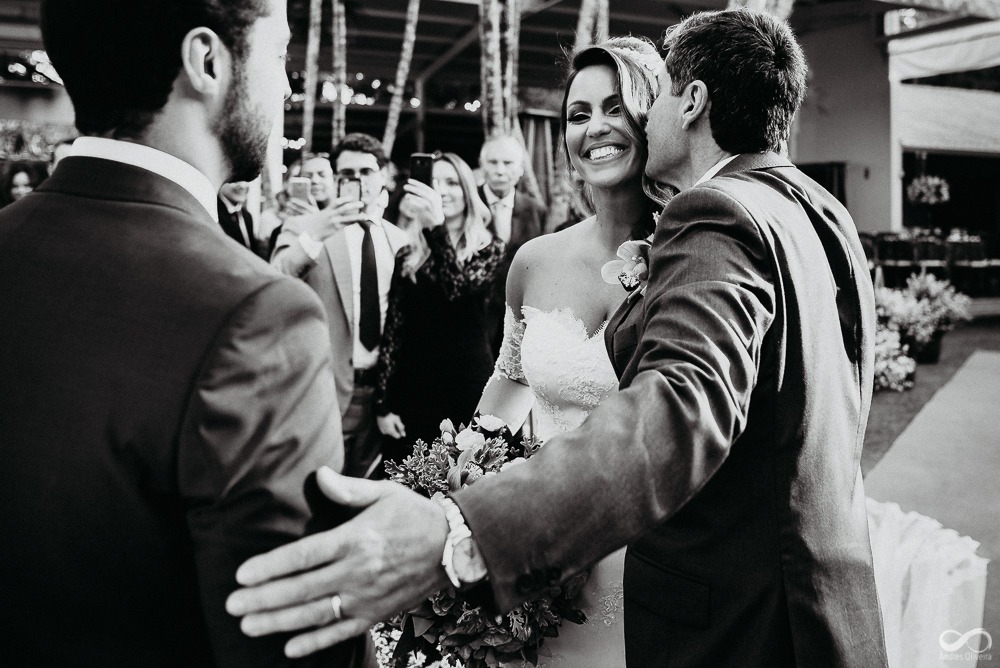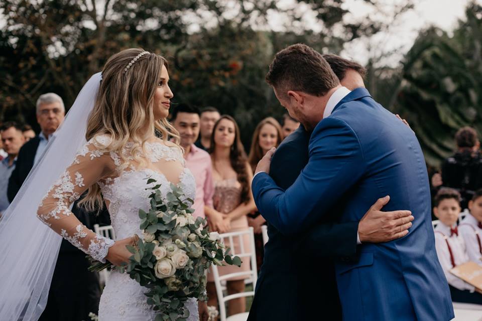 A cerimônia foi celebrada pelo pai da noiva, claro que regada a emoção… casar a própria filha, que emoção!