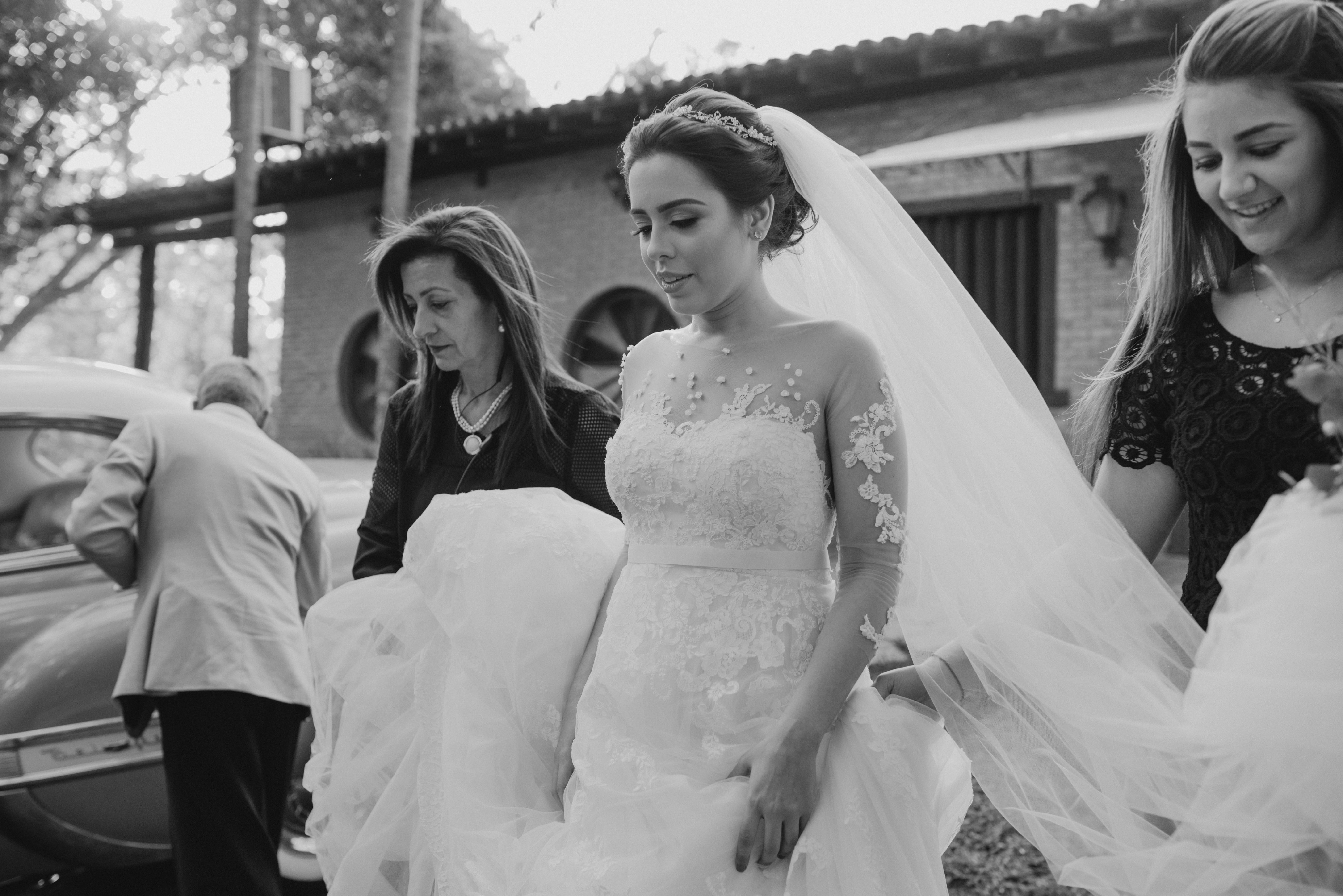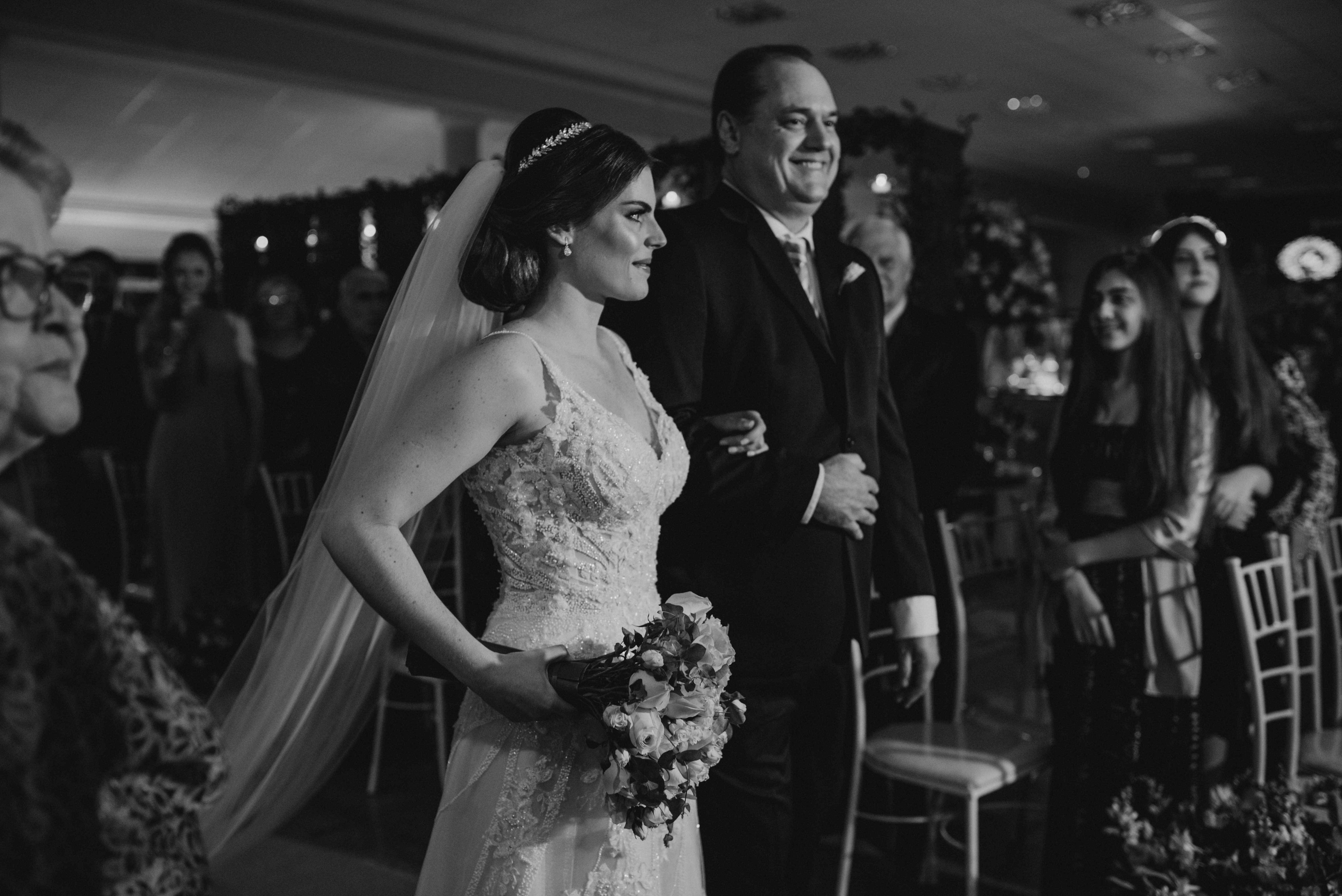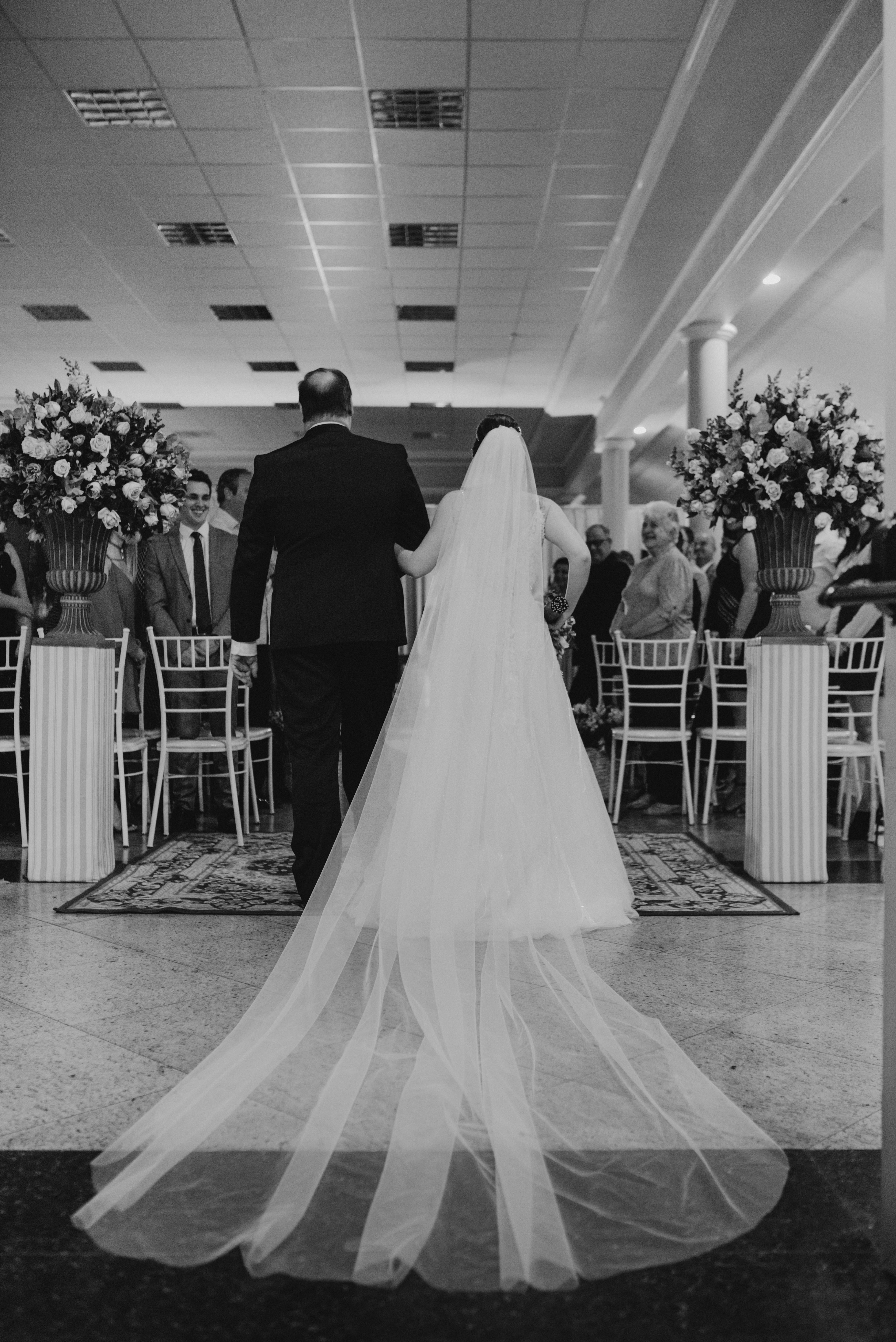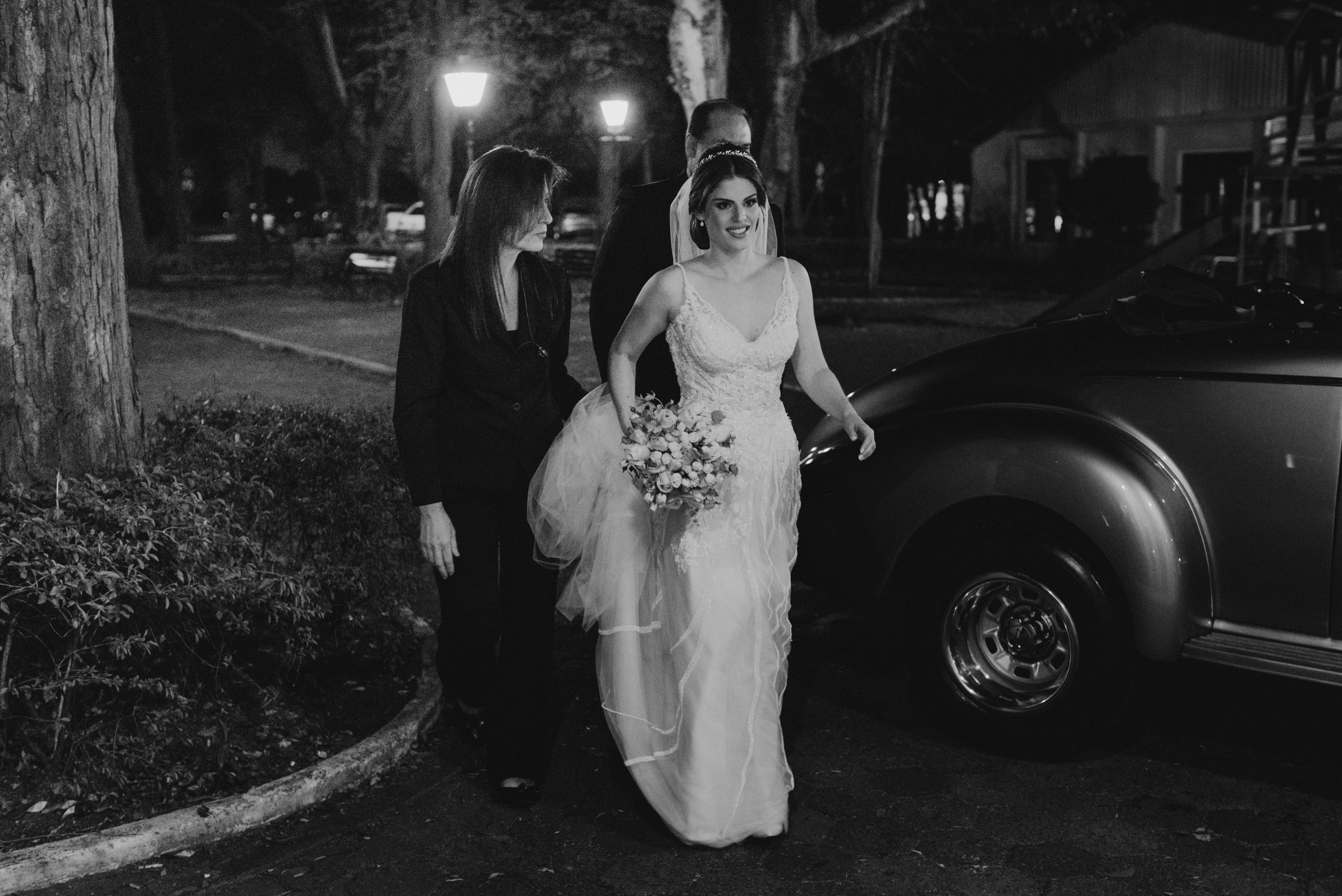 Eles chegaram, pai e noiva juntos no mesmo carro, e como sempre fui recebe-los e conversar, preparando o clima, conversando e descontraindo a noiva! Minha doce Ana Carolina estava tão nervosa, tão ansiosa... mas linda demais! Ela simplesmente olhou para mim e disse, "Flavia, quero ir embora!" Eu achando que era brincadeira... hahahaa, mas ela casou tá?!