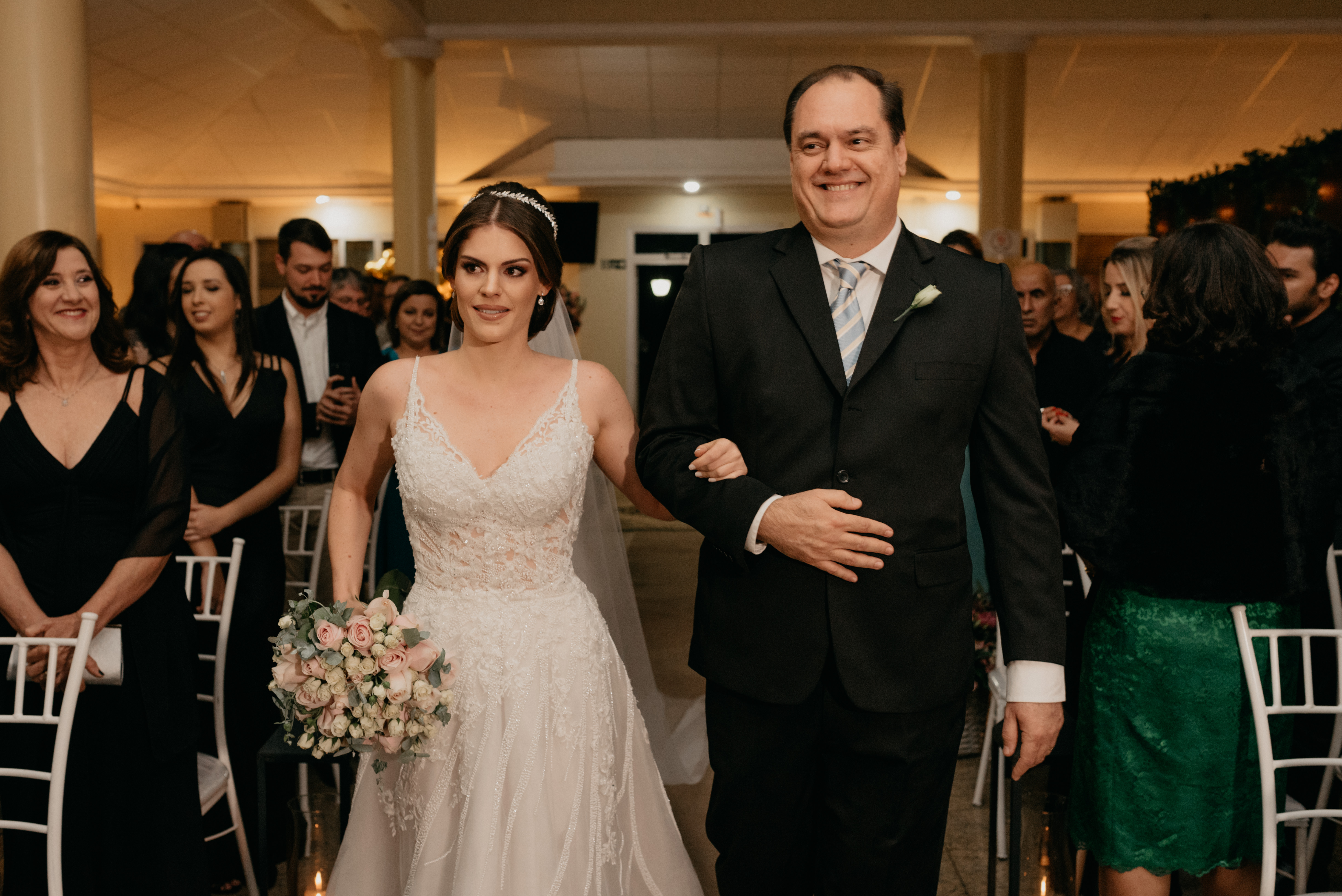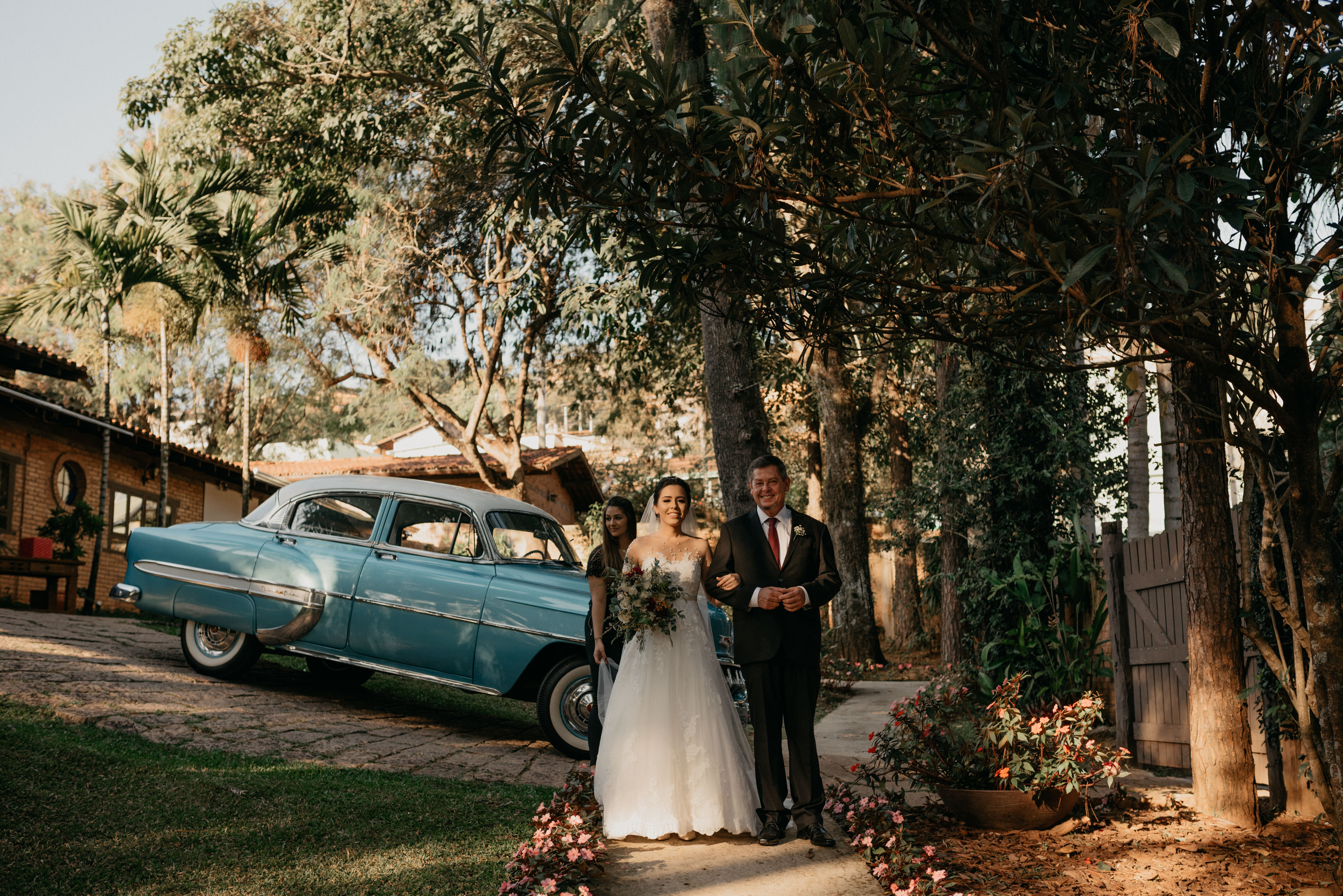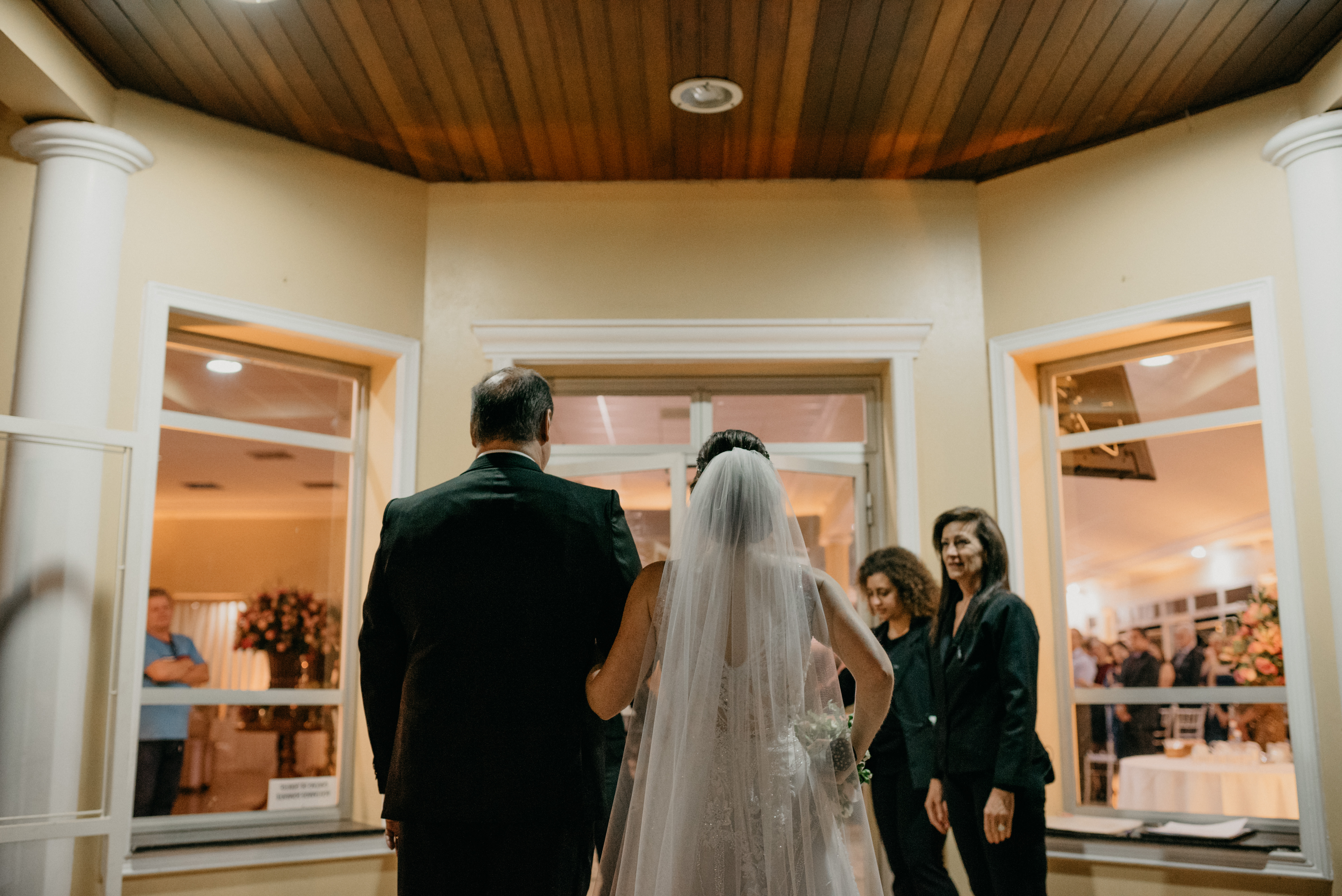 Eles chegaram, pai e noiva juntos no mesmo carro, e como sempre fui recebe-los e conversar, preparando o clima, conversando e descontraindo a noiva! Minha doce Ana Carolina estava tão nervosa, tão ansiosa... mas linda demais! Ela simplesmente olhou para mim e disse, "Flavia, quero ir embora!" Eu achando que era brincadeira... hahahaa, mas ela casou tá?!