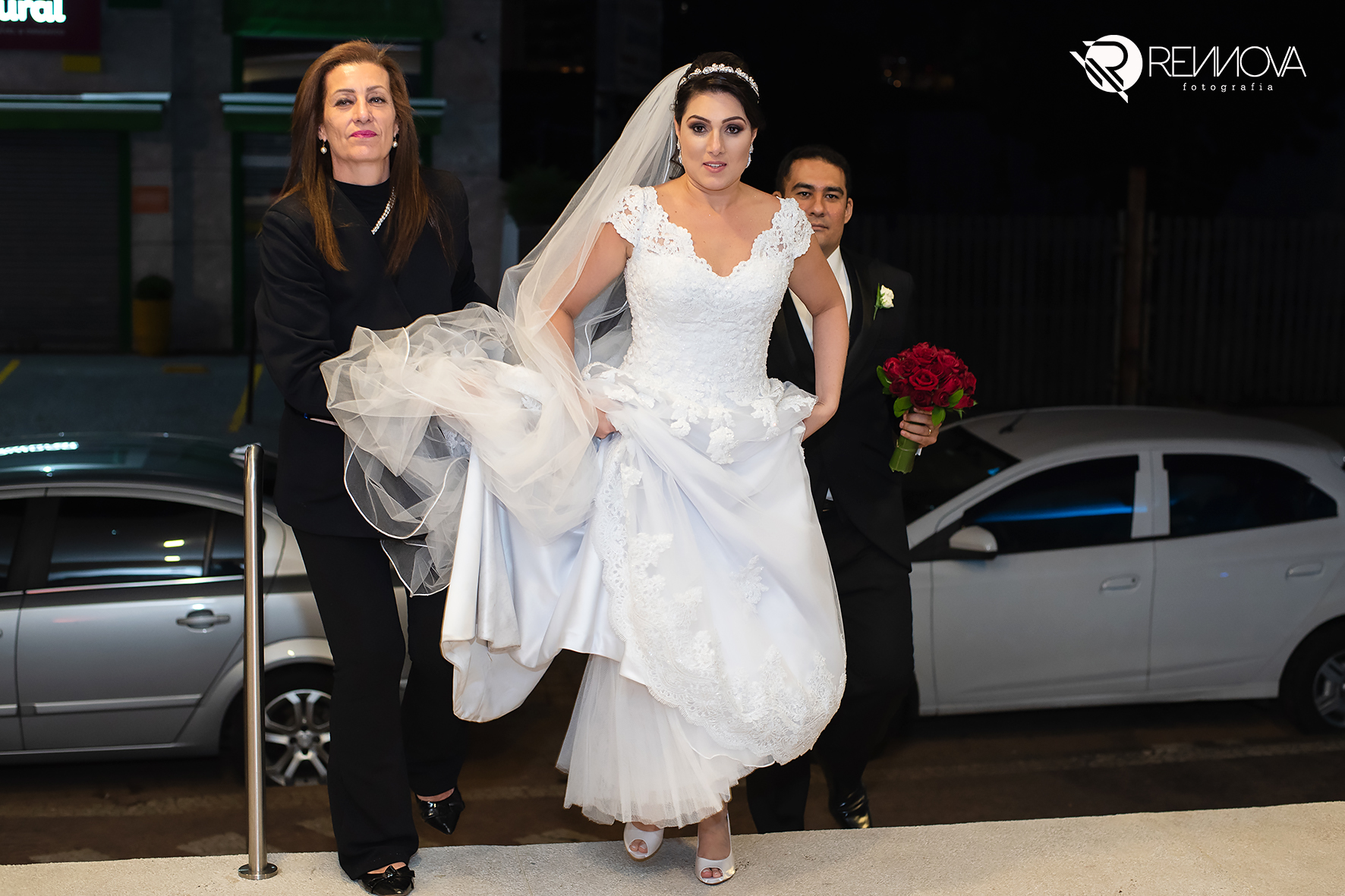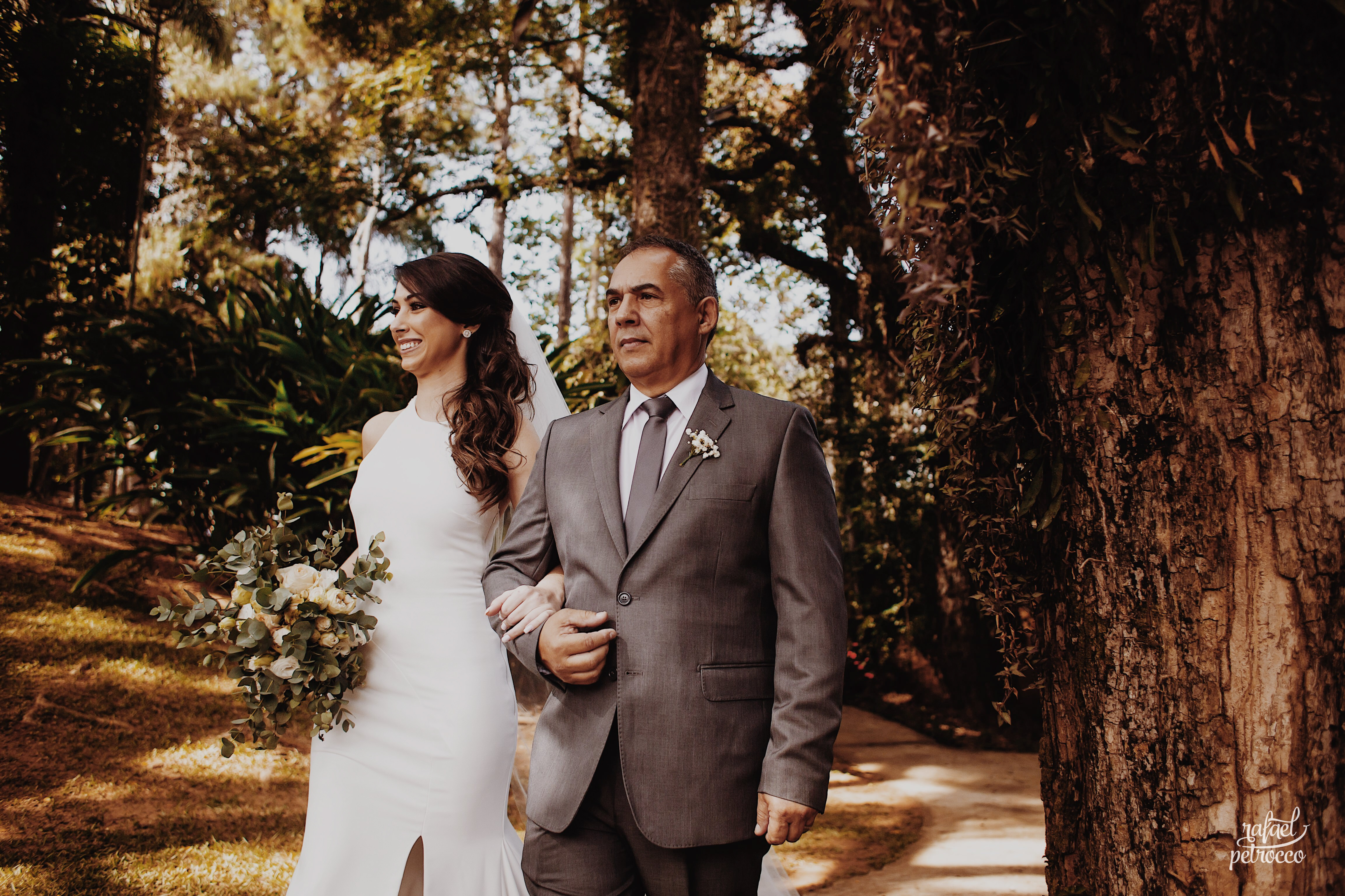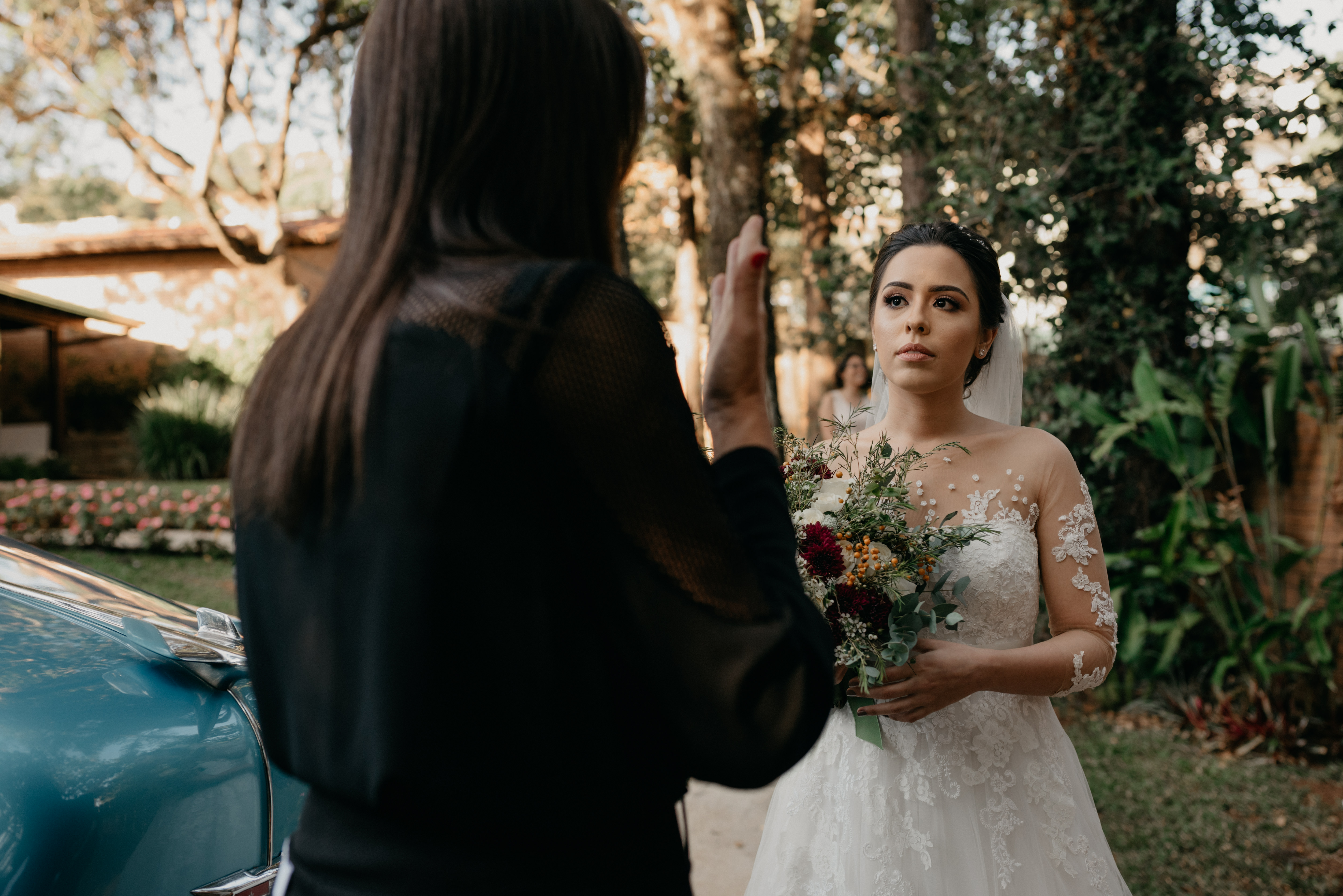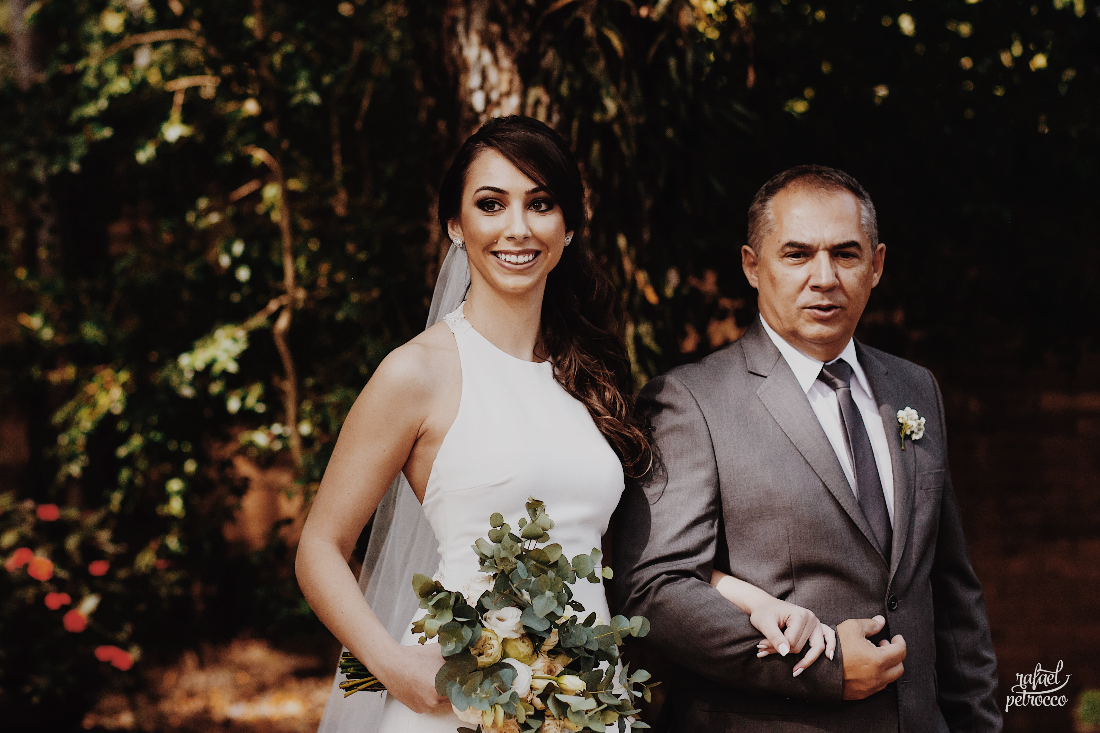 Eles chegaram, pai e noiva juntos no mesmo carro, e como sempre fui recebe-los e conversar, preparando o clima, conversando e descontraindo a noiva! Minha doce Ana Carolina estava tão nervosa, tão ansiosa... mas linda demais! Ela simplesmente olhou para mim e disse, "Flavia, quero ir embora!" Eu achando que era brincadeira... hahahaa, mas ela casou tá?!