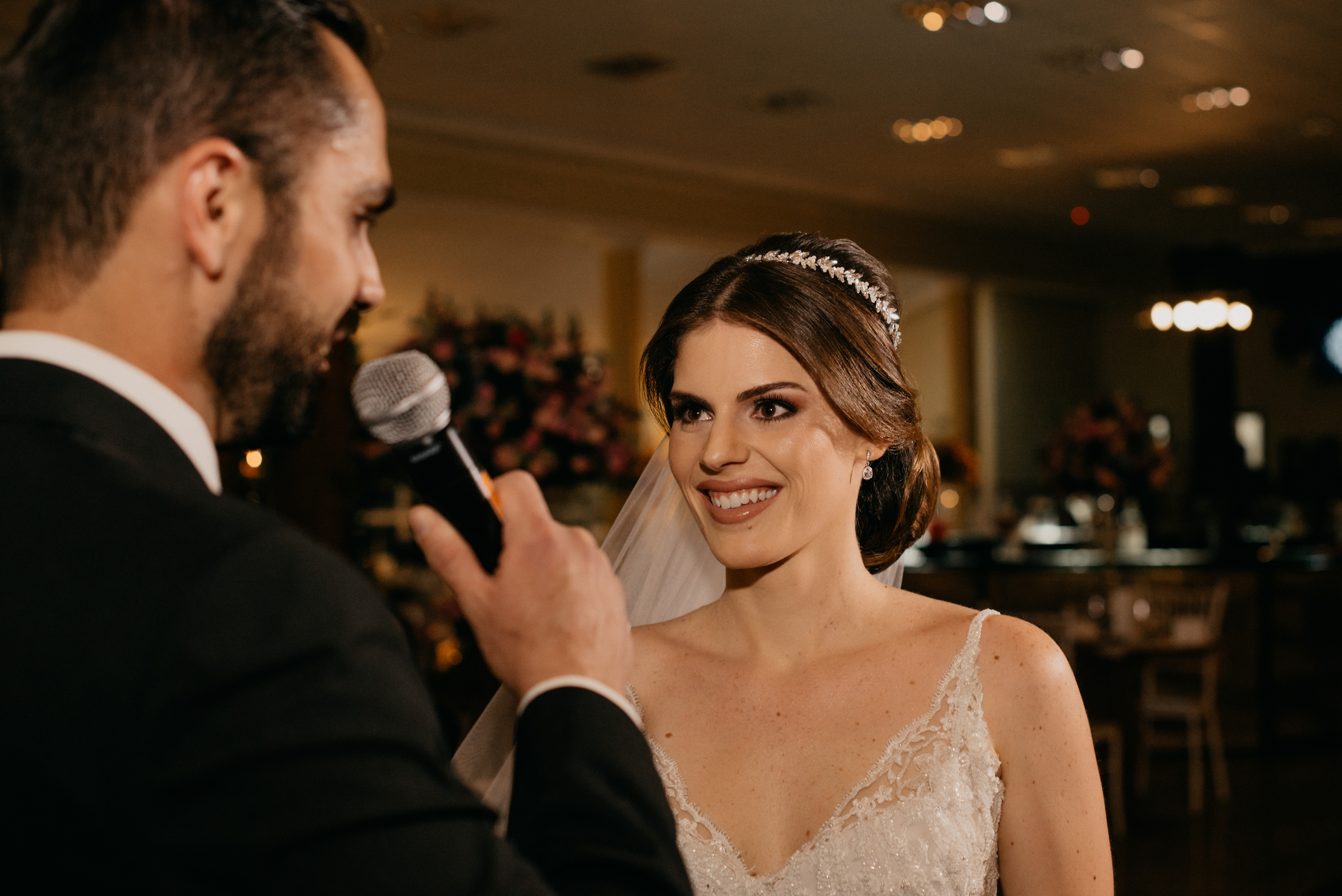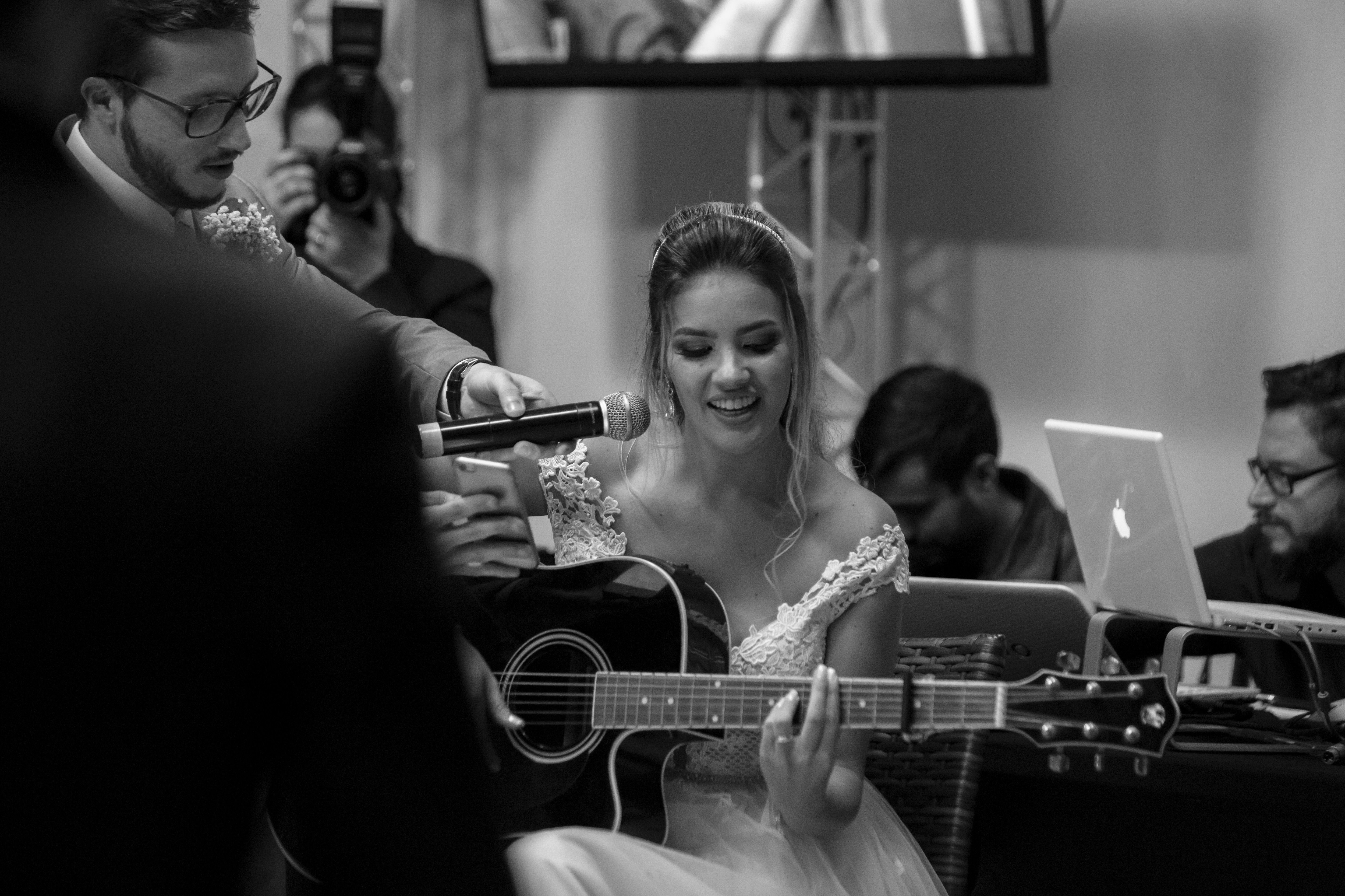 A festa foi cheia de surpresas… ela contou para o noivo, com a voz trémula, cheia de emoção, mas cantou!!!