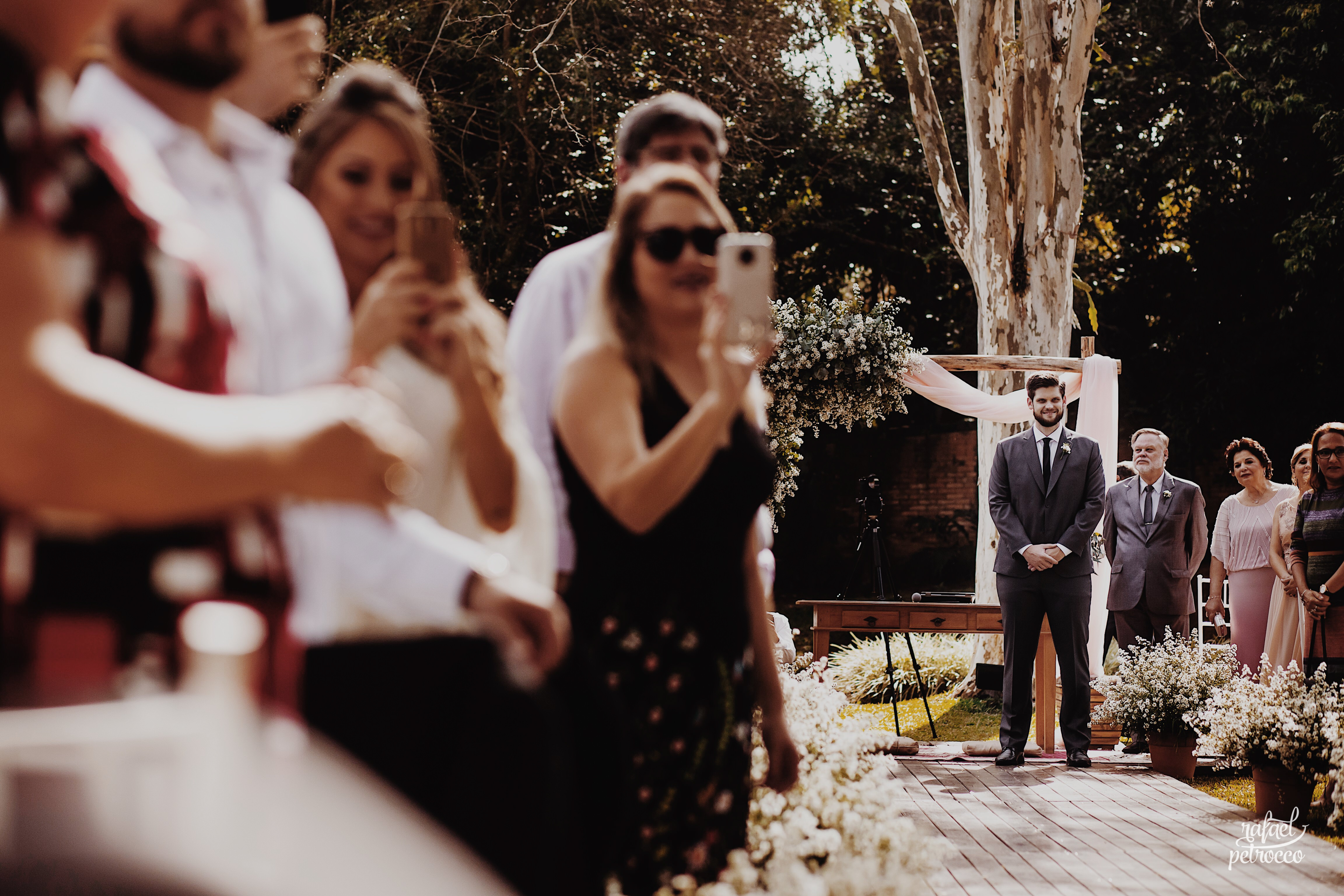 Uma cerimônia divertida, encantadora… o noivo estava tomado de fortes emoções, a mulher da vida dele estava entrando para ir ao seu encontro… e ele esperou de costas!!! Diferente, mas lindo!