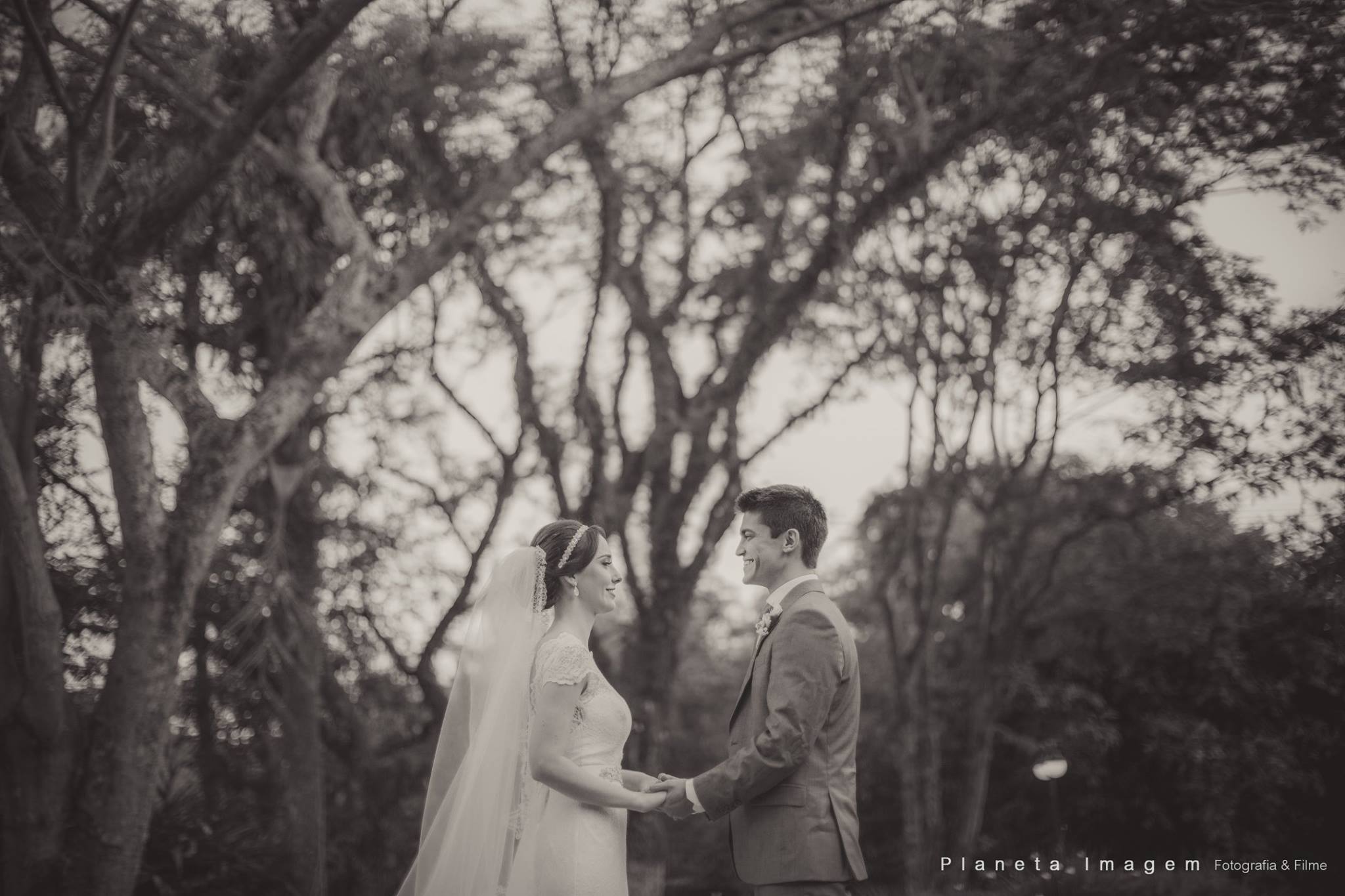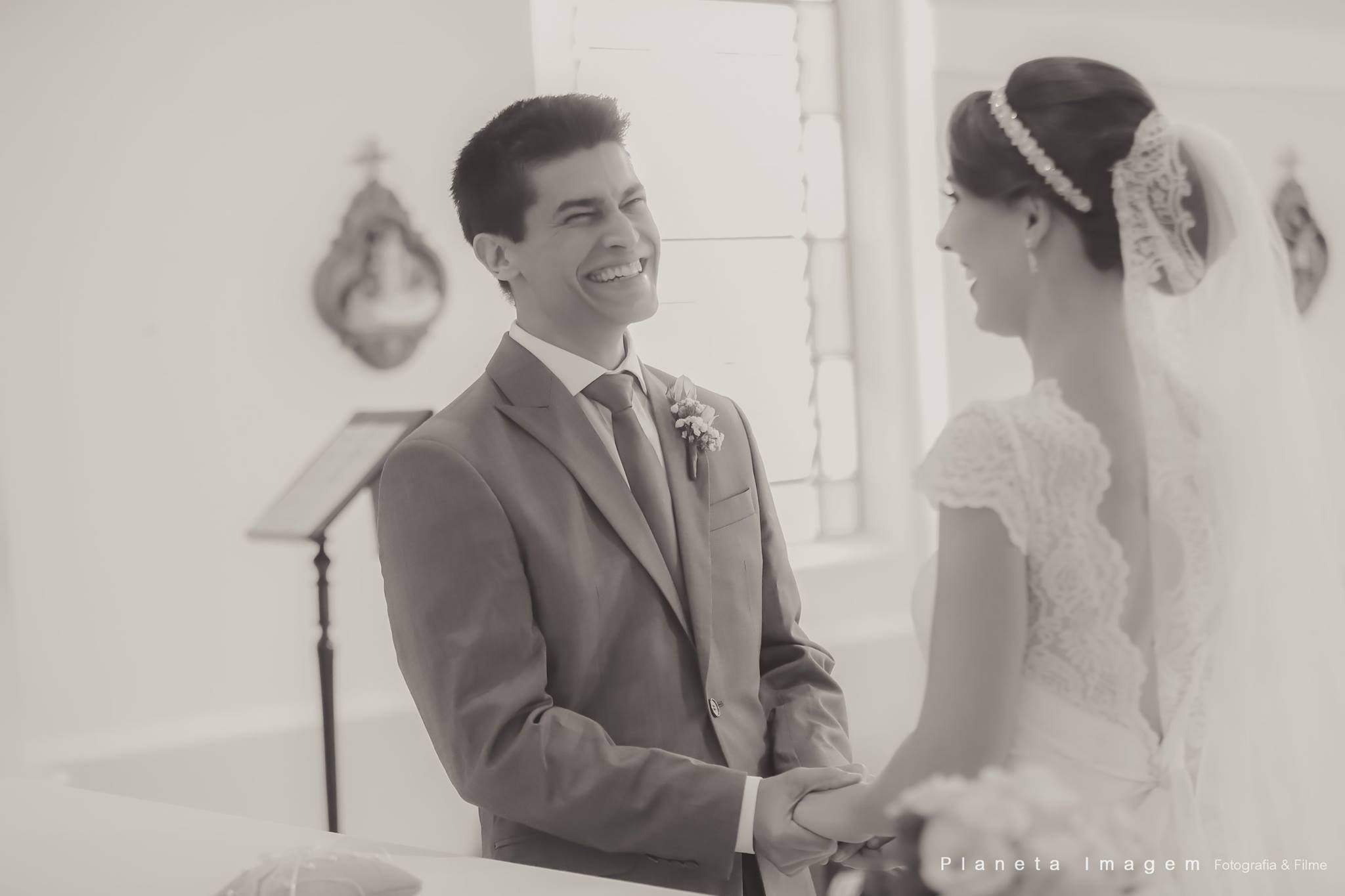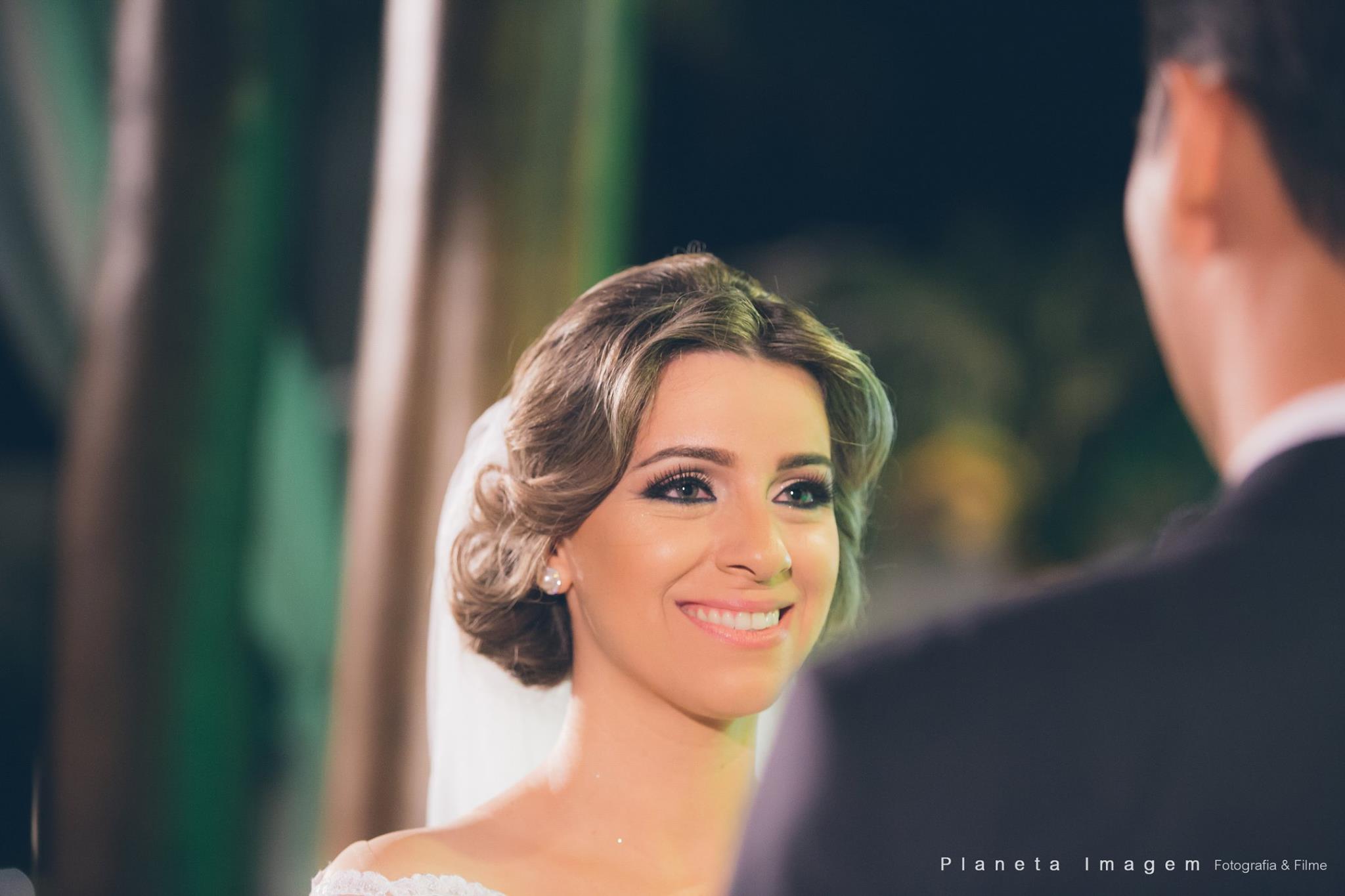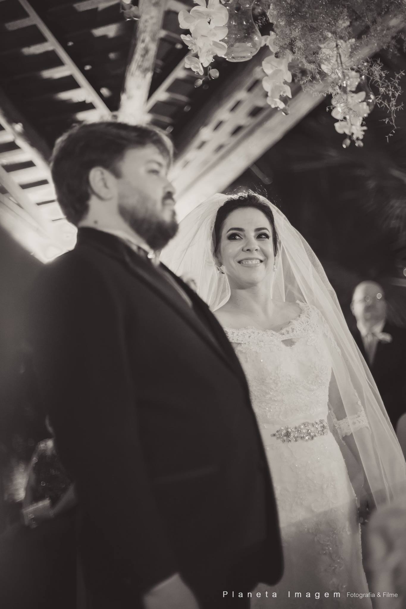 A noiva estava deslumbrante e o noivo só trocava olhares apaixonados!