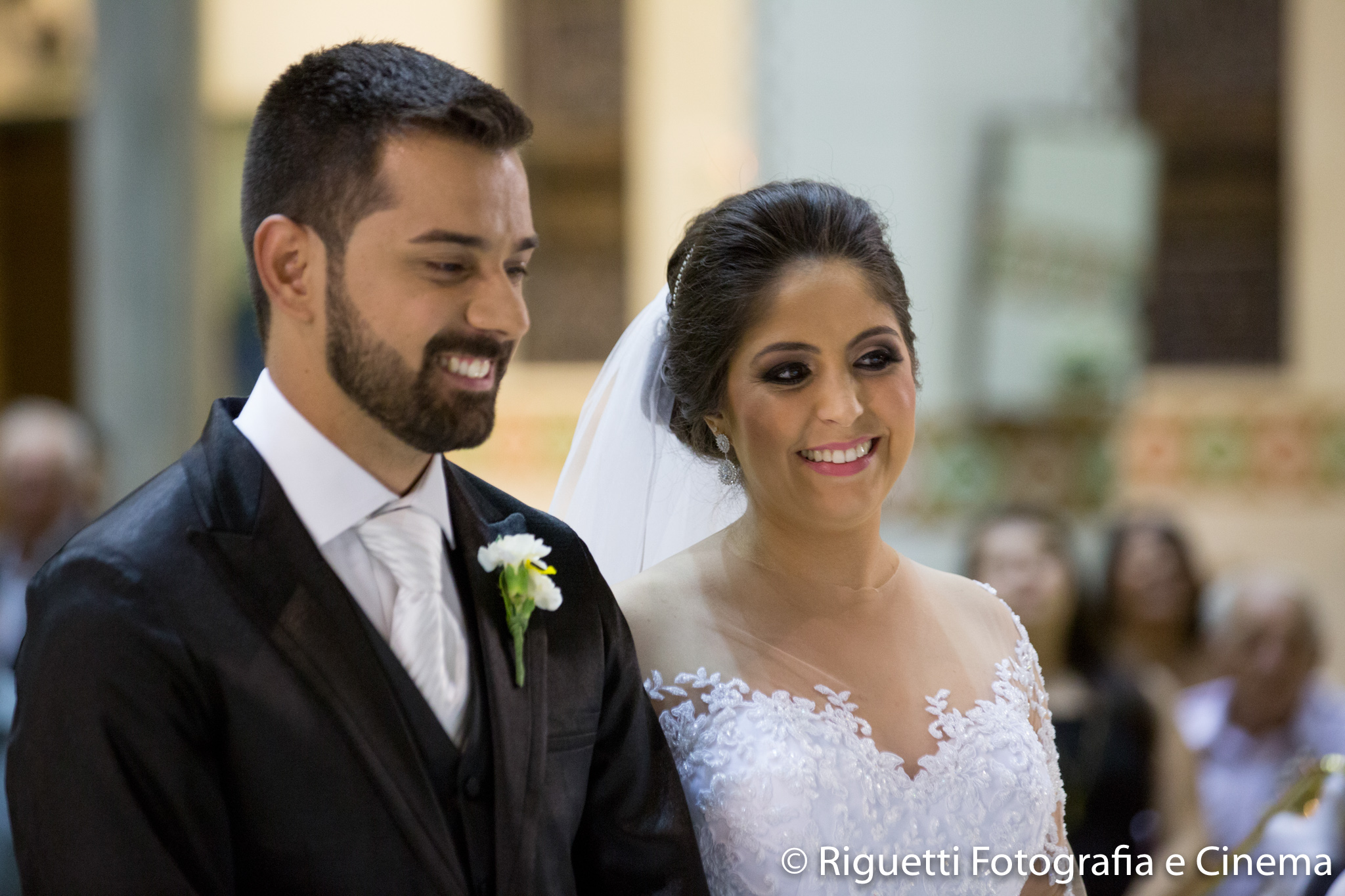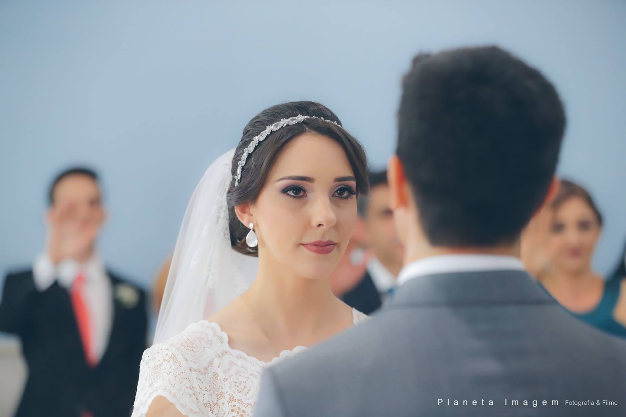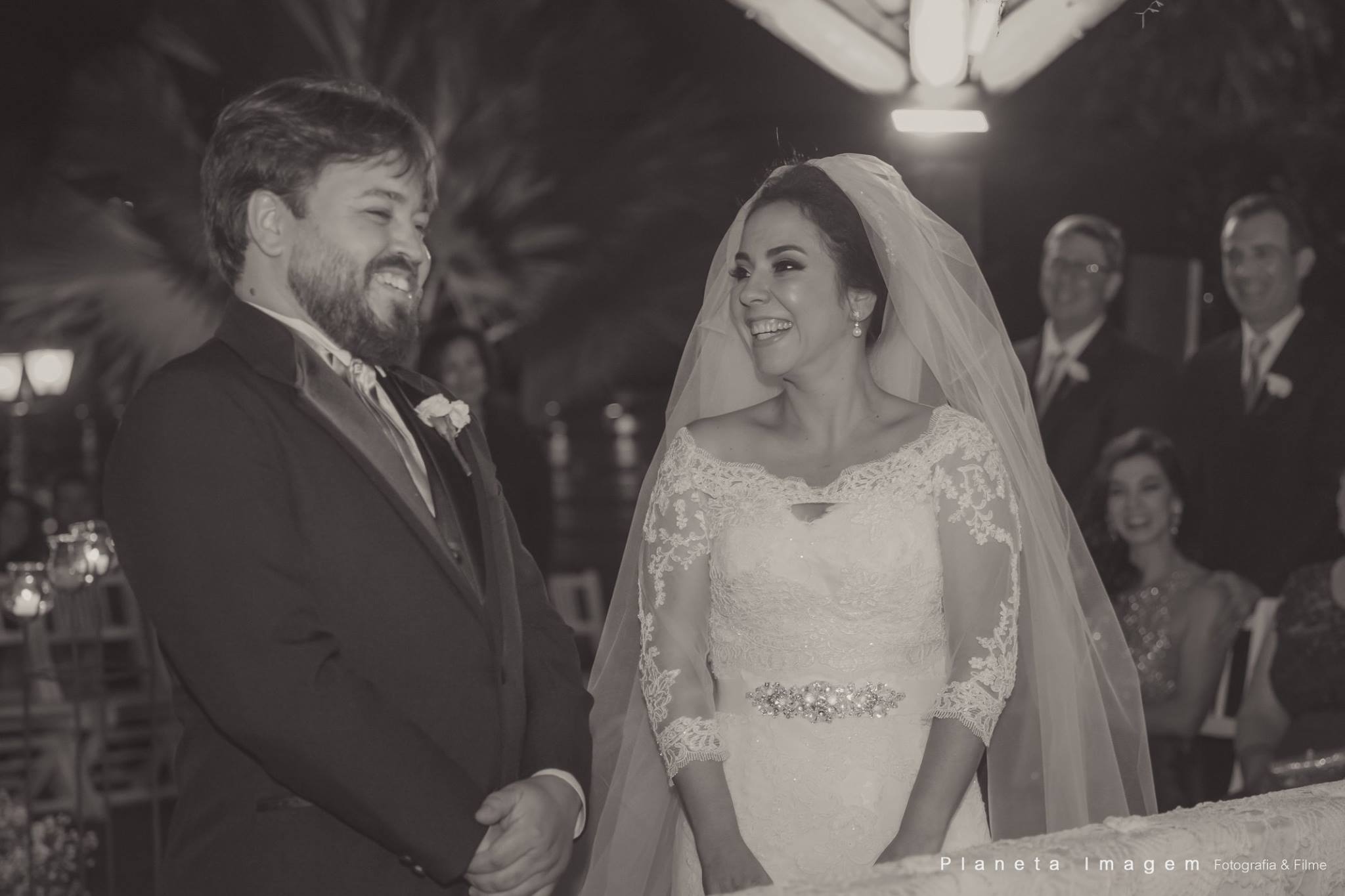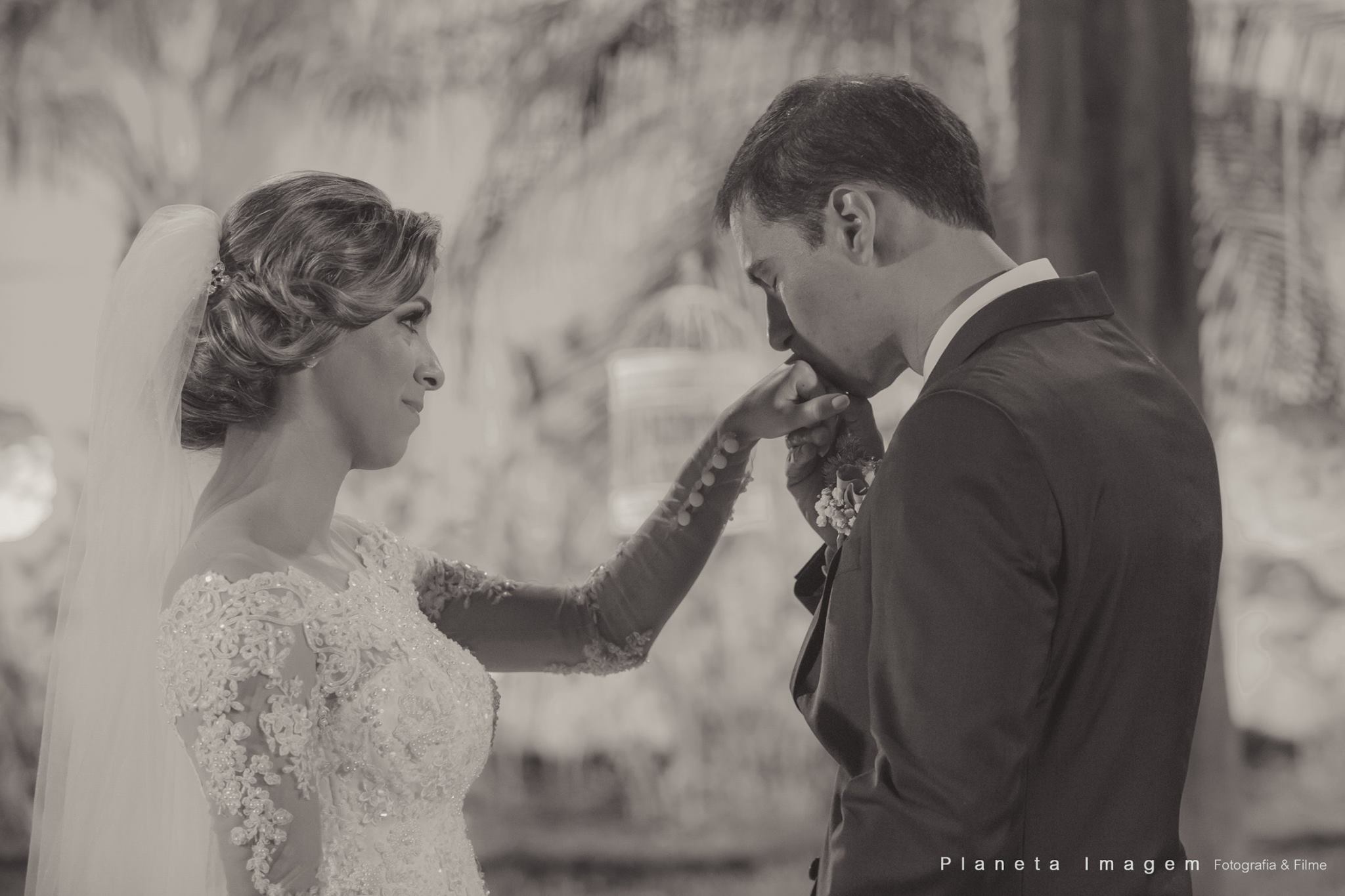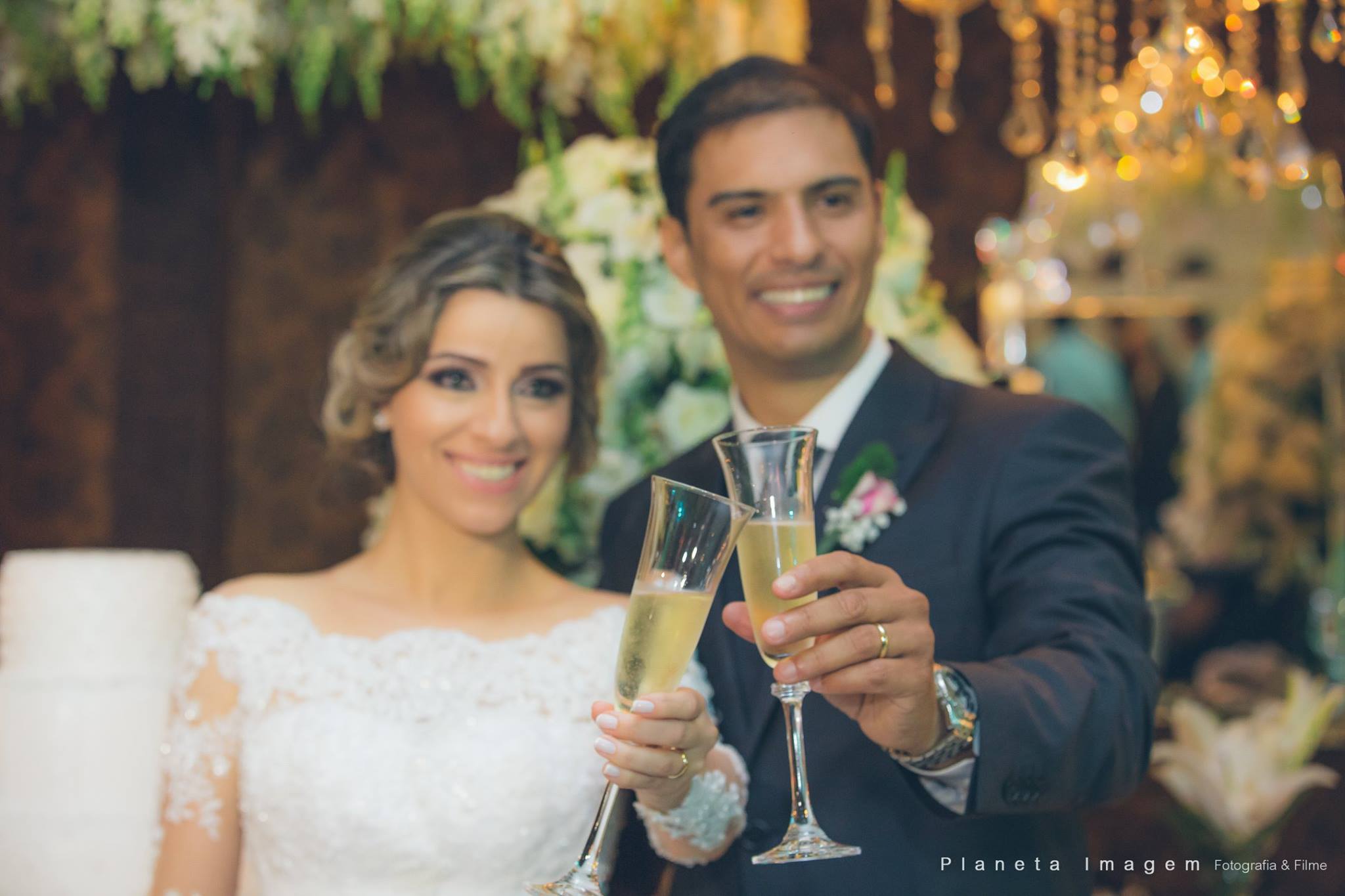 A noiva estava deslumbrante e o noivo só trocava olhares apaixonados!