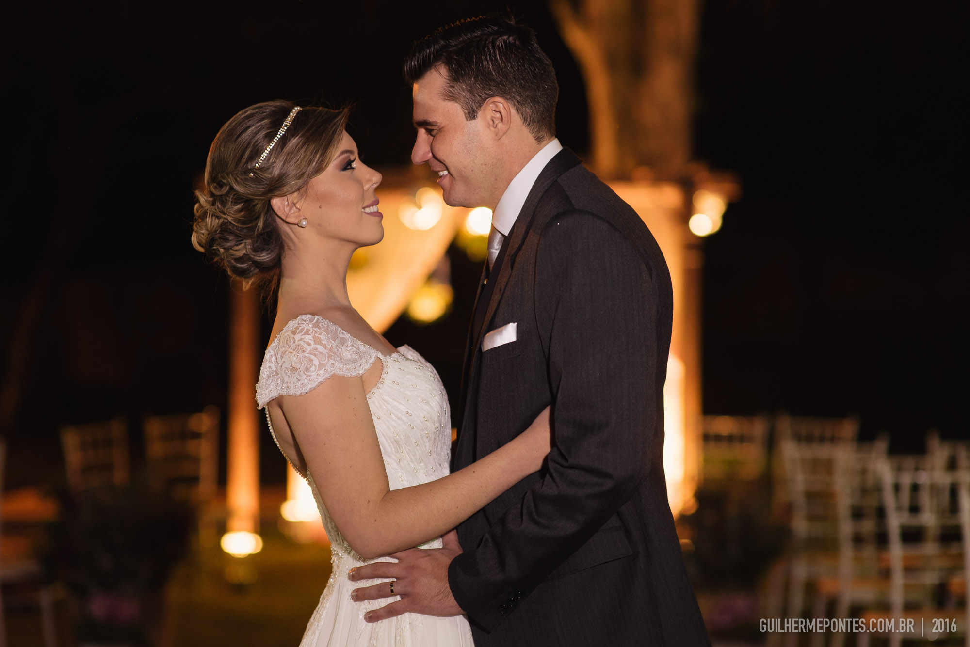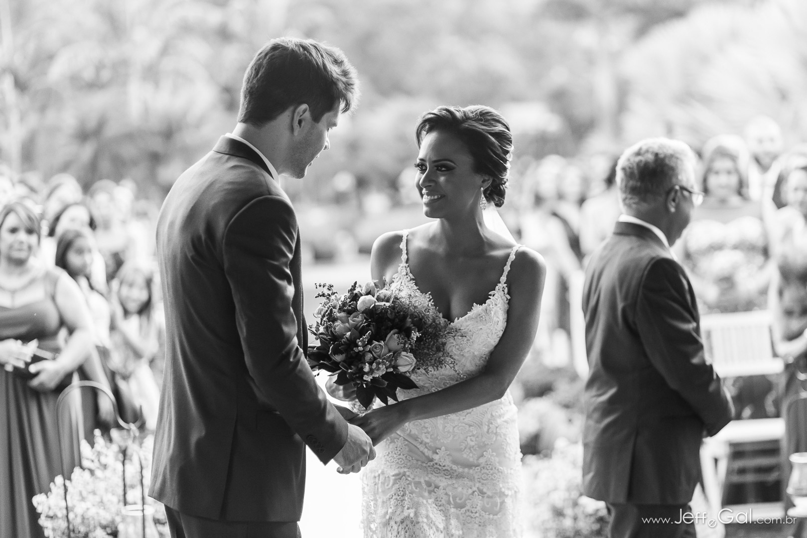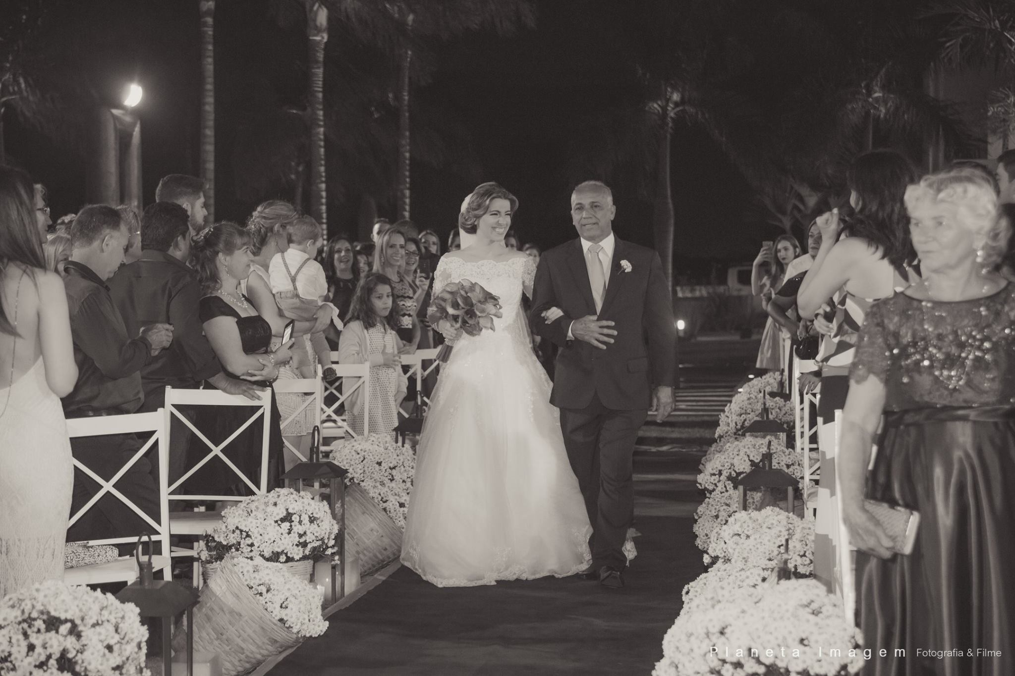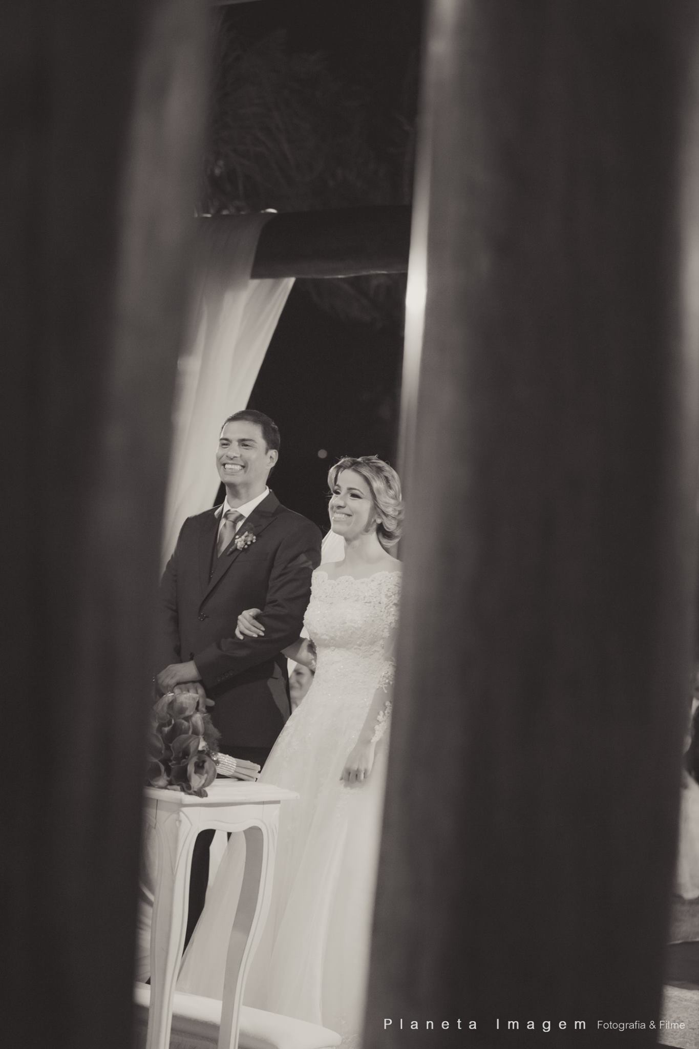 A noiva estava deslumbrante e o noivo só trocava olhares apaixonados!