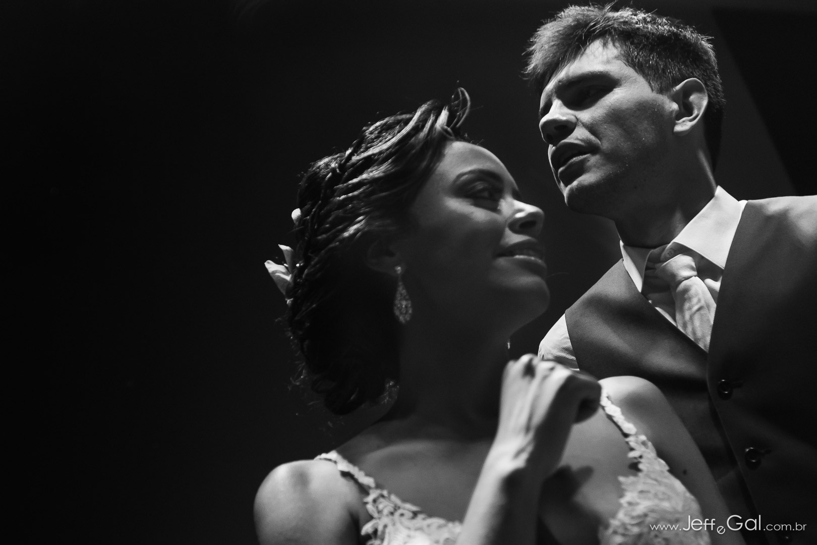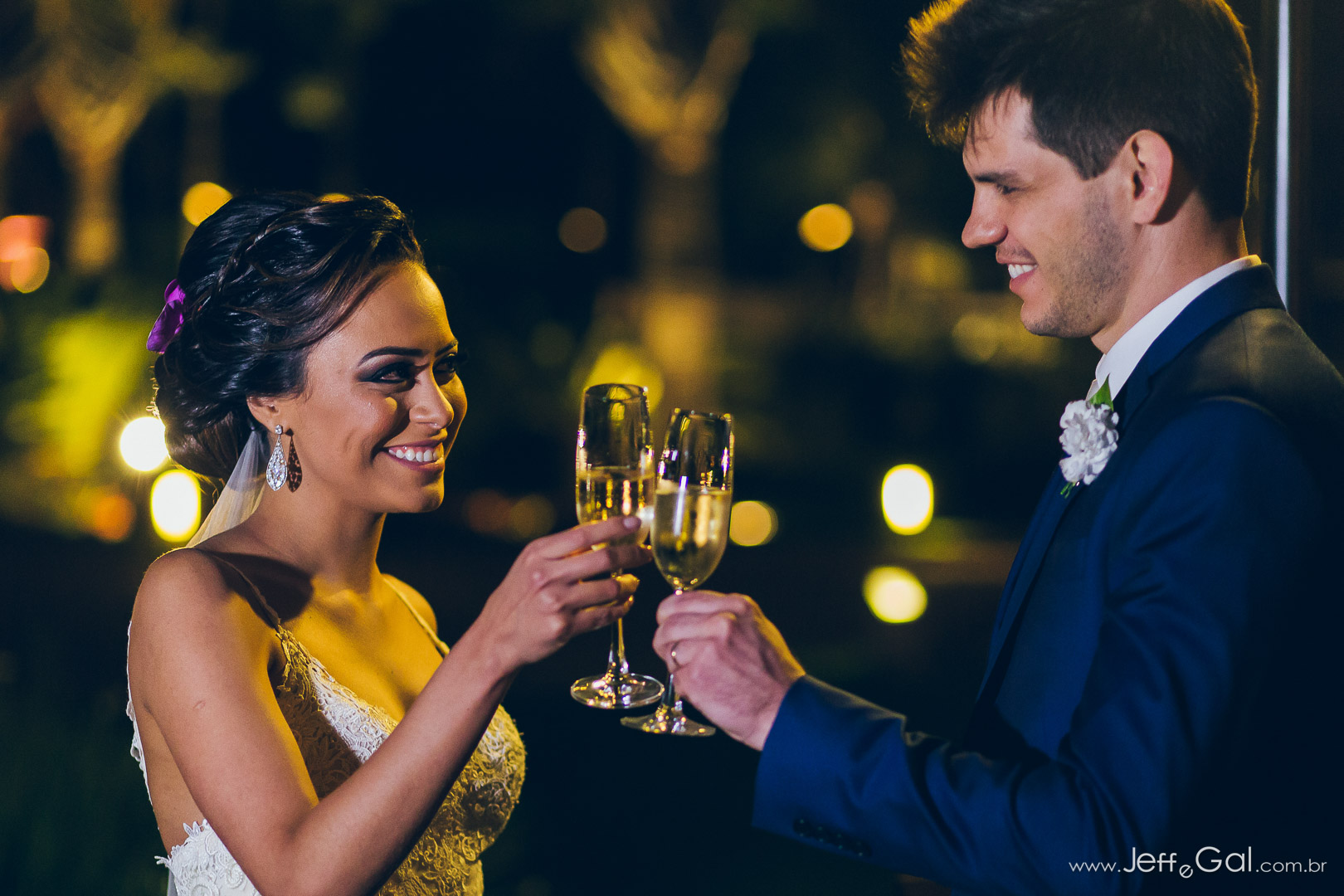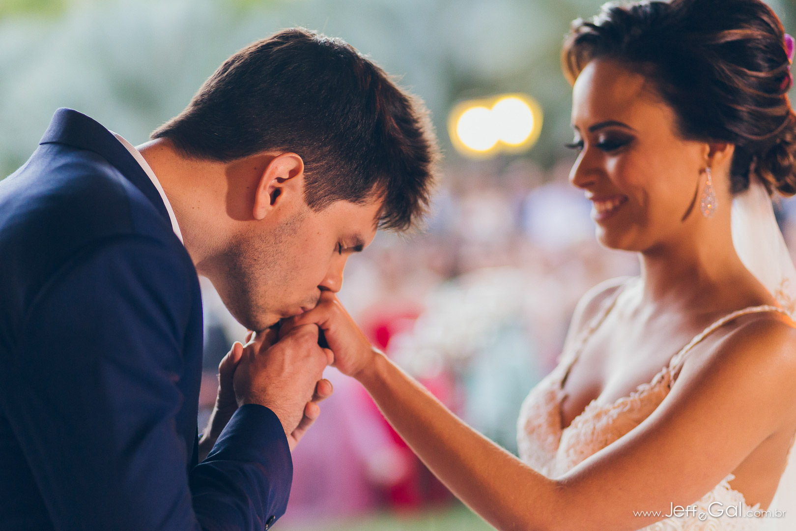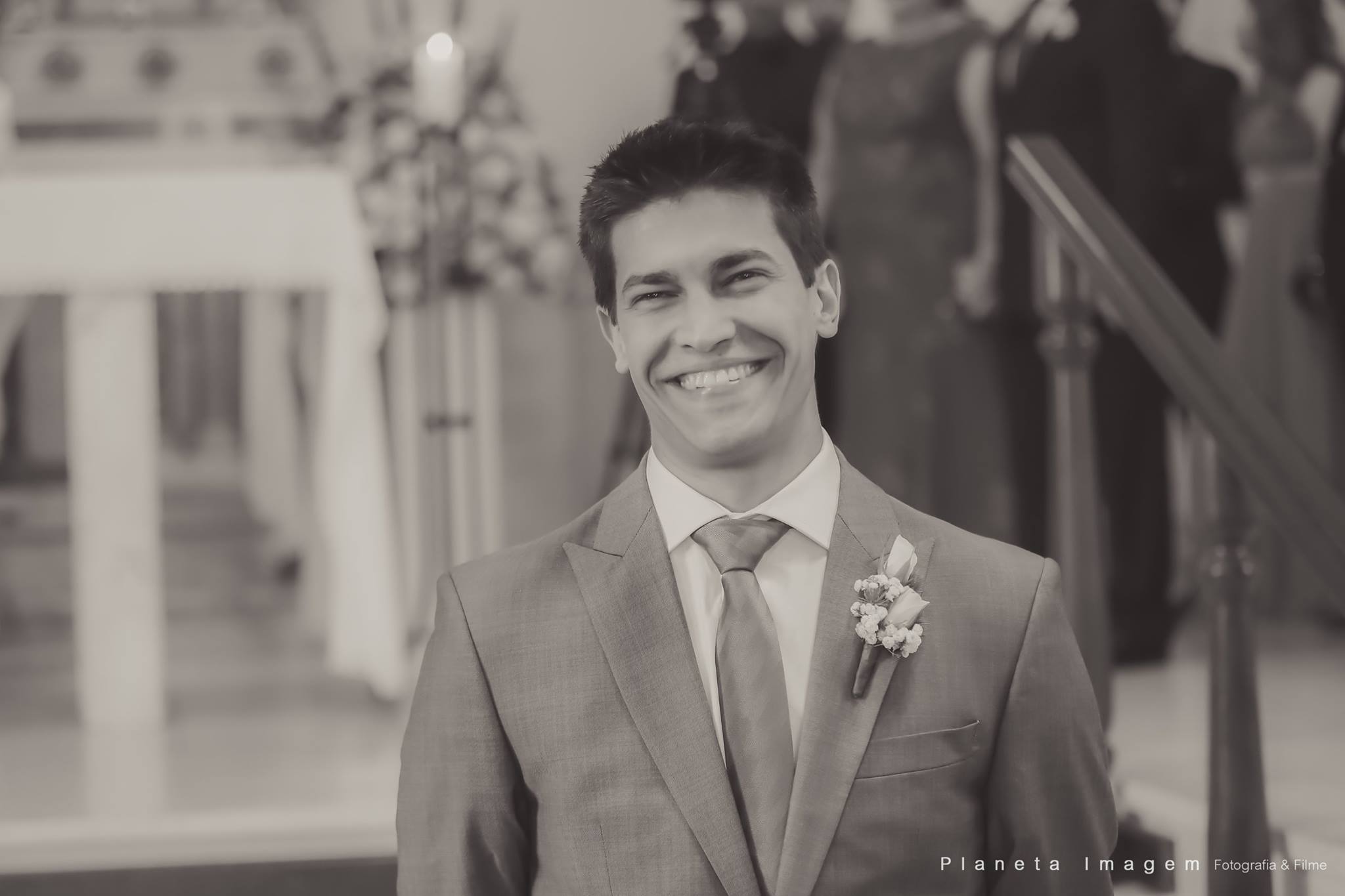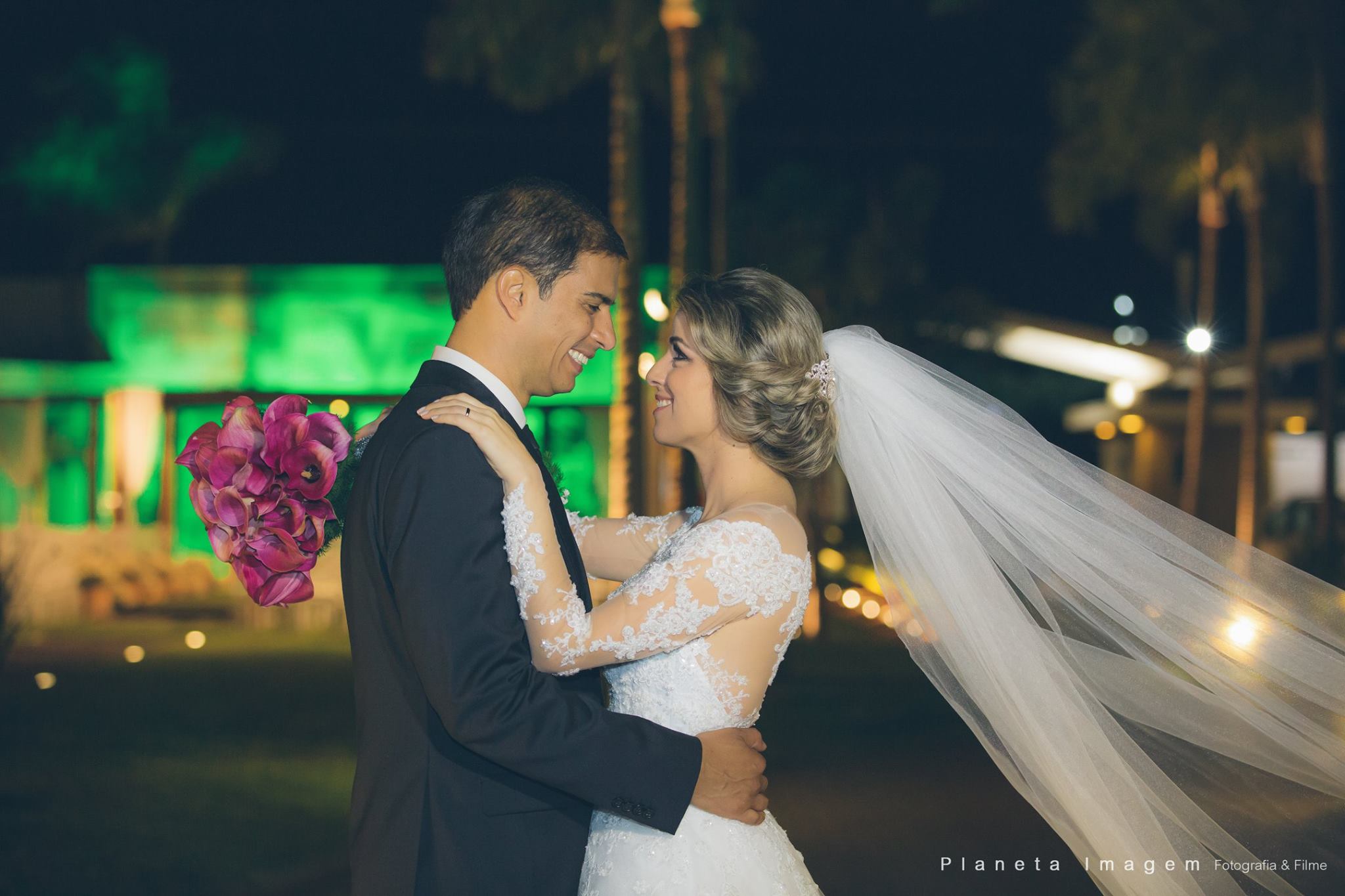 A noiva estava deslumbrante e o noivo só trocava olhares apaixonados!