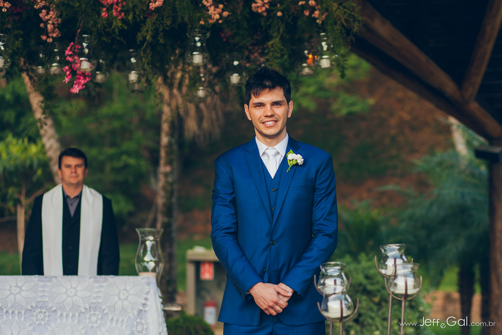 As fotos oficiais foram todas feitas antes da cerimônia, um pouco diferente… estávamos esperando o celebrante, que é amigo de infância e pastor da noiva! Não poderíamos ter outro celebrante além do Pr. Flavio ![]()