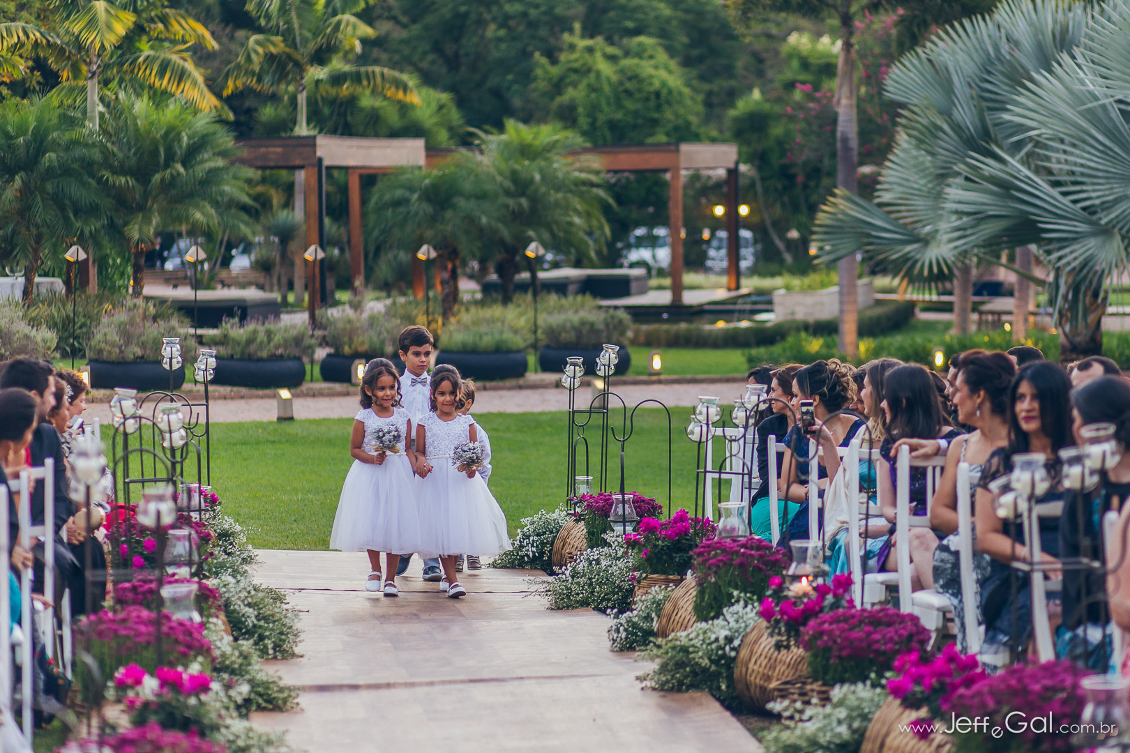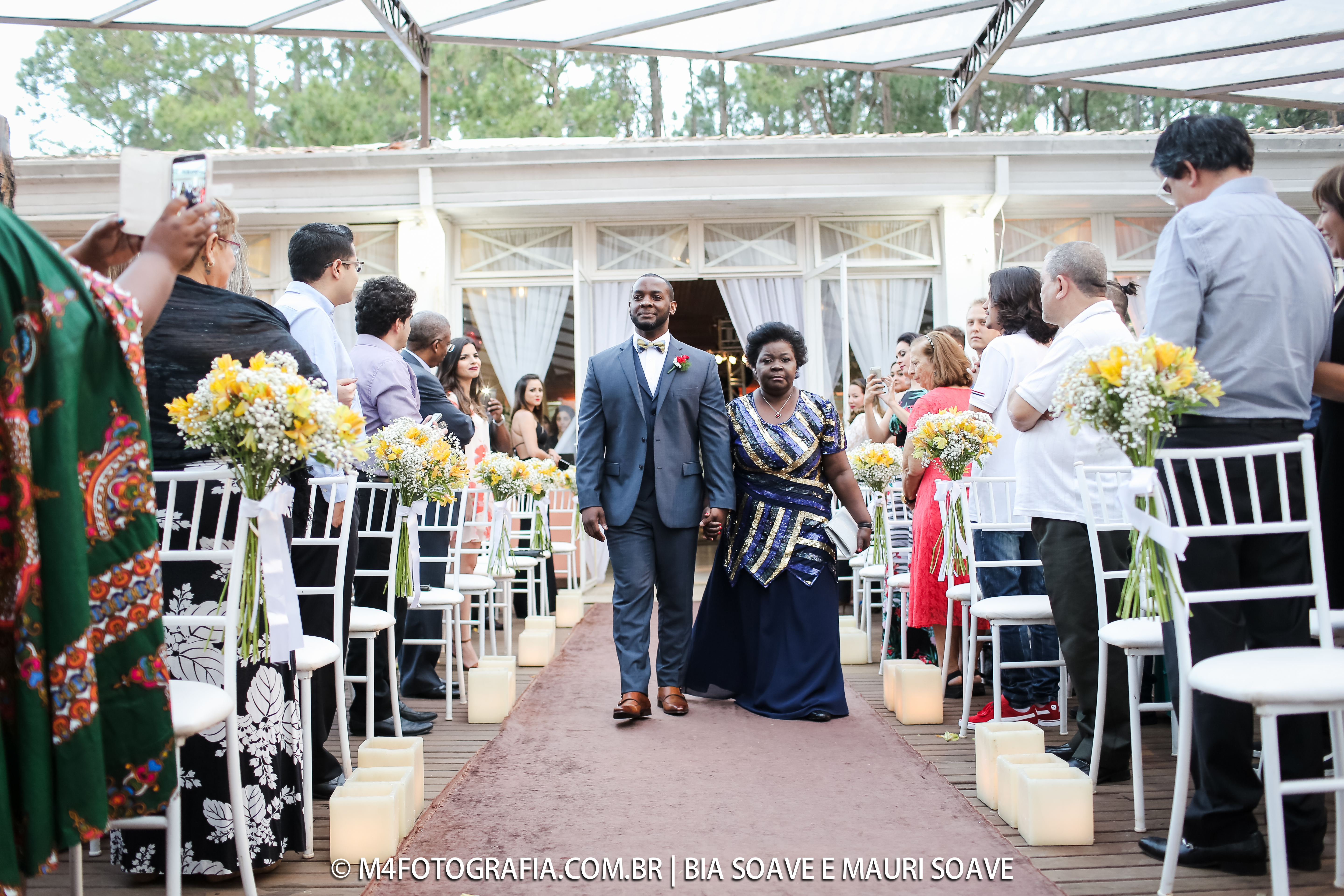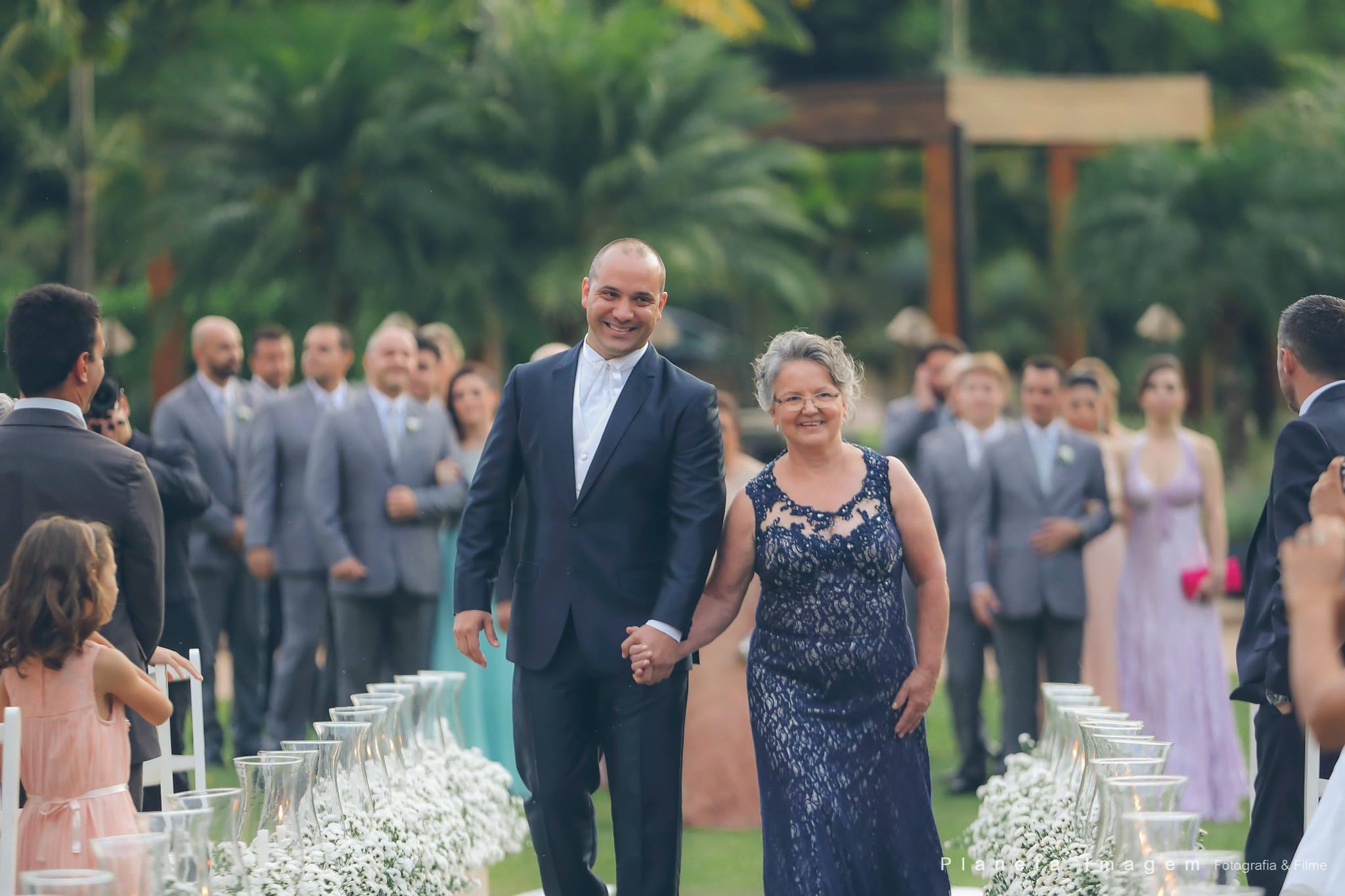 Uma cerimônia tocante, linda, com o filho do noivo entrando com as alianças… super lindo!!!