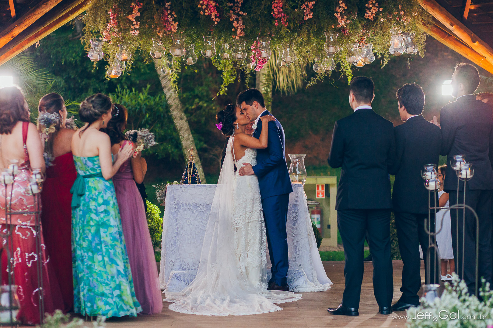 Que emoção na cerimônia desse casal, ela parecia uma princesa, de porcelana ainda!!! Tanta delicadeza…. Foi celebrada por um padre amigo, que conhecia o casal, muito próximo a família toda!