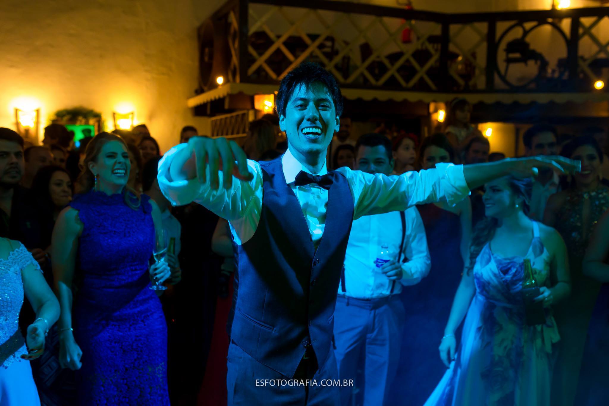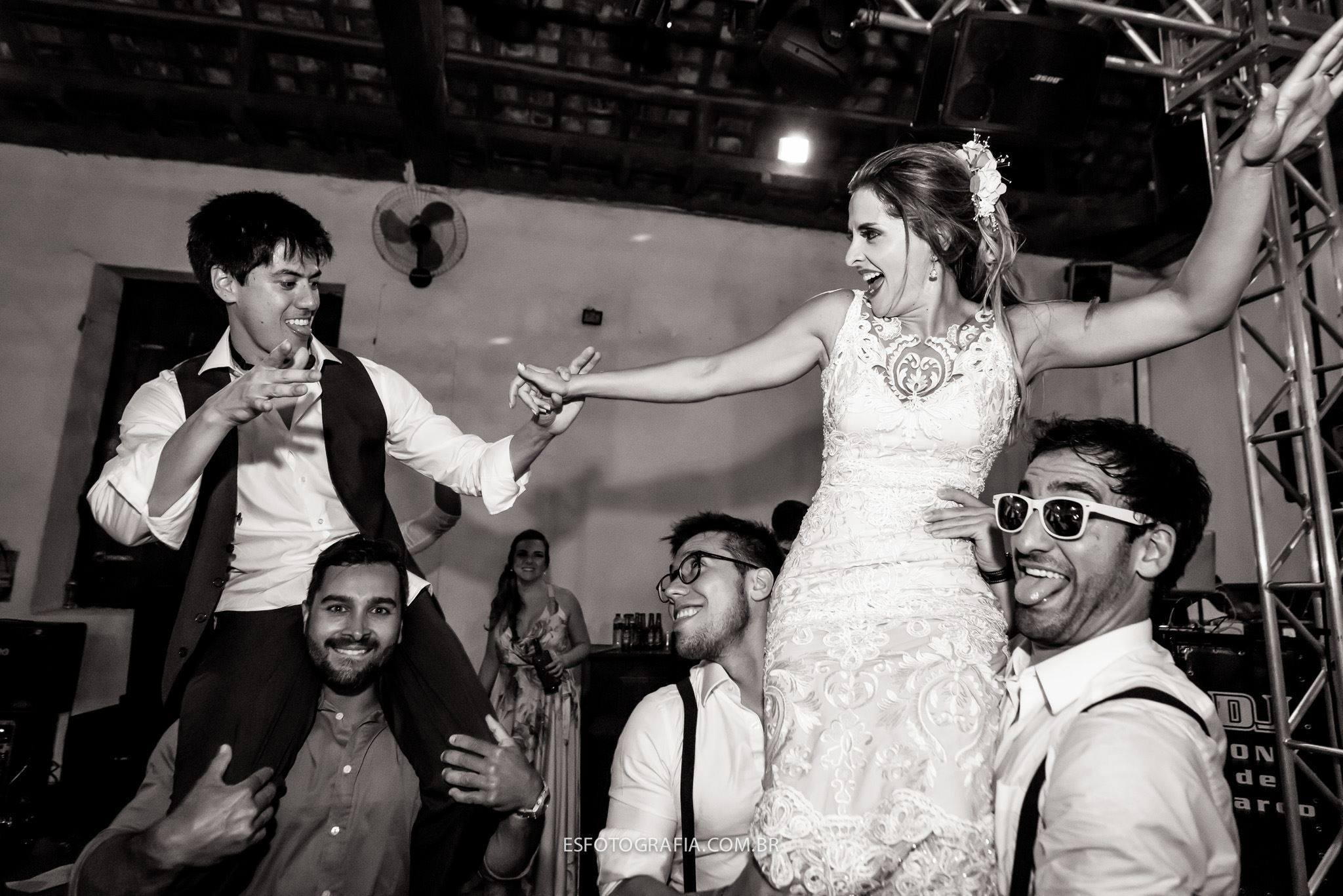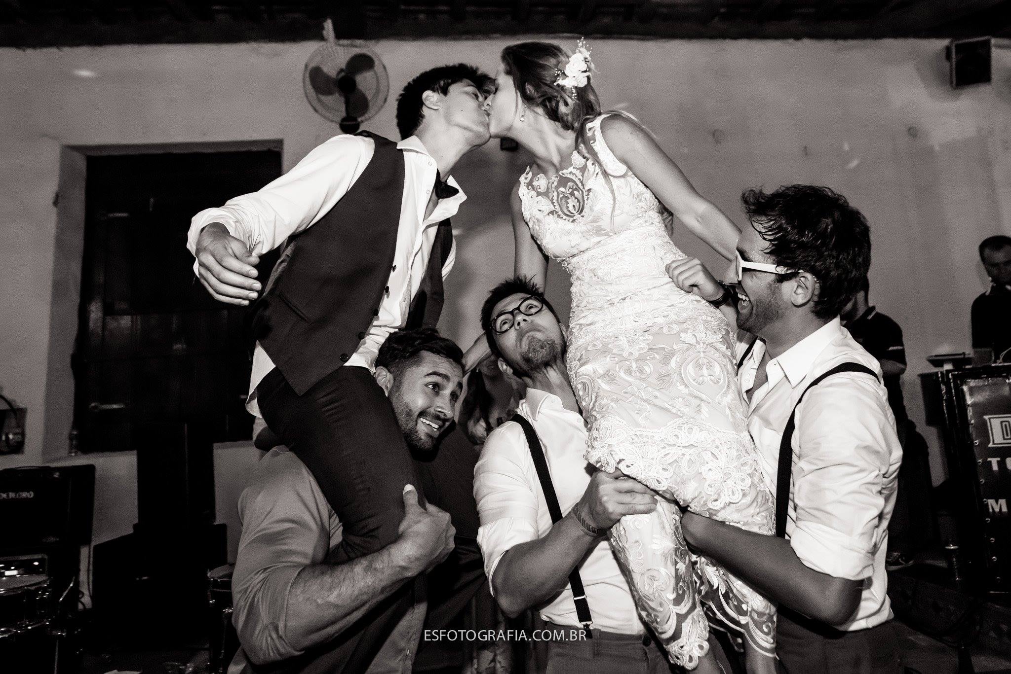 A festa foi super divertida, pista animada demais!!!! Quando olho na pista o noivo está de meias… perdeu os sapatos, de tanto que dançou, aproveitou… e claro, uma brincadeirinha dos padrinhos!