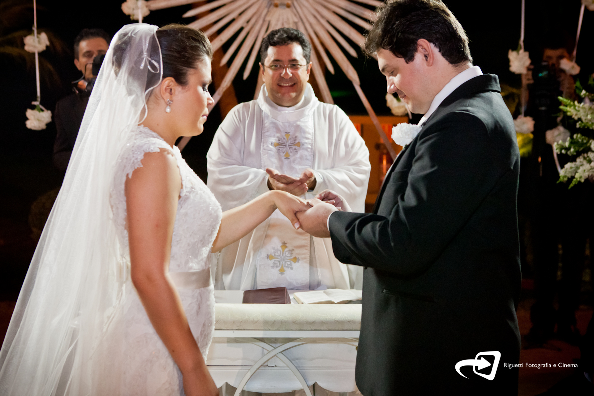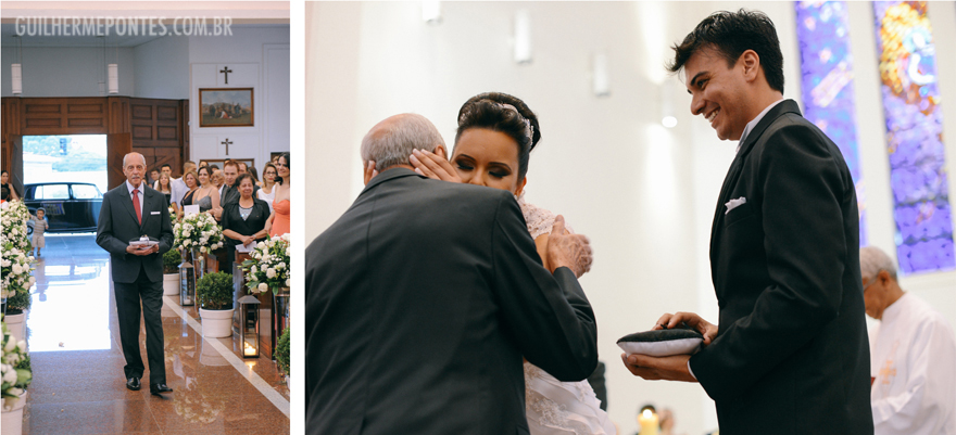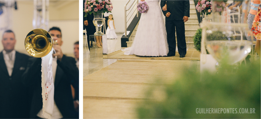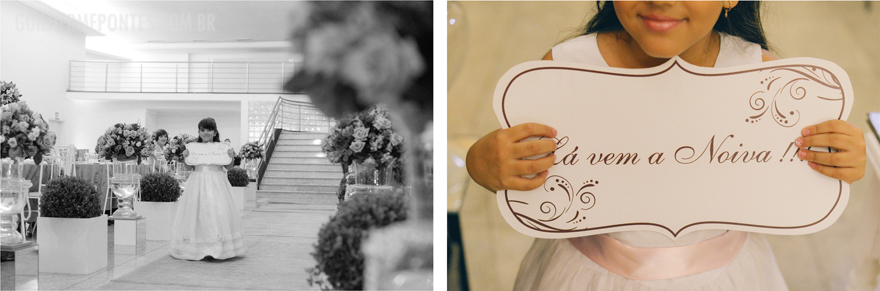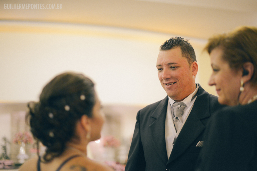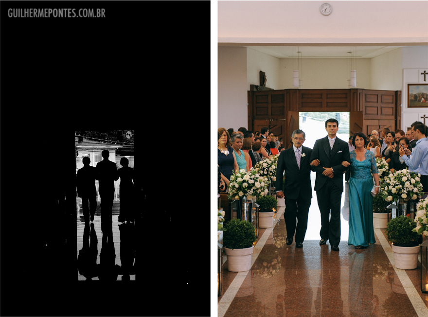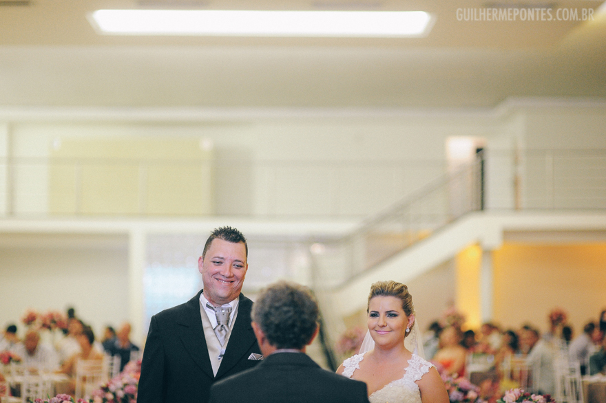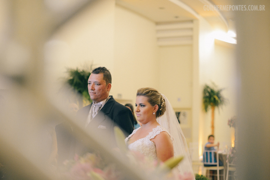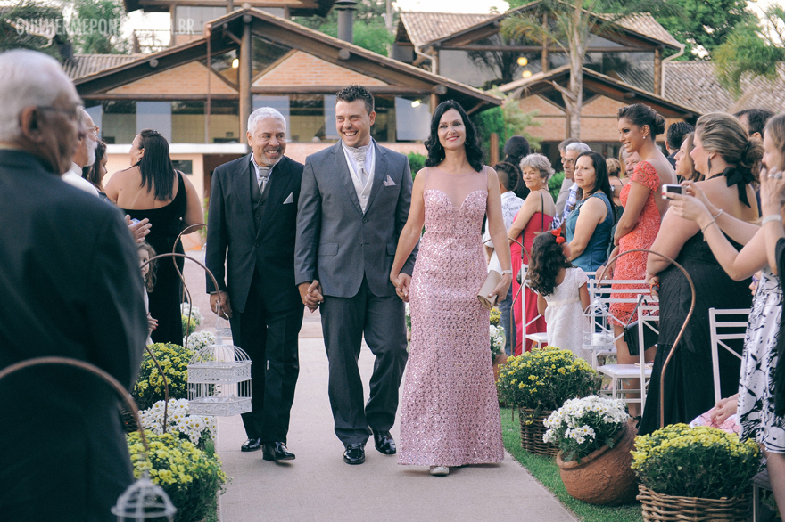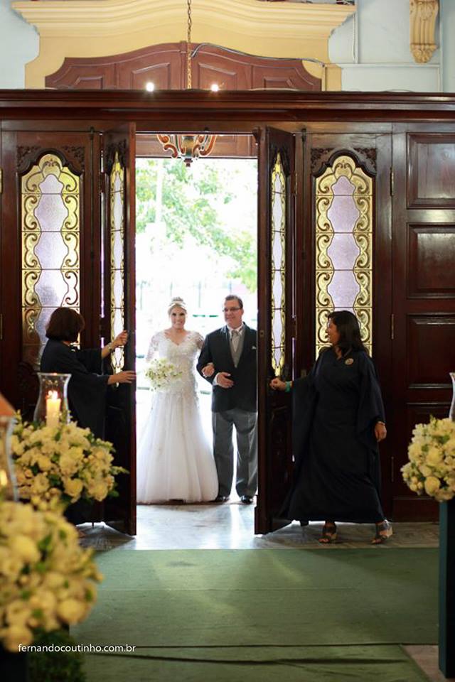Uma cerimônia linda, com o noivo entrando com seus pais, e também a Renata, filha única, que quis também dar a honra de conduzi-la ao altar também as sua mãe! Claro que tudo lindo e emocionante.