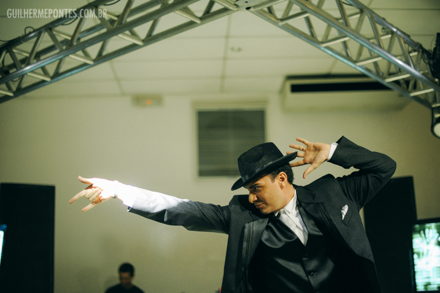A festa perfeita, cheia de surpresas do noivo para a noiva, e olha que é difícil fazer surpresa para ela! Tivemos que esconder alguns nomes da lista para que ela não percebesse nada… O noivo cantou e claro, dançou “Michael Jackson”, uma graça!
