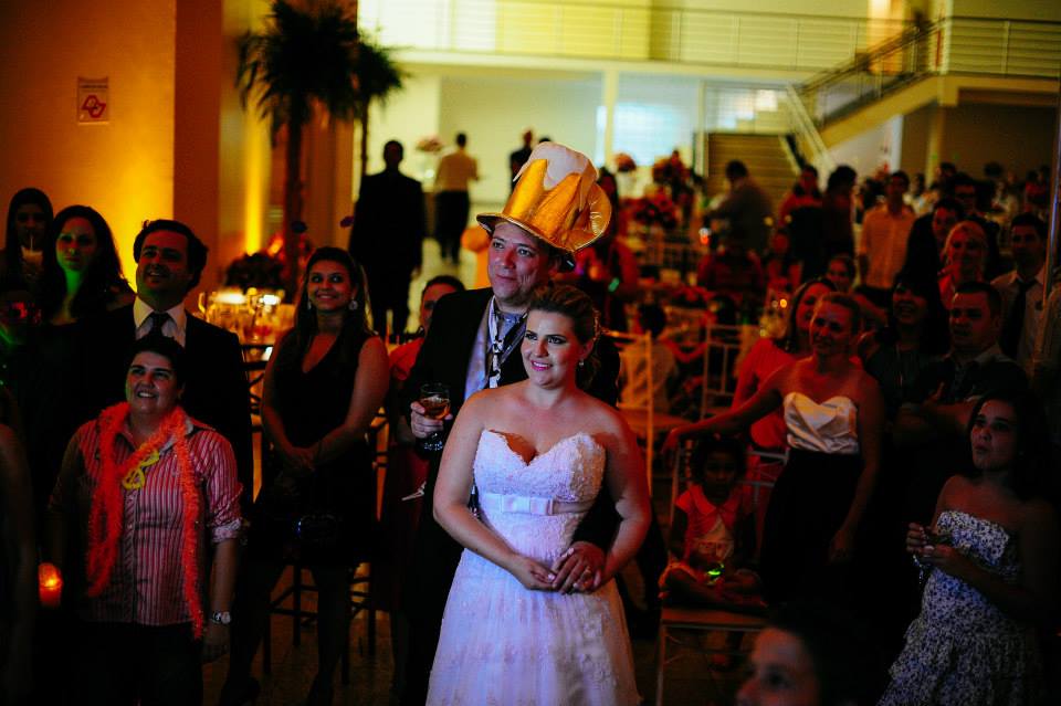 A festa foi prá lá de animada com um pessoal super divertido e descontraído… e o noivo subiu na tampinha de cerveja e fez discurso (palavras da noiva)… rsrsrsrs