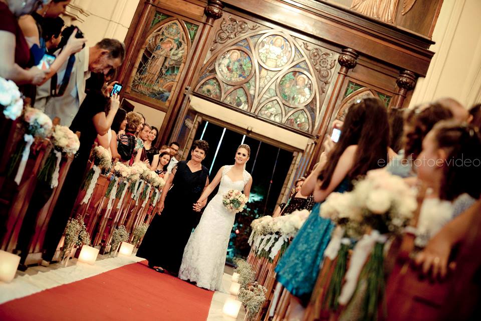 A cerimônia foi linda, e mais bonito ainda for ver a noiva entrando com a sua mãe, toda sorridente e radiante!
