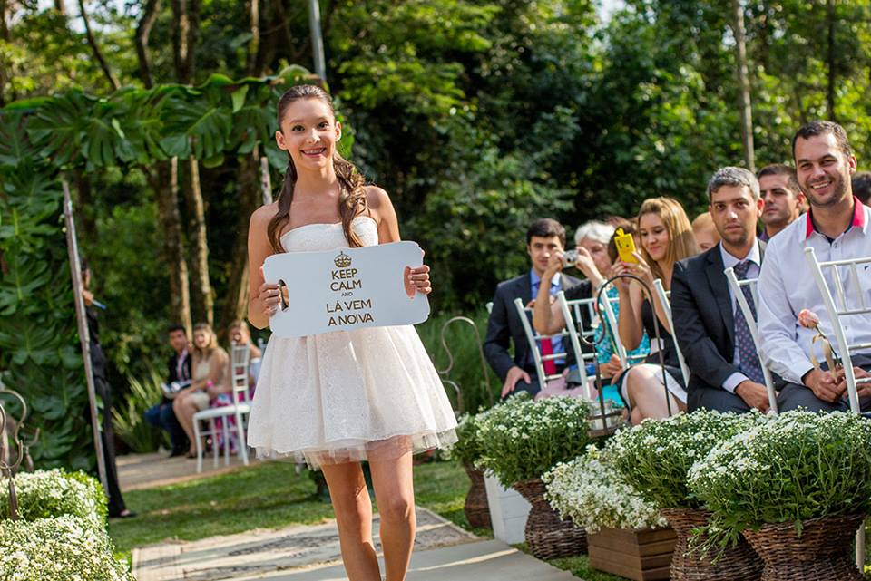 A cerimonia perfeita, super descontraída, sem contar que o noivo entrou como celebridade, dando “tchauzinho” para todo mundo!!!