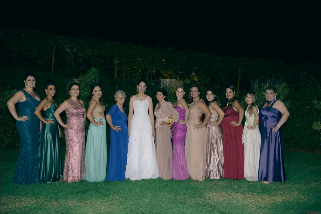 A festa super animada, que rendeu fotos lindas, com todas as madrinhas e padrinhos, além das demoiselles, muito fofas.