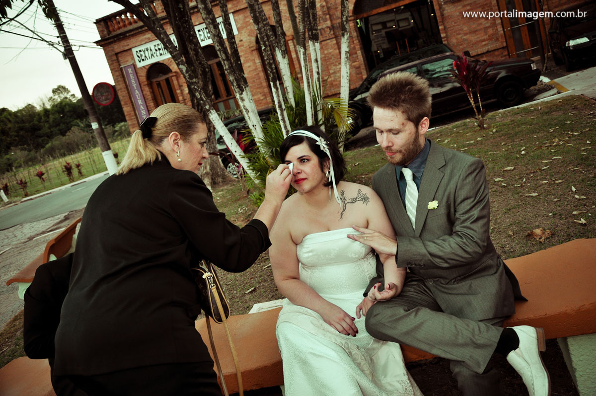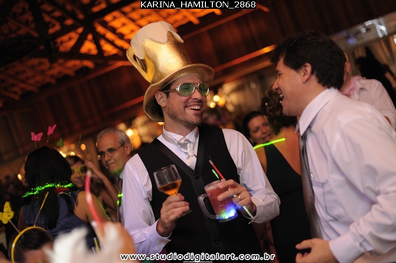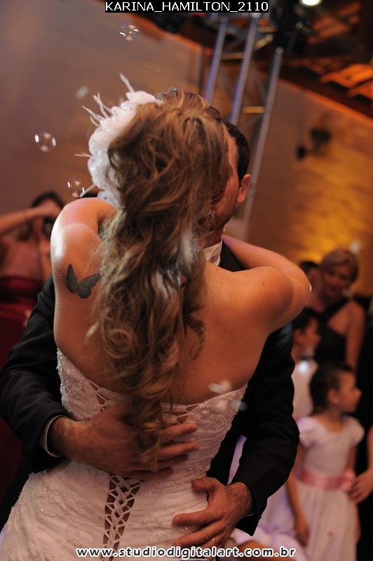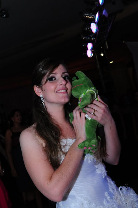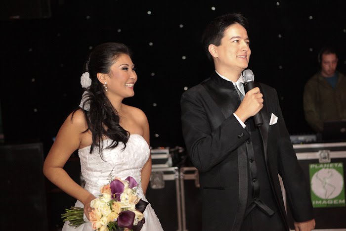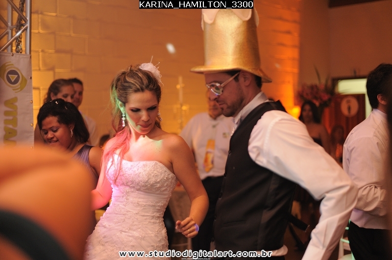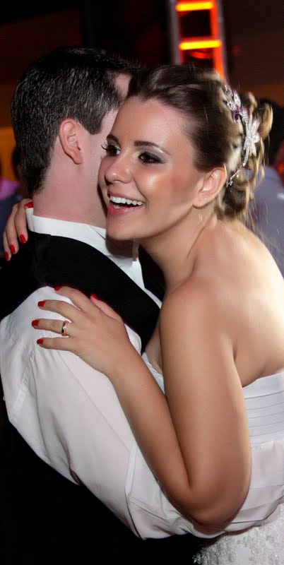 Minha “Loira Aguada”, como foi bacana ter vc como noiva. Alegre, feliz, sempre radiante. Não me deu trabalho em um ano e meio, nadica, mas na última semana heim? rsrsrsrsrs Brincadeira!!! Esse casal foi hilário, diferente em tudo! Teve dança, teve noiva cantando no palco, tudo… Uma alegria!! Veio me ver no dia seguinte, fiquei tão feliz!!!