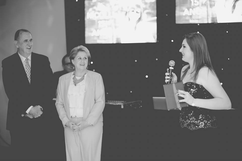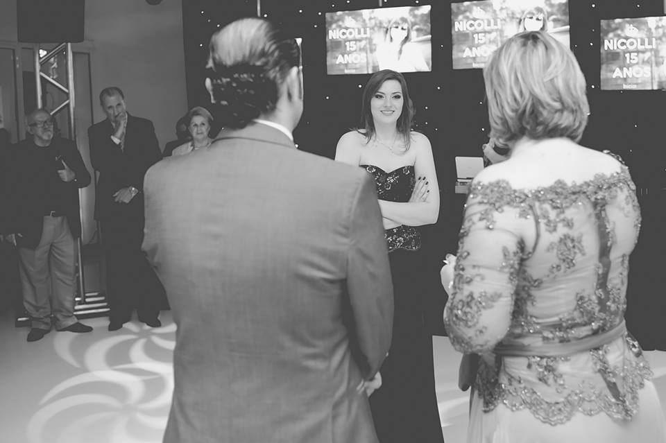 Os pais estavam radiantes e muito felizes com essa data tão importante para uma moça!