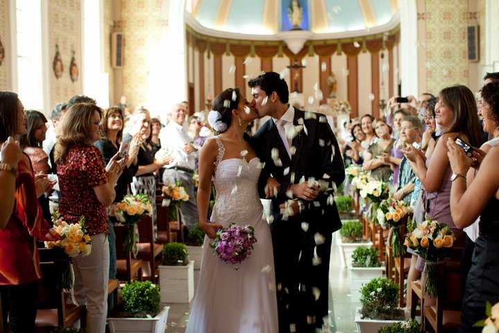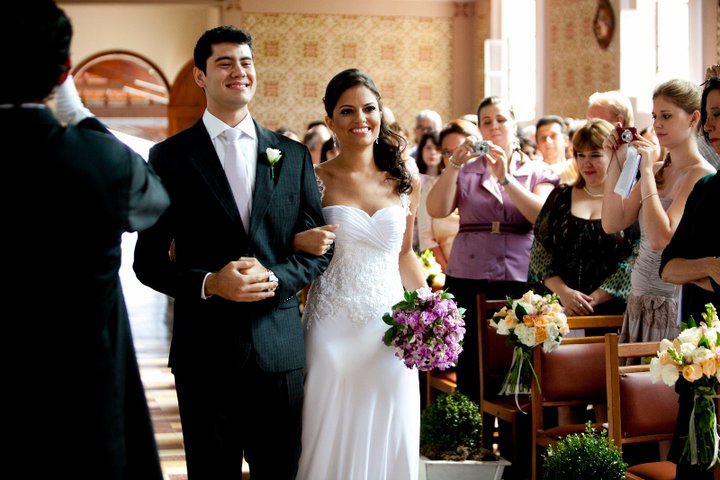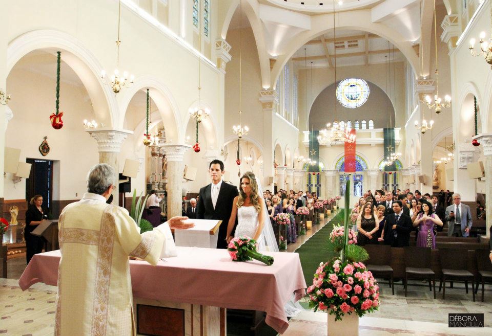Cerimônia muito linda, celebrada onde o casal se conheceu e celebrada pelo Padre Rogério que os acompanhou durante o namoro e noivado!