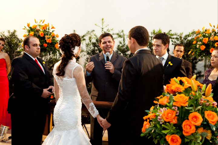 A cerimônia foi brilhantemente conduzida pelo Danilo Sandes, que com palavras sábias e perfeitas entregou uma mensagem ao casal! Boas risadas e lágrimas foram derramadas…