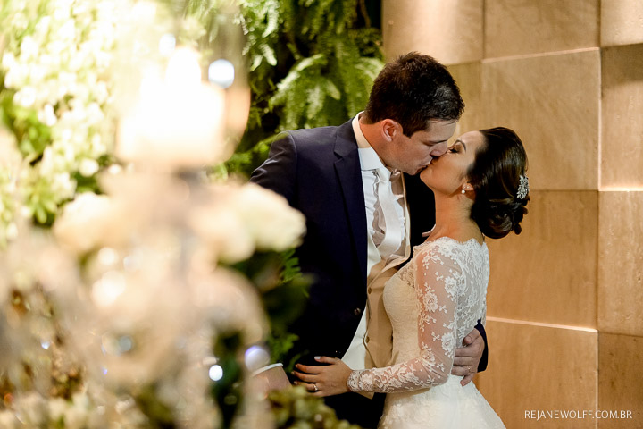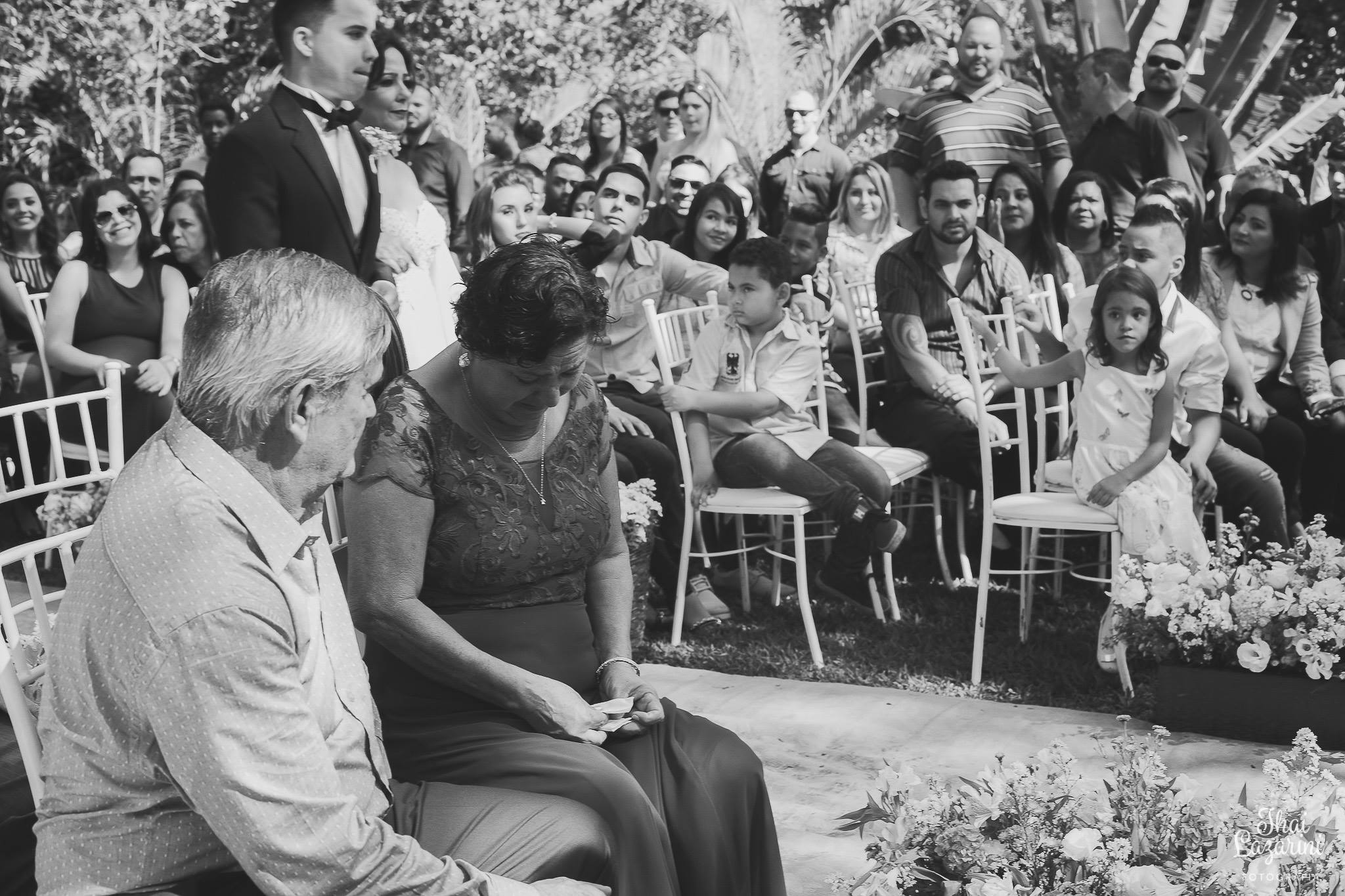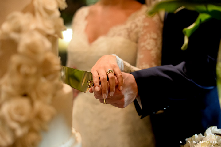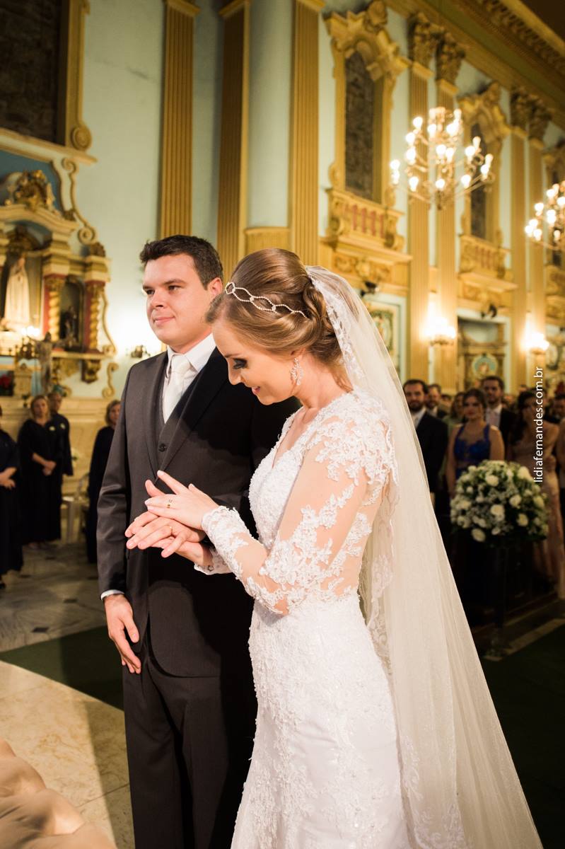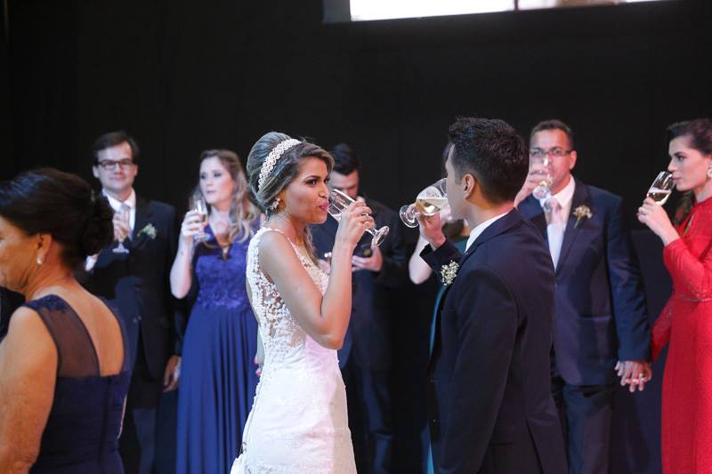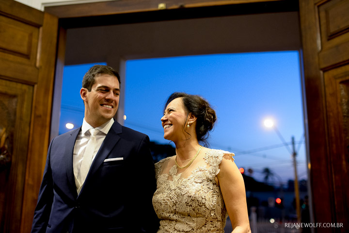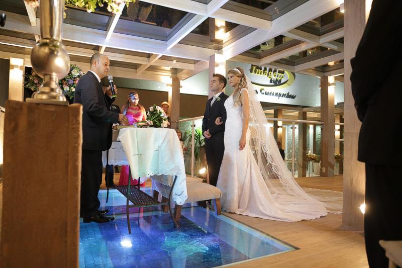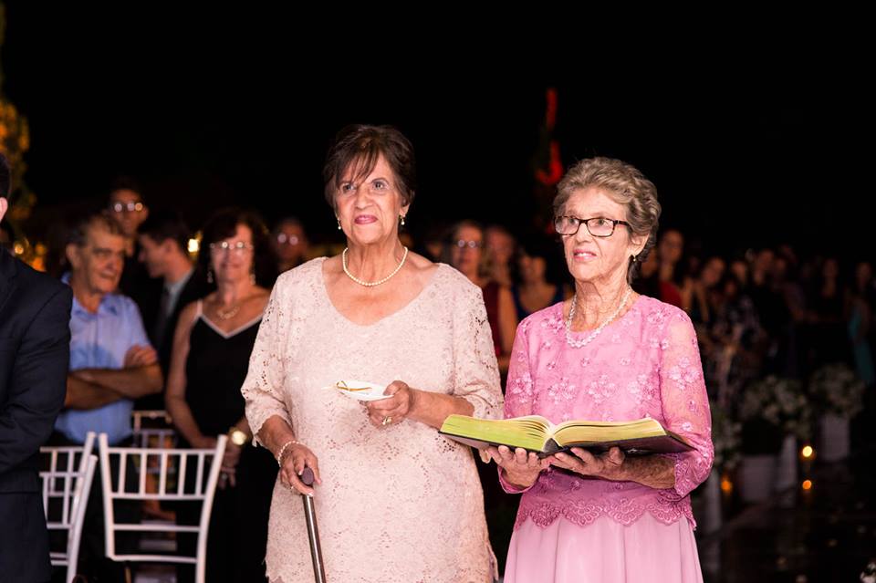 Tivemos uma cerimônia linda, celebrada pelo Pastor do casal, que os acompanha há muitos anos… e foi linda, perfeita!!!! O ápice da emoção do casal e familiares quando a querida “bisa” entrou com as alianças… aquela senhoria miudinha, delicada, toda emocionada entrou com o símbolo do amor, da união do casal!