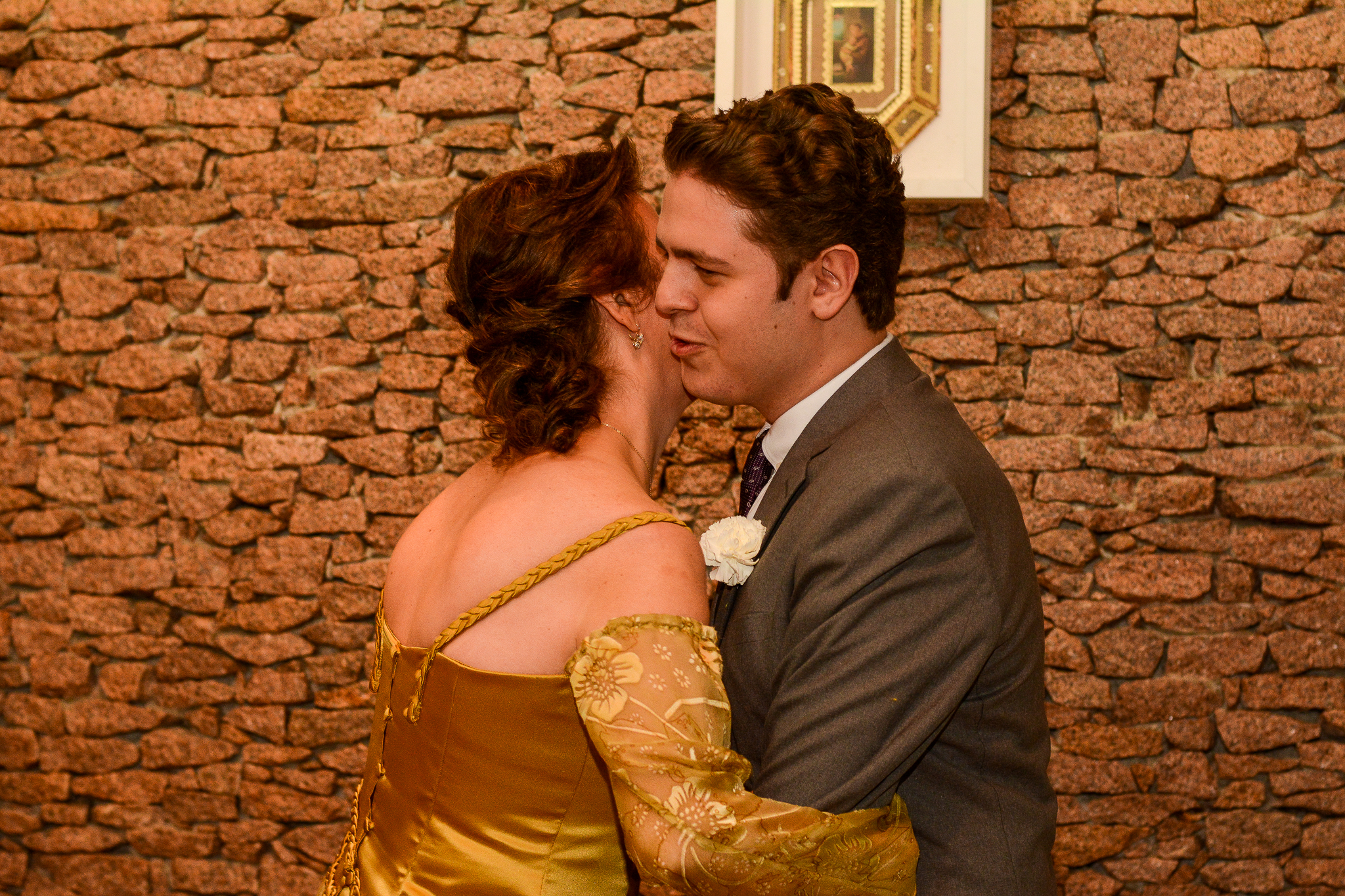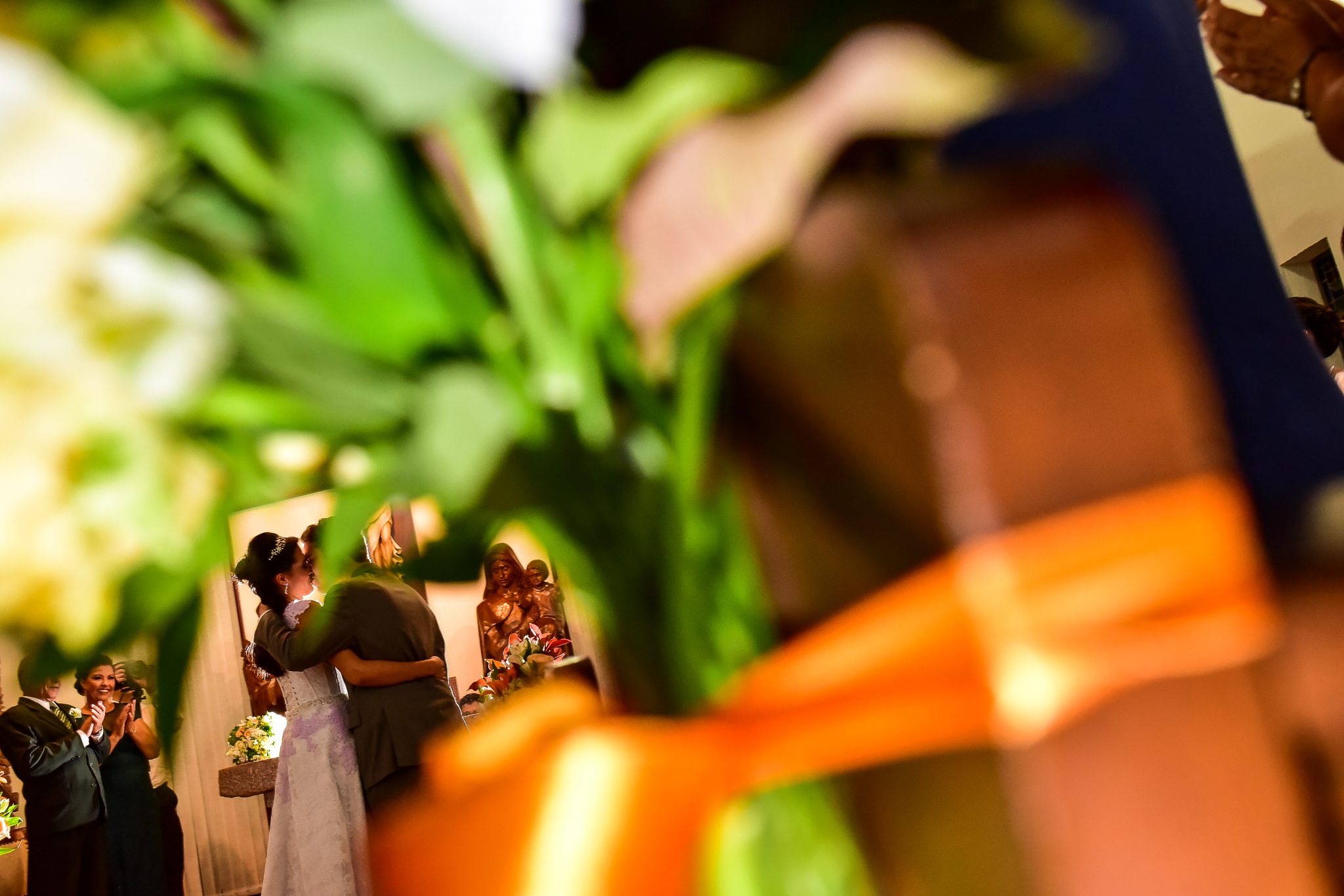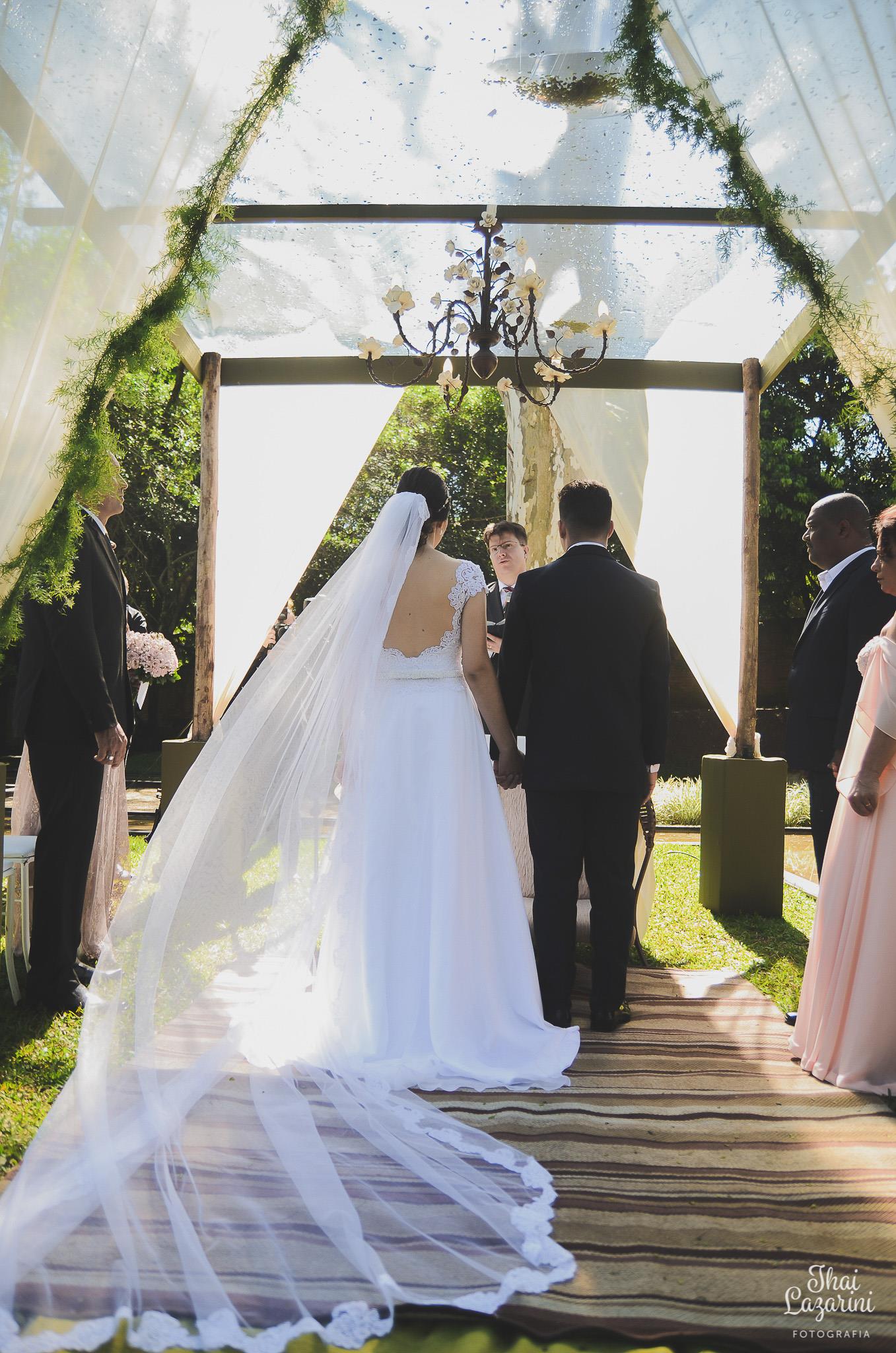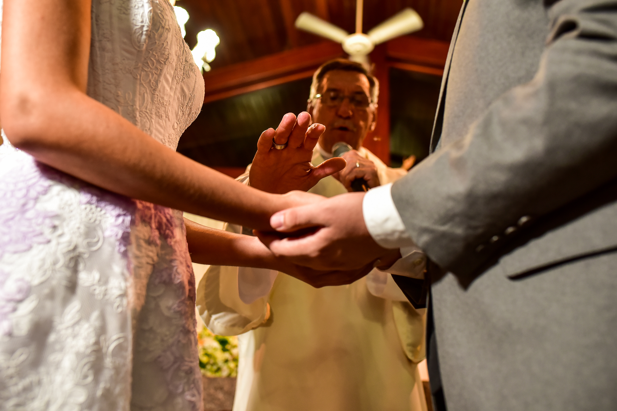 Tivemos uma cerimônia linda, celebrada pelo Pastor do casal, que os acompanha há muitos anos… e foi linda, perfeita!!!! O ápice da emoção do casal e familiares quando a querida “bisa” entrou com as alianças… aquela senhoria miudinha, delicada, toda emocionada entrou com o símbolo do amor, da união do casal!