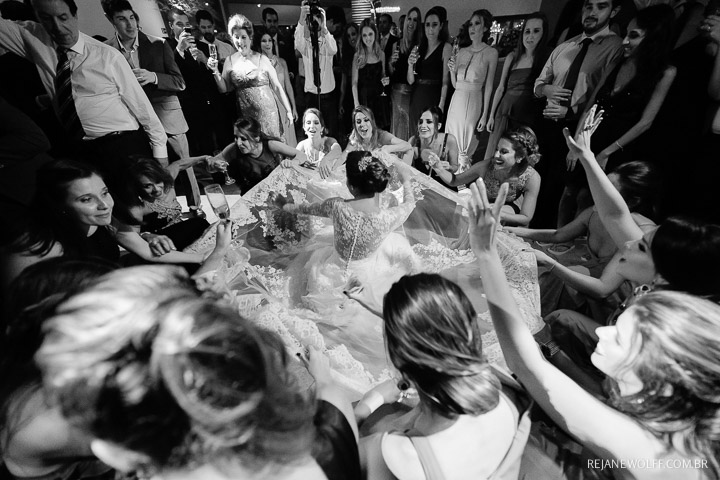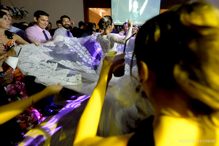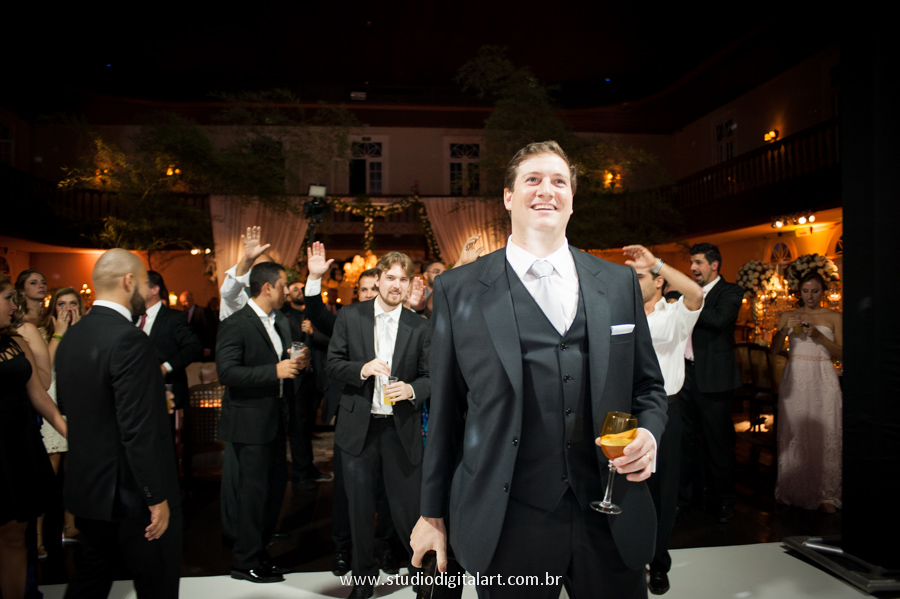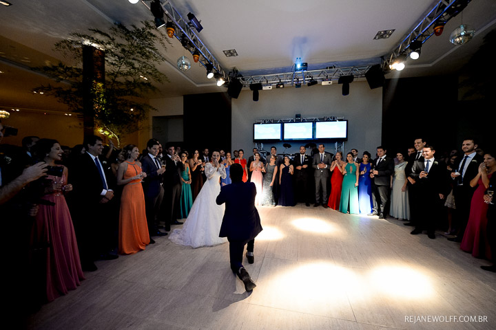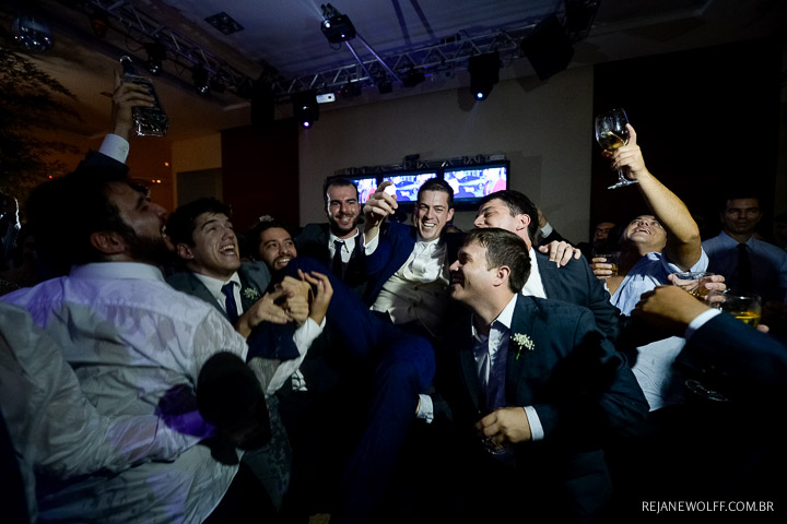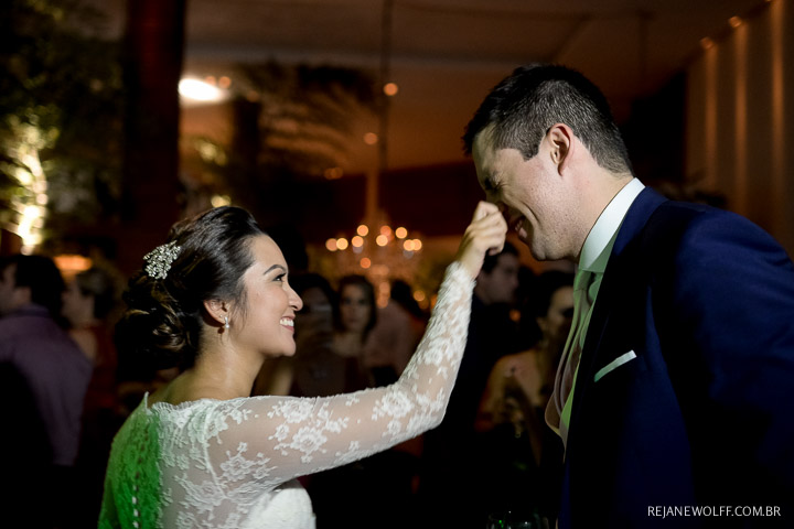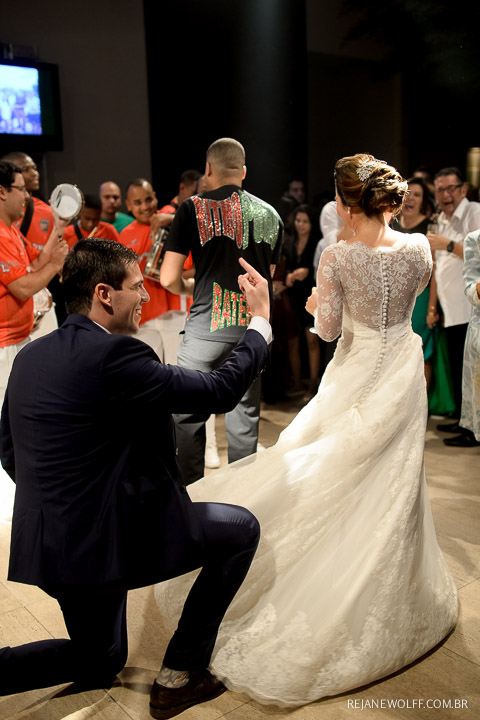 Sempre achei que o noivo fosse mais tímido, quieto… me surpreendi com ele na pista e na hora da gravata!!! Muito bacana!