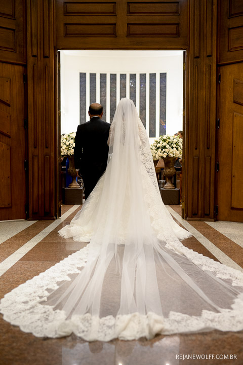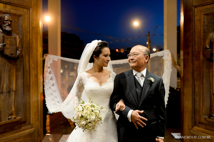 Pois é, a Bianca entrou lindamente na Igreja, sozinha!!! O pai estava esperando no altar, todo feliz e emocionado!