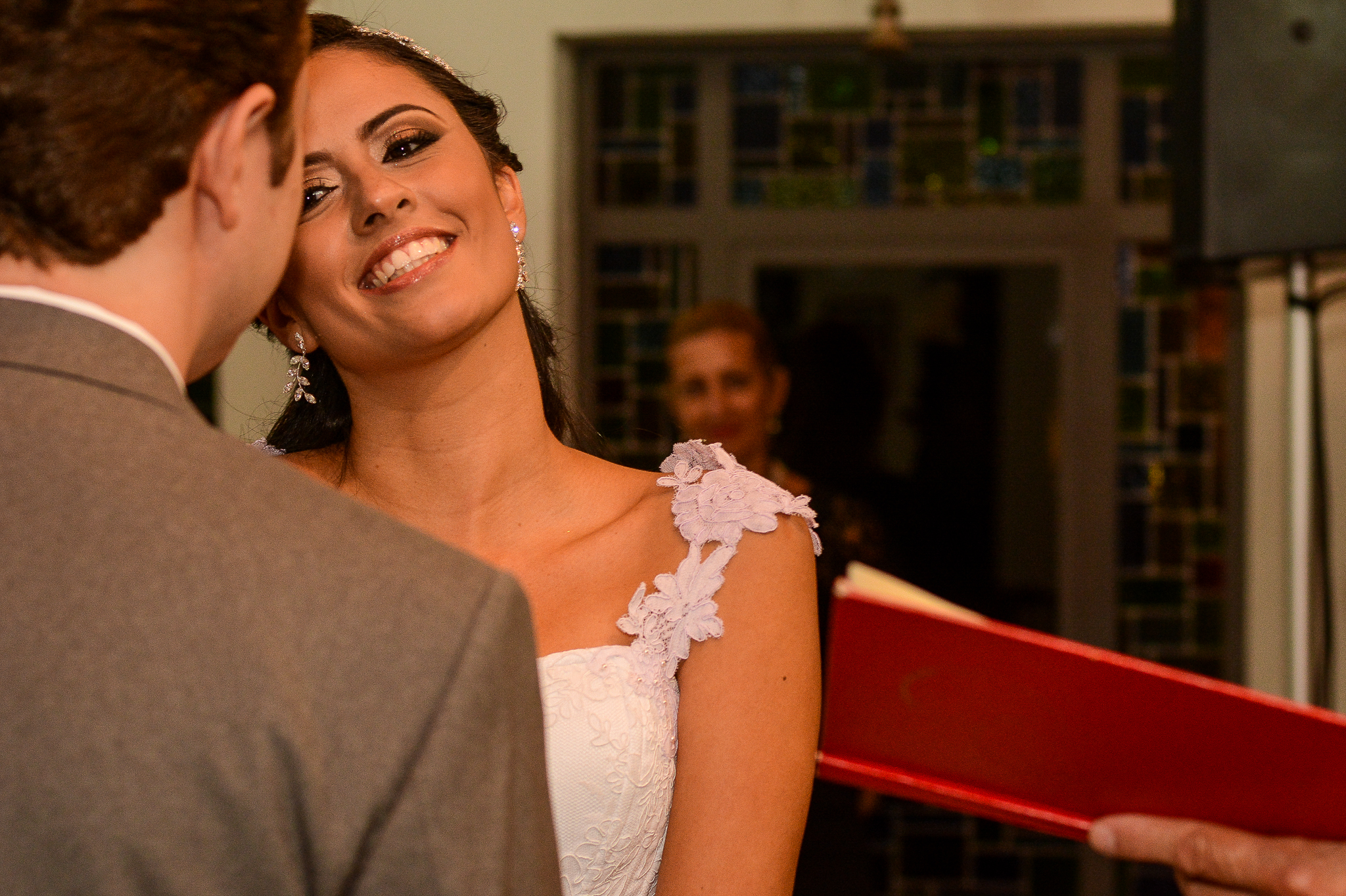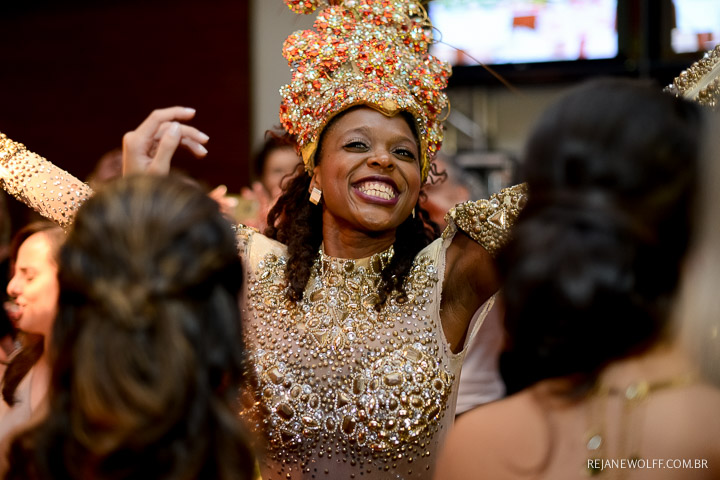 Sorridente o tempo todo, desde a cerimônia até o final da festa!