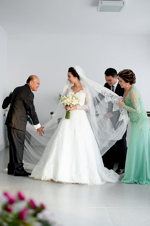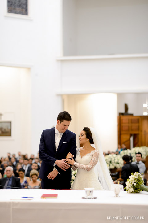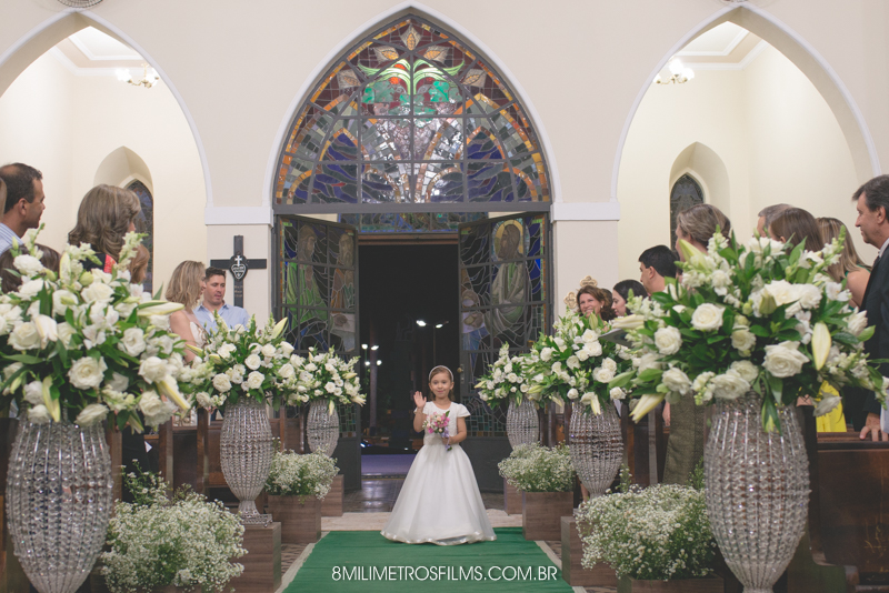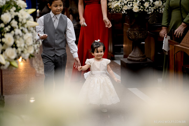 E claro que a cerimônia não poderia ter sido diferente! Emocionante, linda, com as bênçãos do Senhor sendo derramadas em um momento lindo! A entrada das alianças arrancou lágrimas da noiva, afinal a sobrinha “picorrucha” entrou lindamente! Uma menina linda