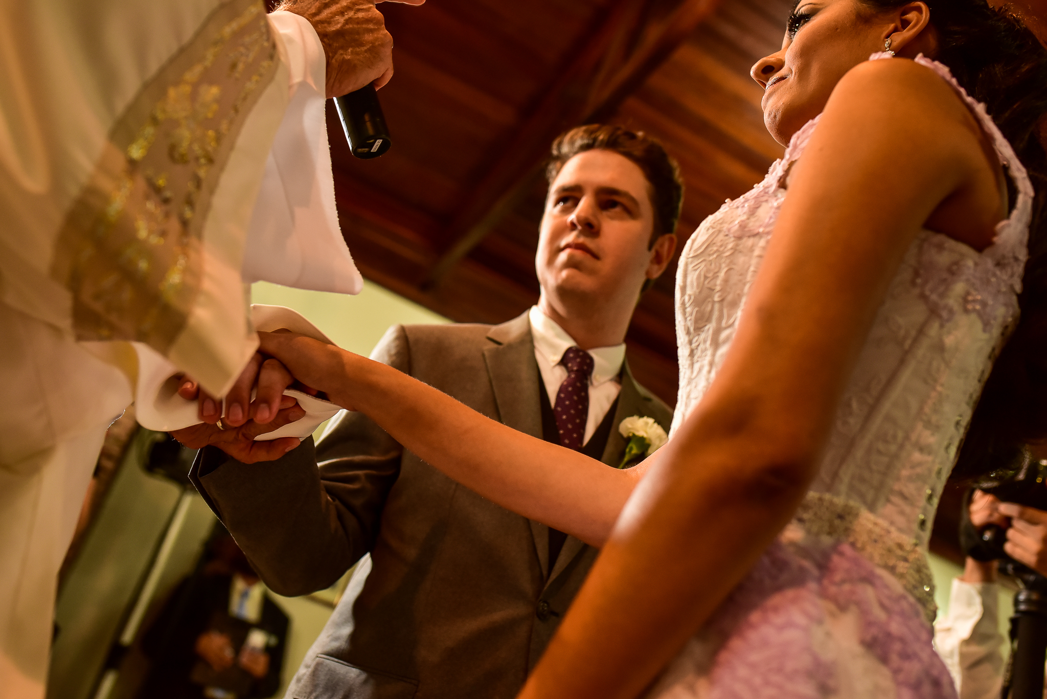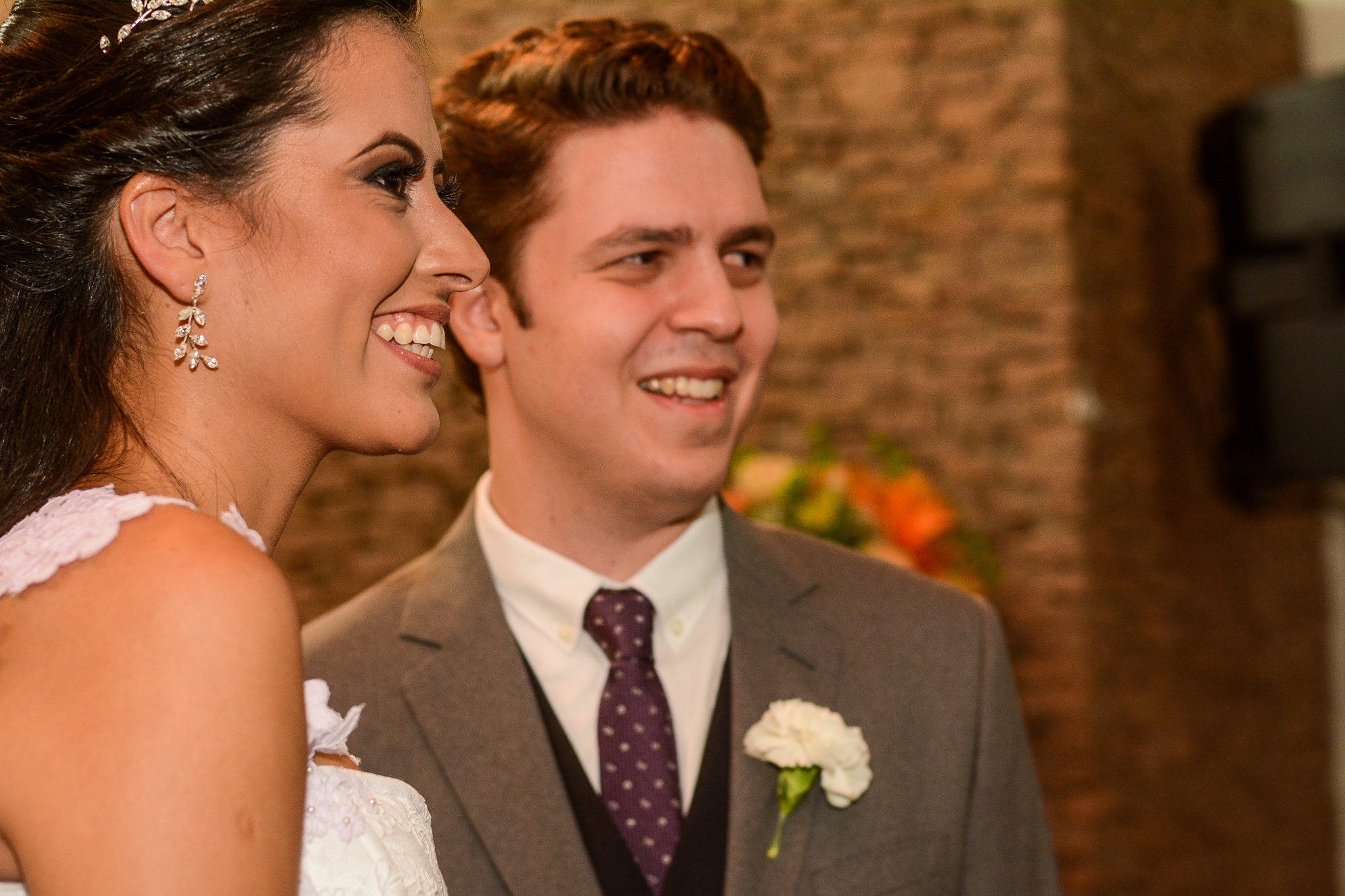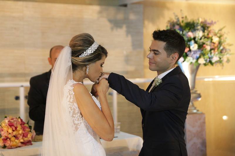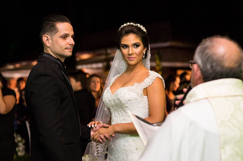 Brincadeiras a parte, os dois estavam lindos, trocaram olhares durante a cerimônia toda, sempre em sintonia, sorrindo e demonstrando o amor deles… Muito emocionados, trocam votos, juras de amor!