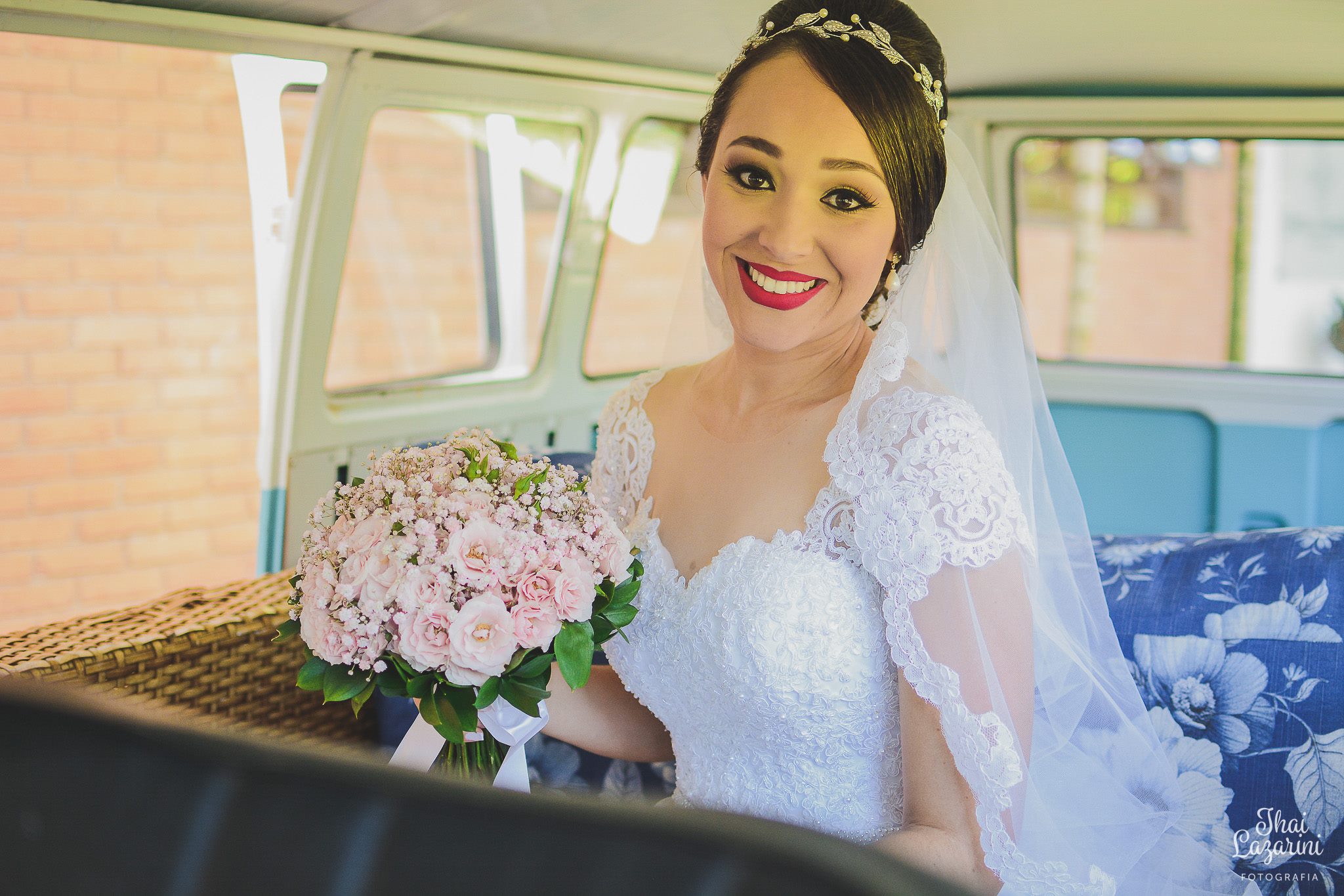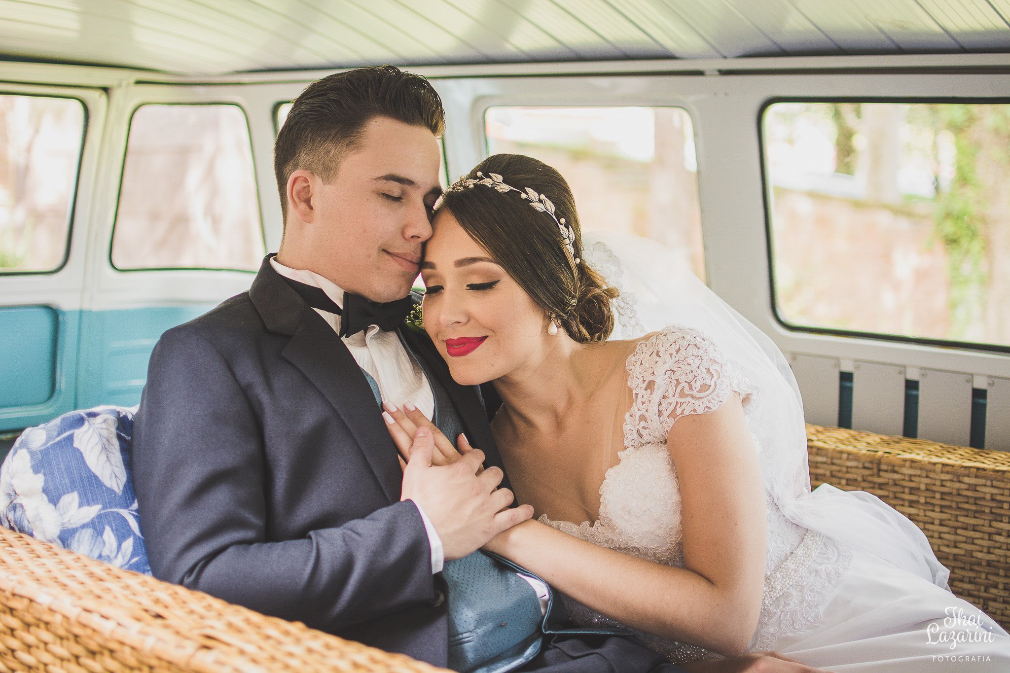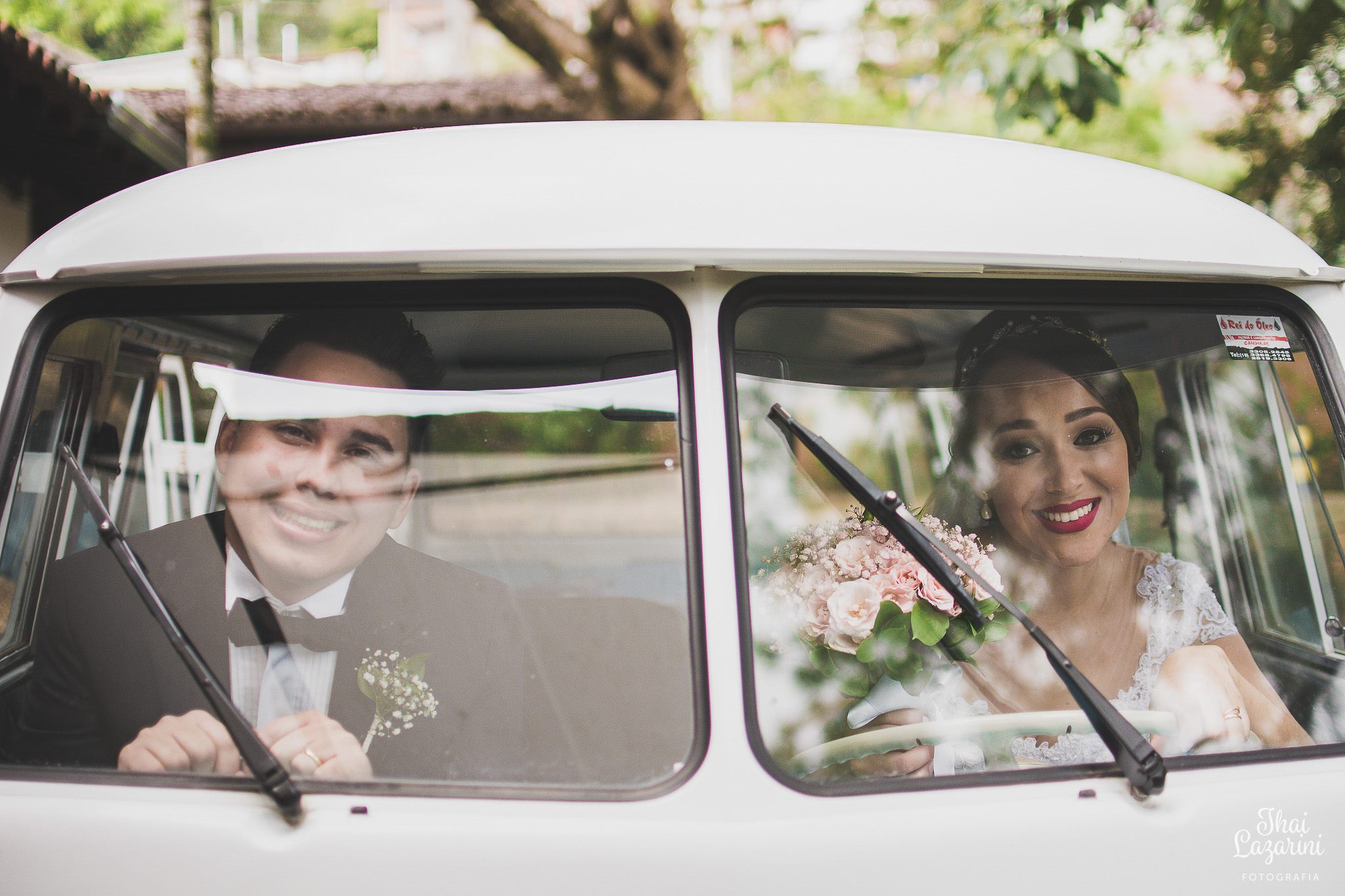 Depois da cerimônia fomos fazer o ensaio do casal, e as fotos foram feitas no “fusca” do noivo, dando um charme e tanto!! Ficou bem bacana ![]()