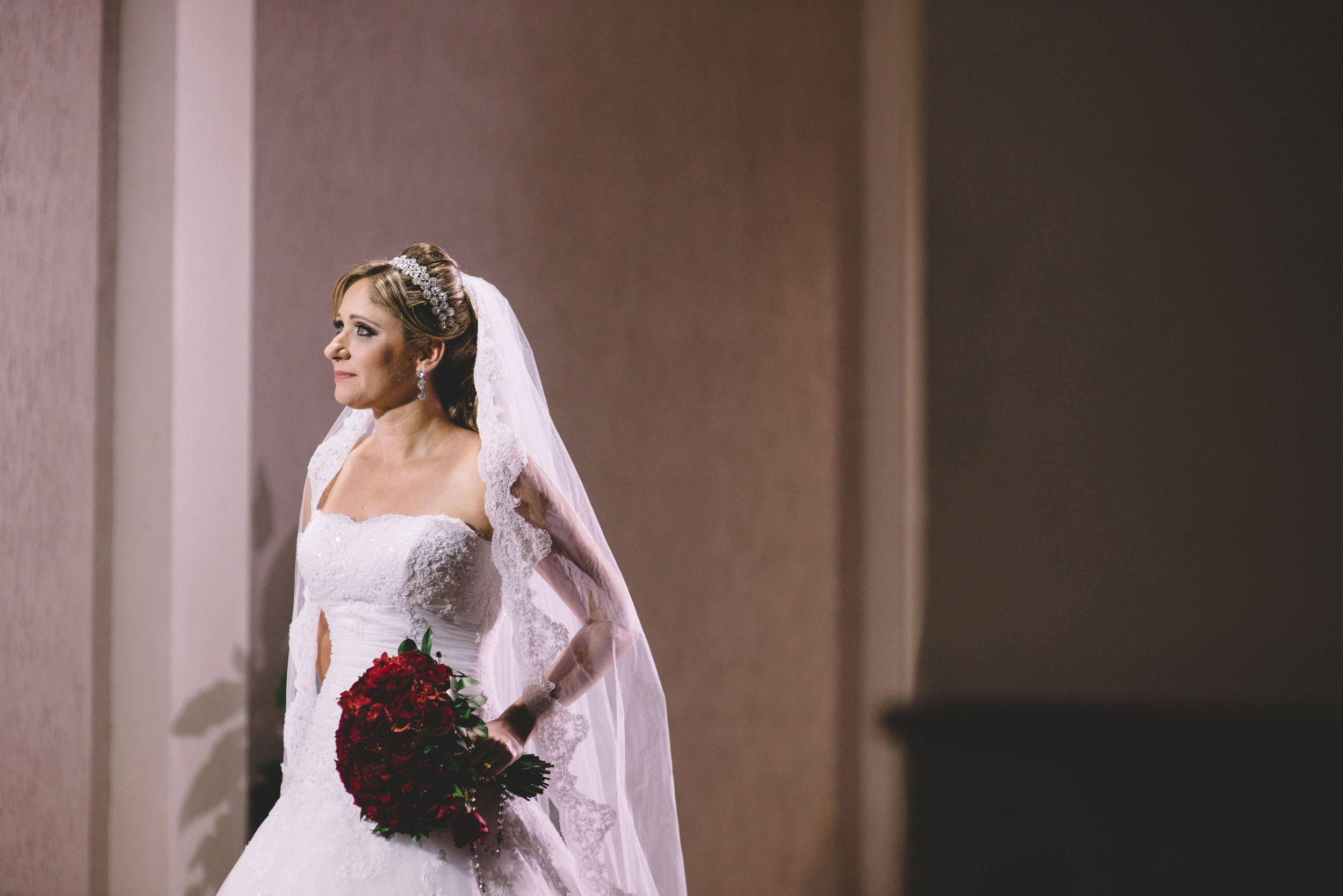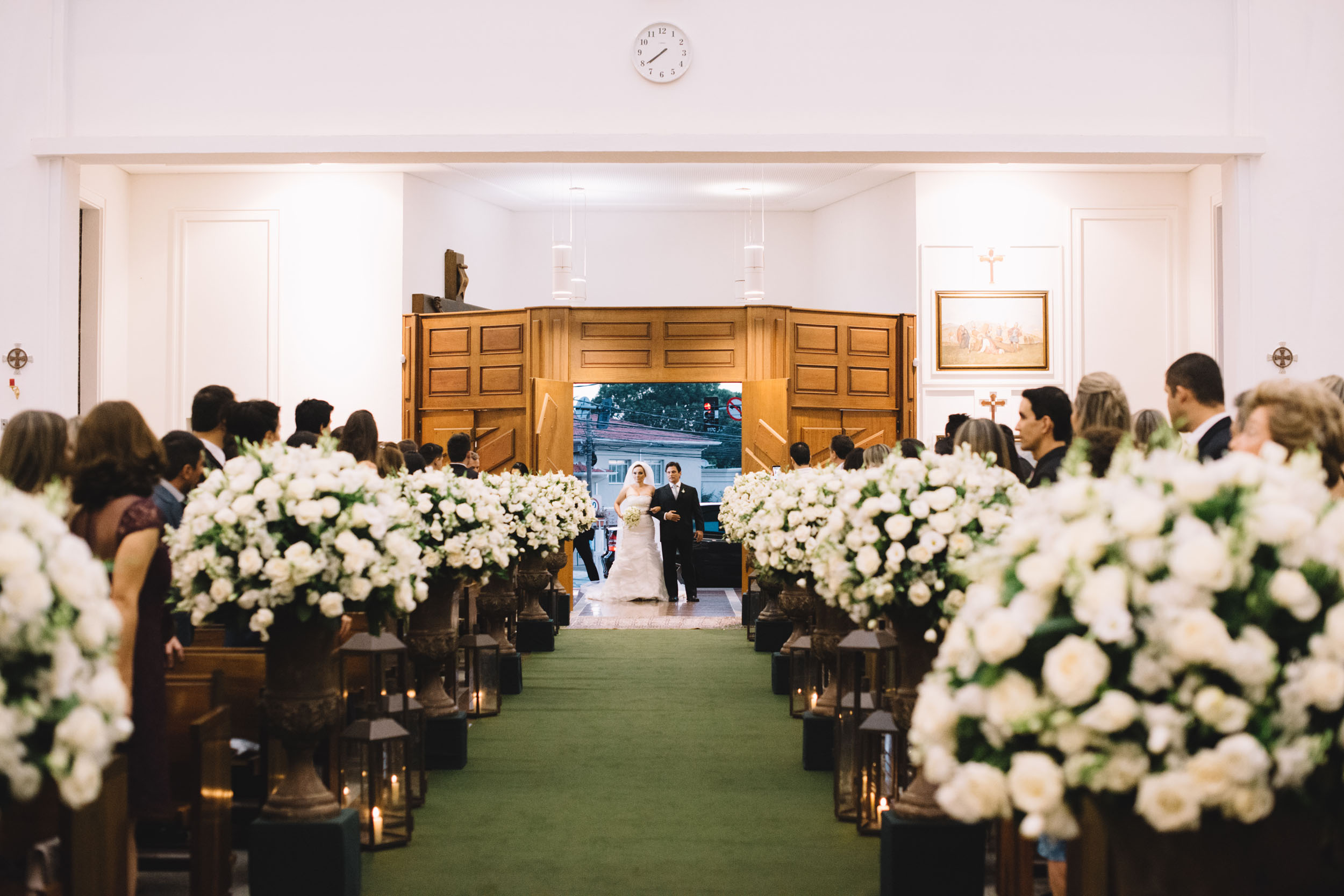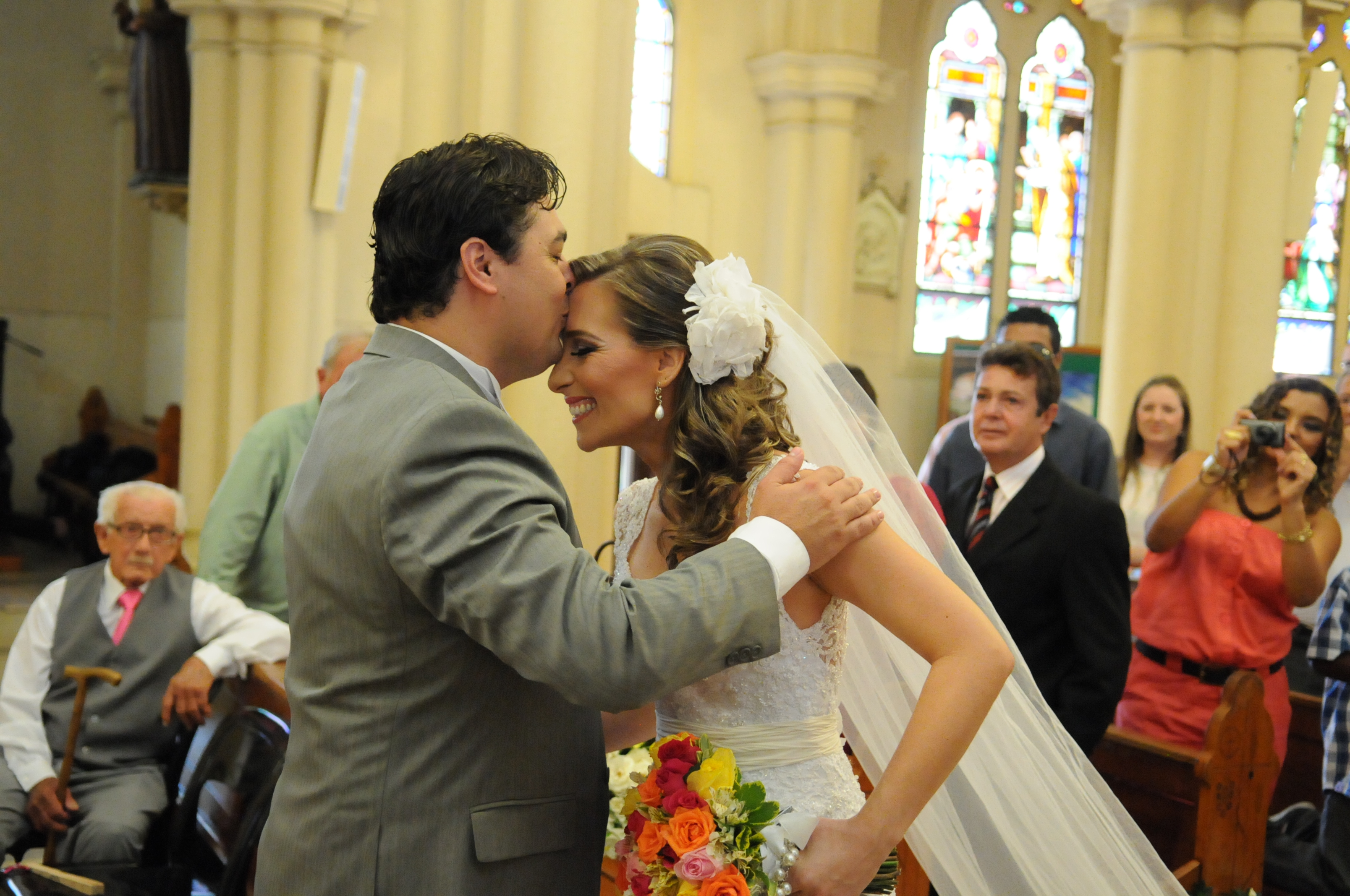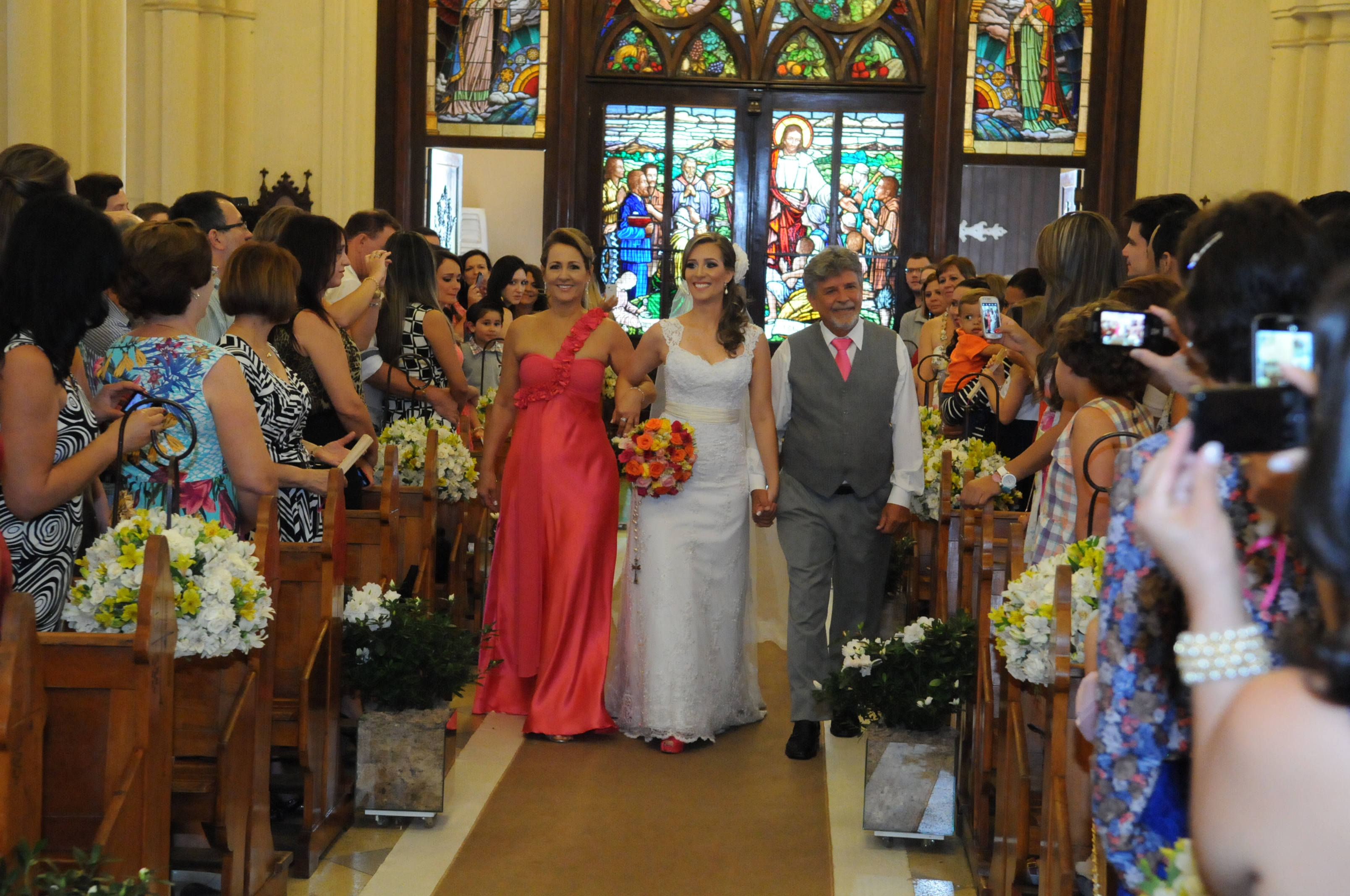 Todos apostavam que ela estaria de vestido vermelho, sua cor predileta, mas entrou de branco, tradicional e linda!!!
