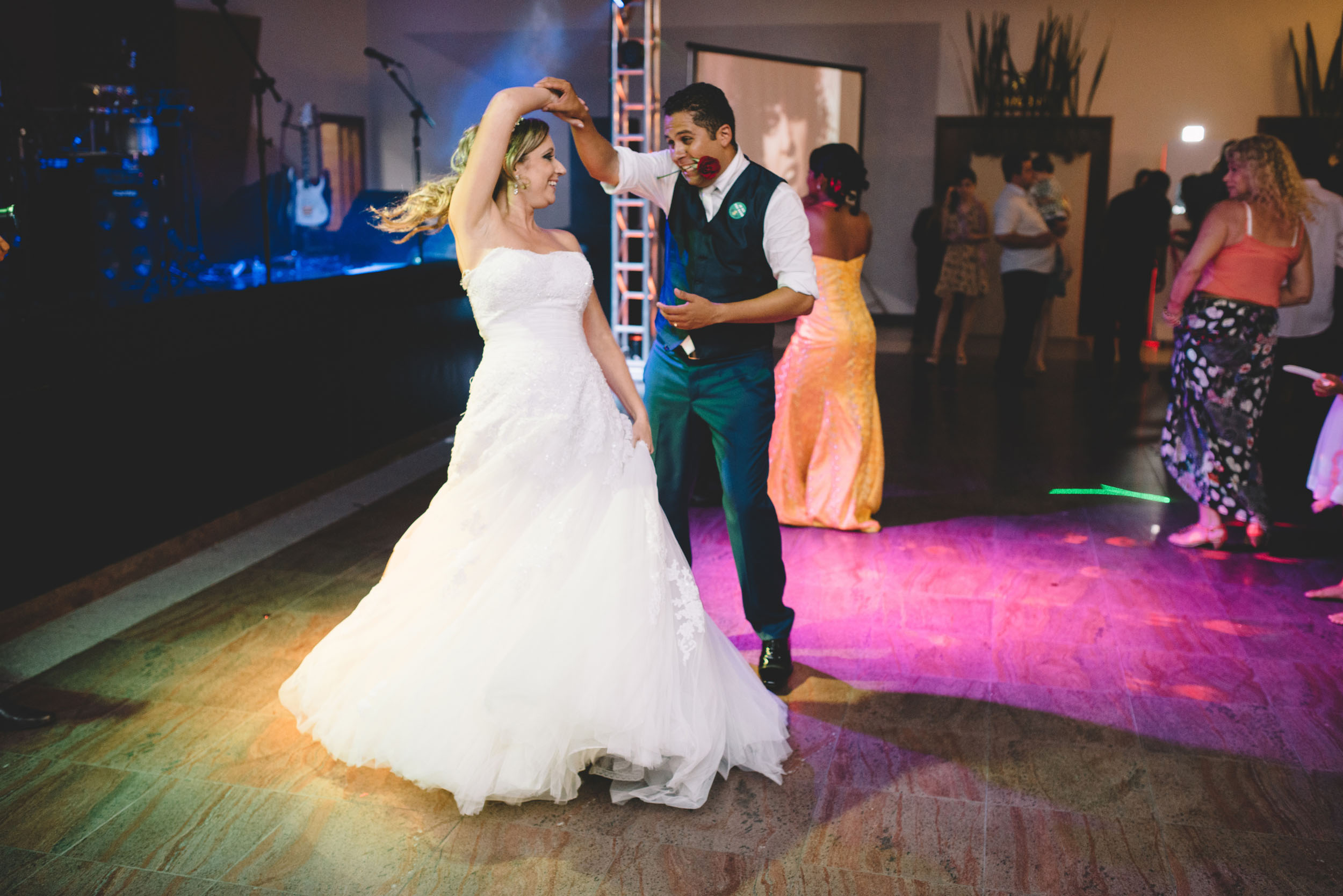 O casal aproveitou cada instante, dançaram muito, e claro que não poderia faltar a tradicional dança dos noivos, que foi ao som de “Sandra Rosa Madalena”.