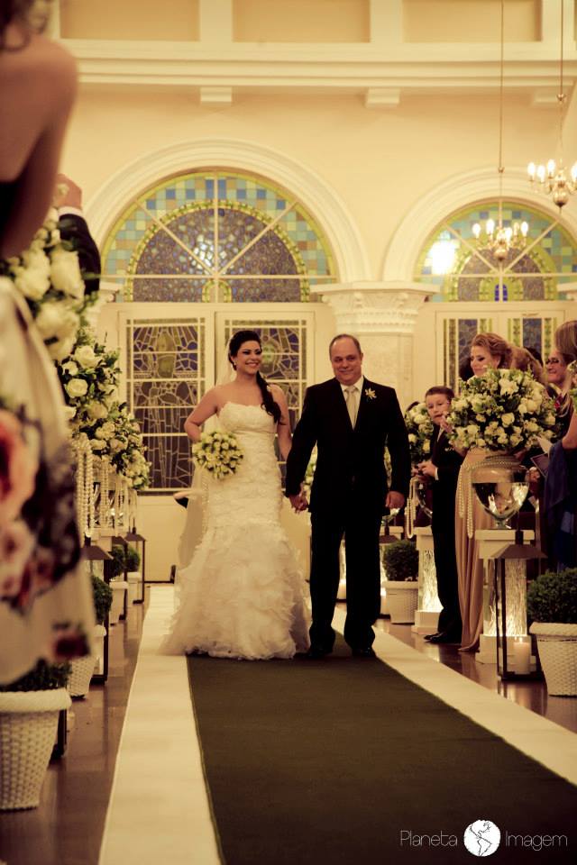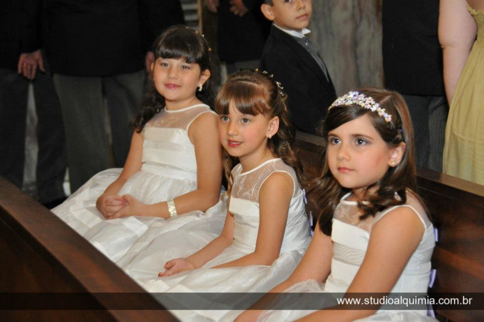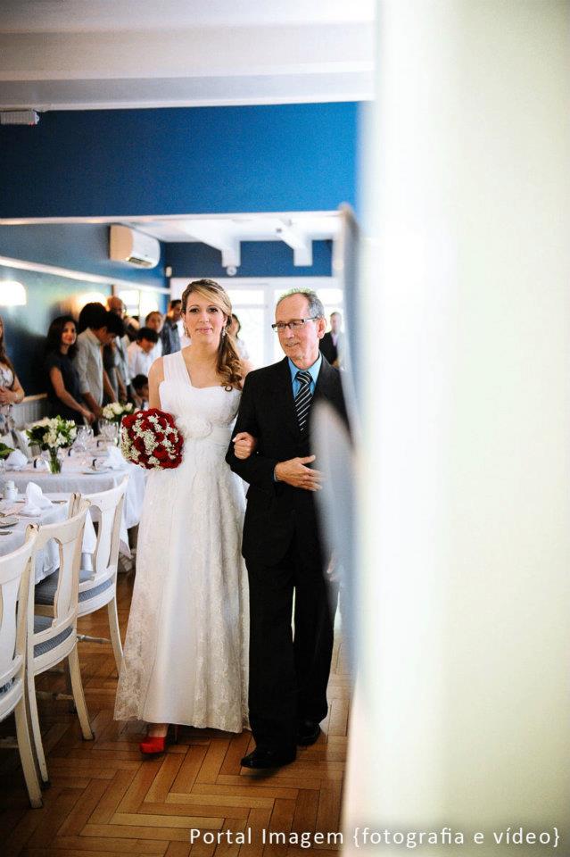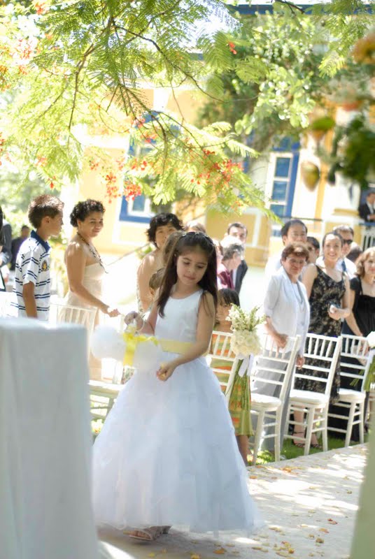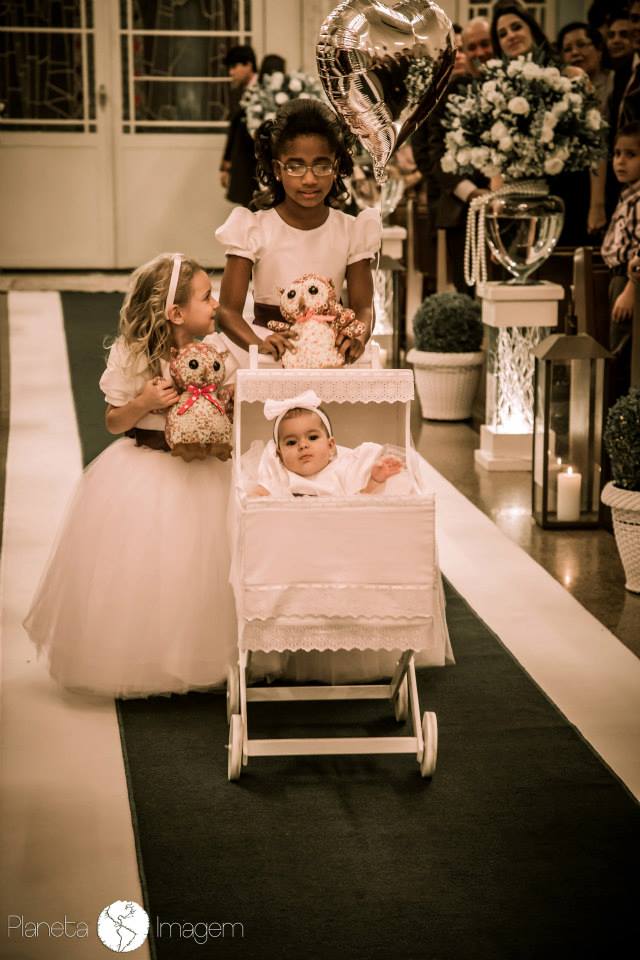 Cerimônia linda, maravilhosa e o momento mais emocionante foi a entrada das damas! Um bebê de poucos meses entra dentro de um carrinho, levada pelas outras damas… esse bebê mais fofo, além de ser afilhada da noiva é a única sobrinha e neta na família! Imaginem a emoção…