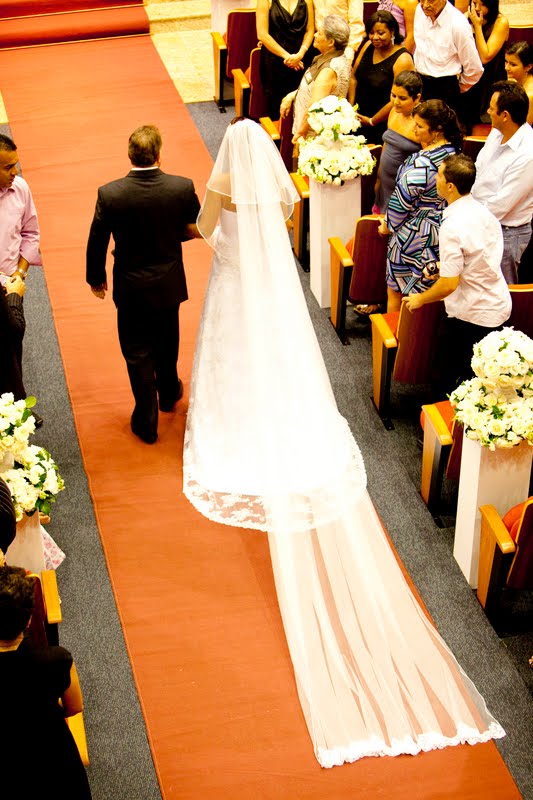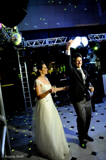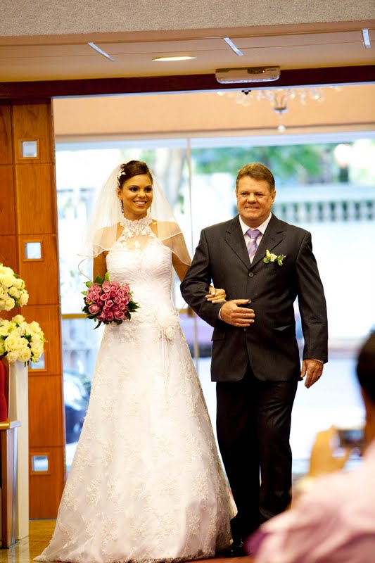 A Mari ameaçou a chorar na entrada, mas foi linda e maravilhosa ao encontro do marido, também lindo!!!!! rsrsrs