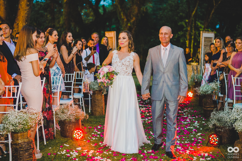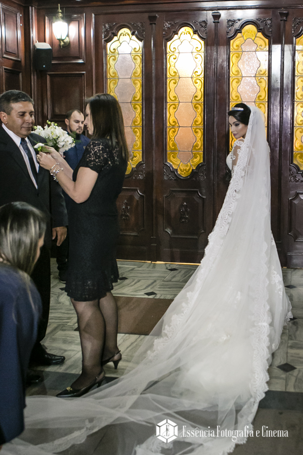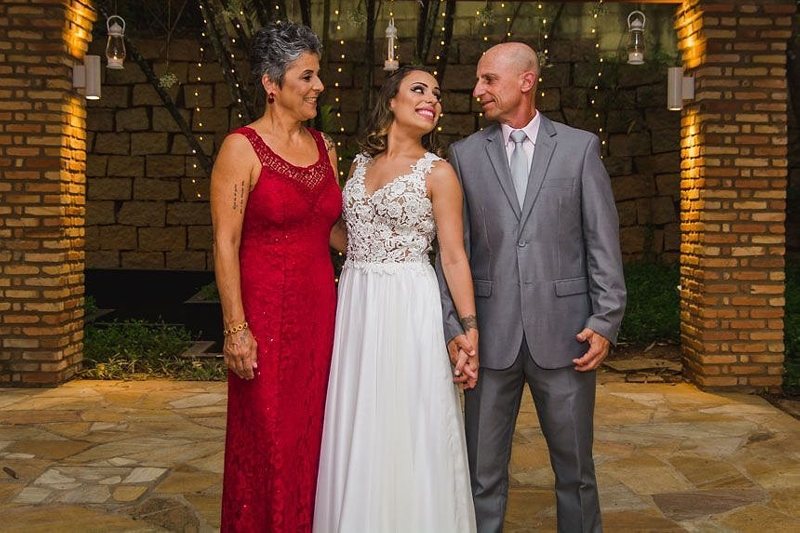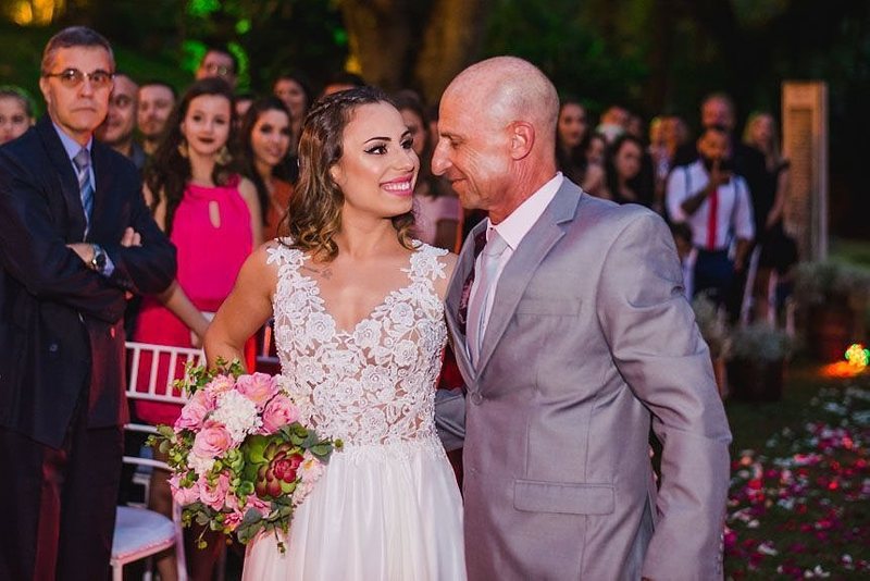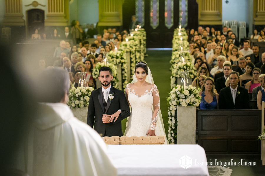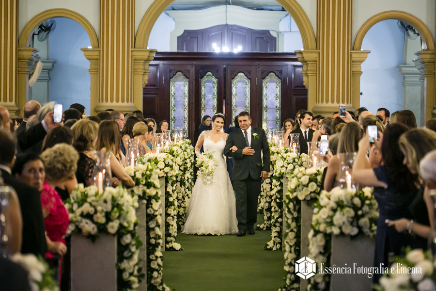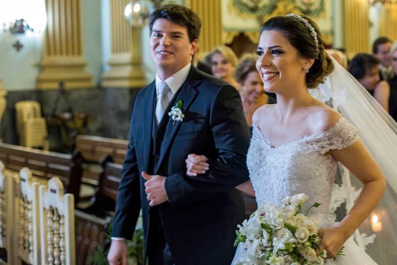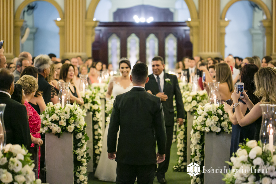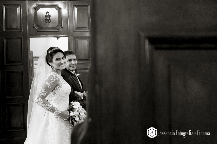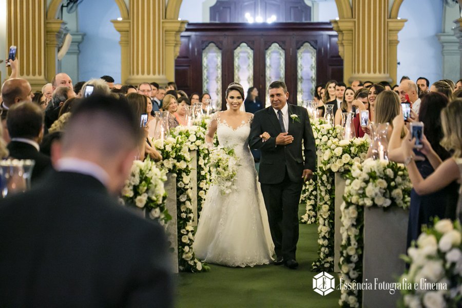 A cerimônia foi linda, com muita emoção ela entrou na Igreja junto ao pai, que se emocionou o tempo todo! Desde o momento em que viu a filha pronta descendo do carro, até o final da cerimônia!