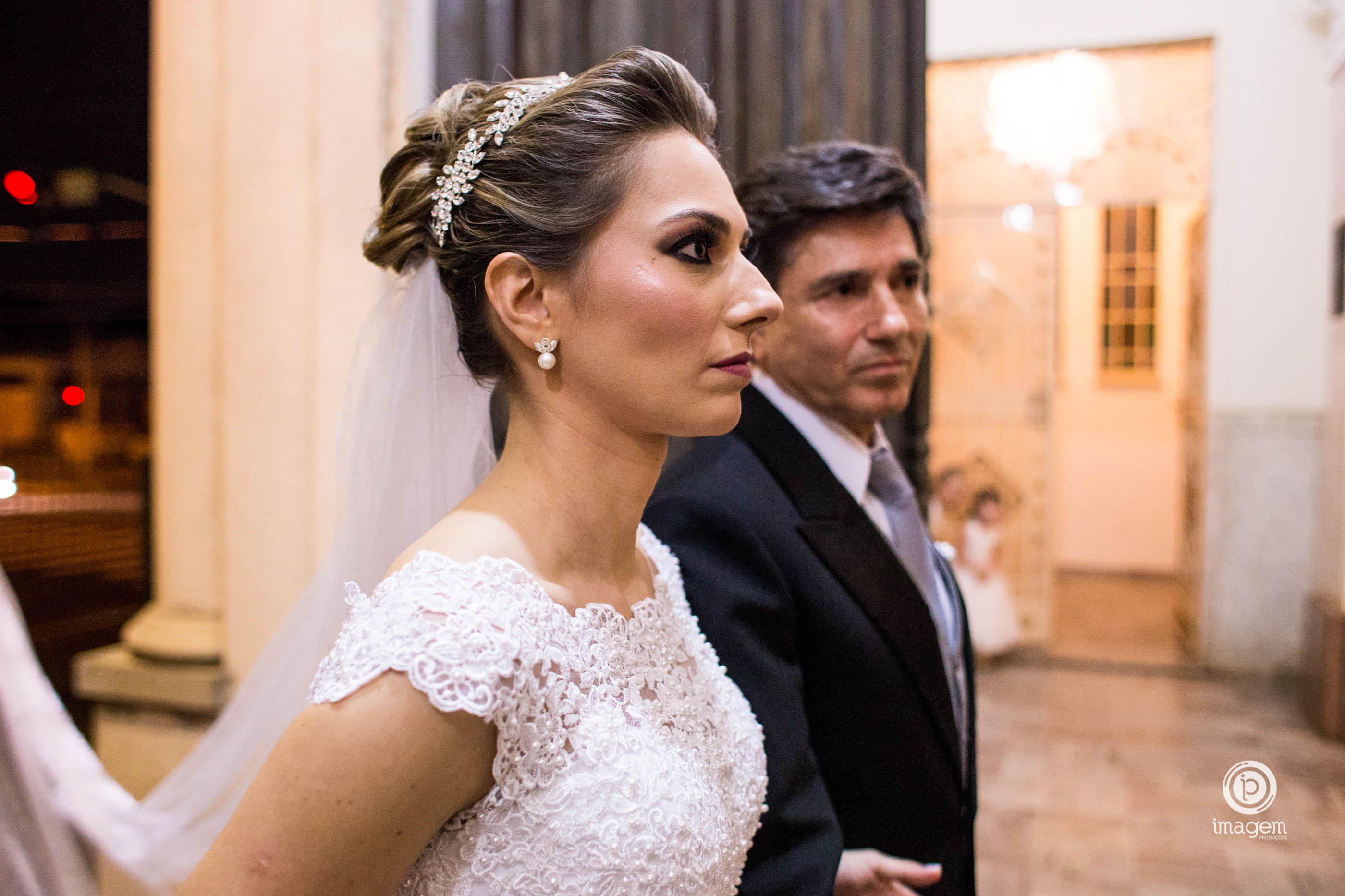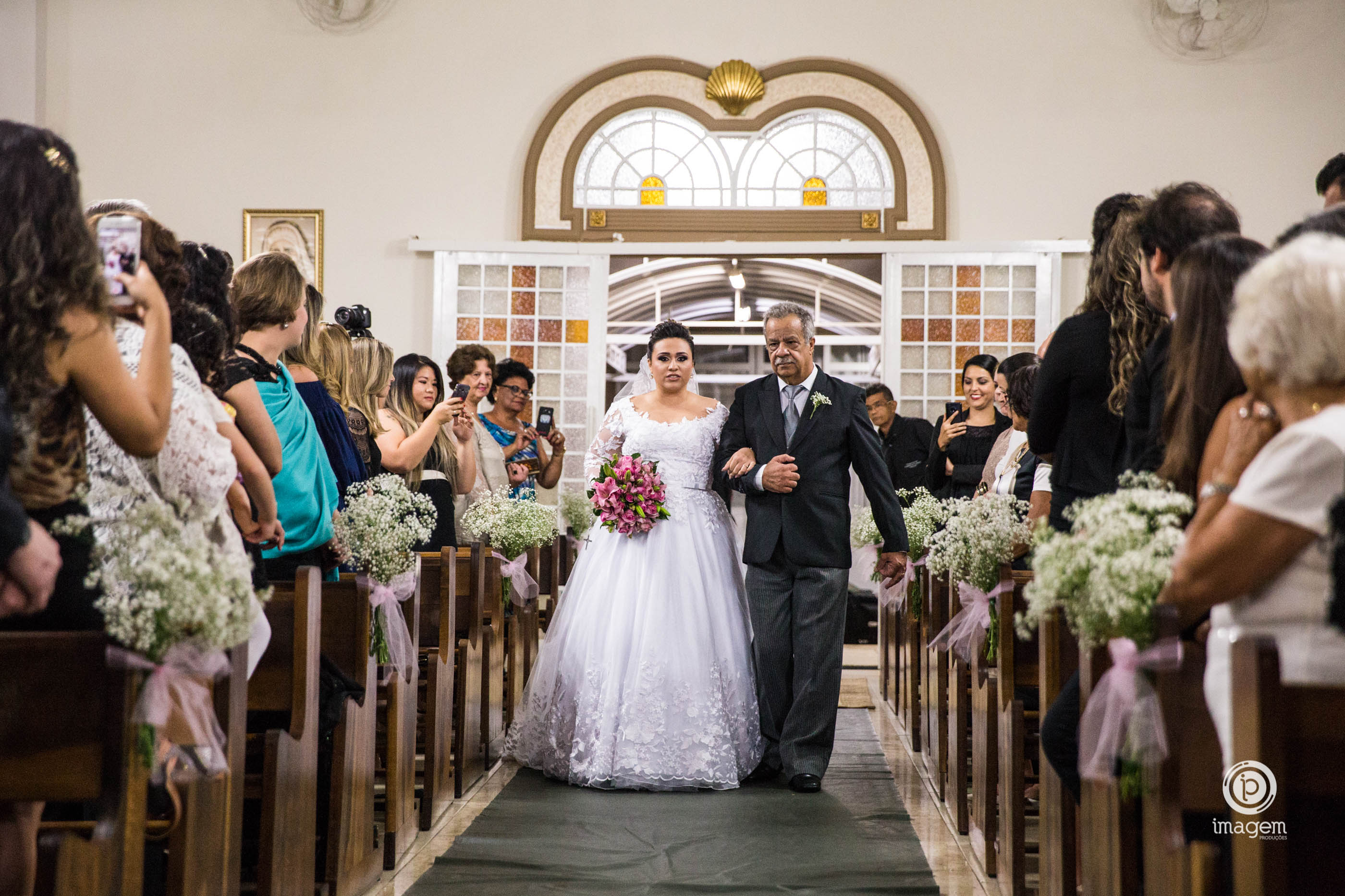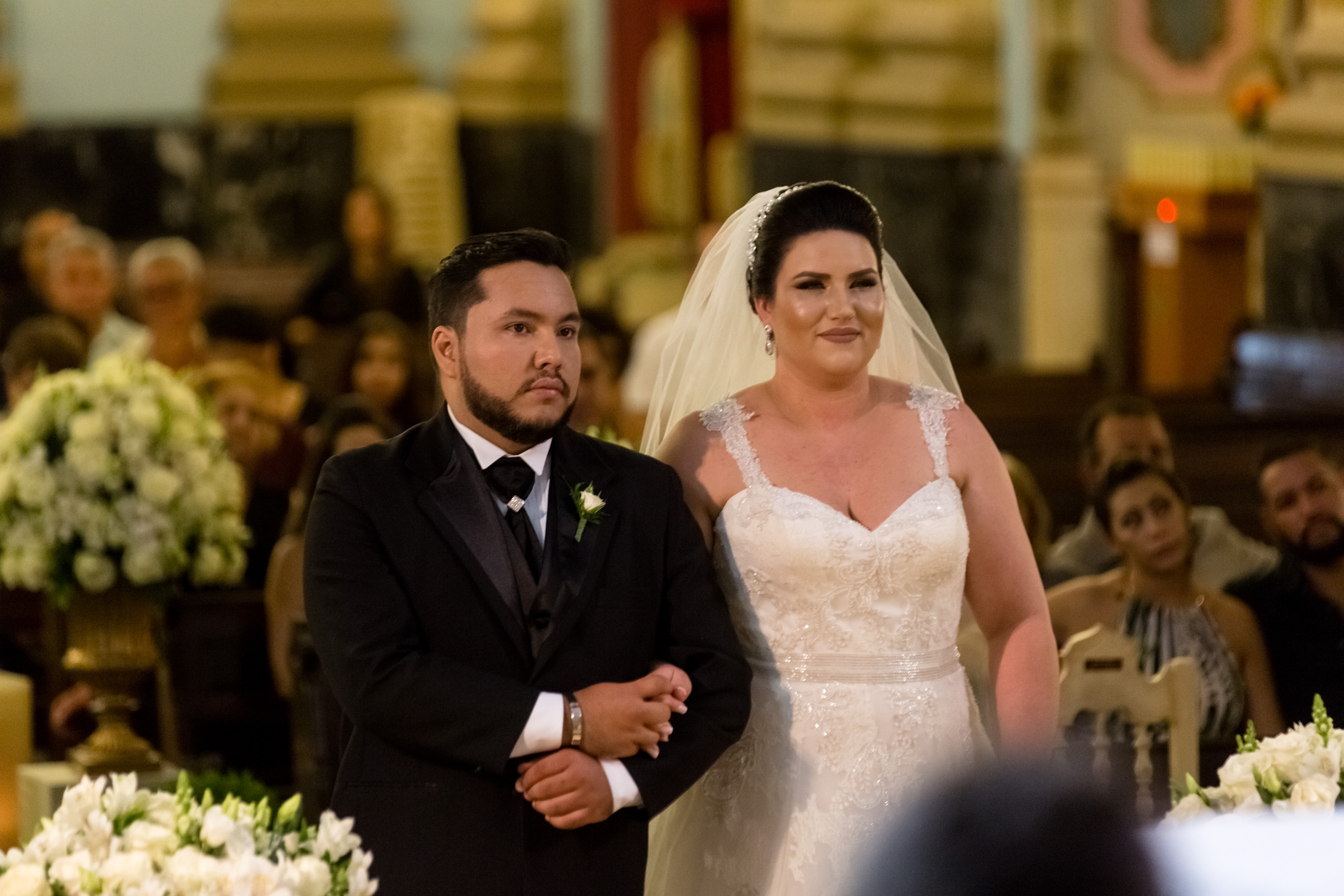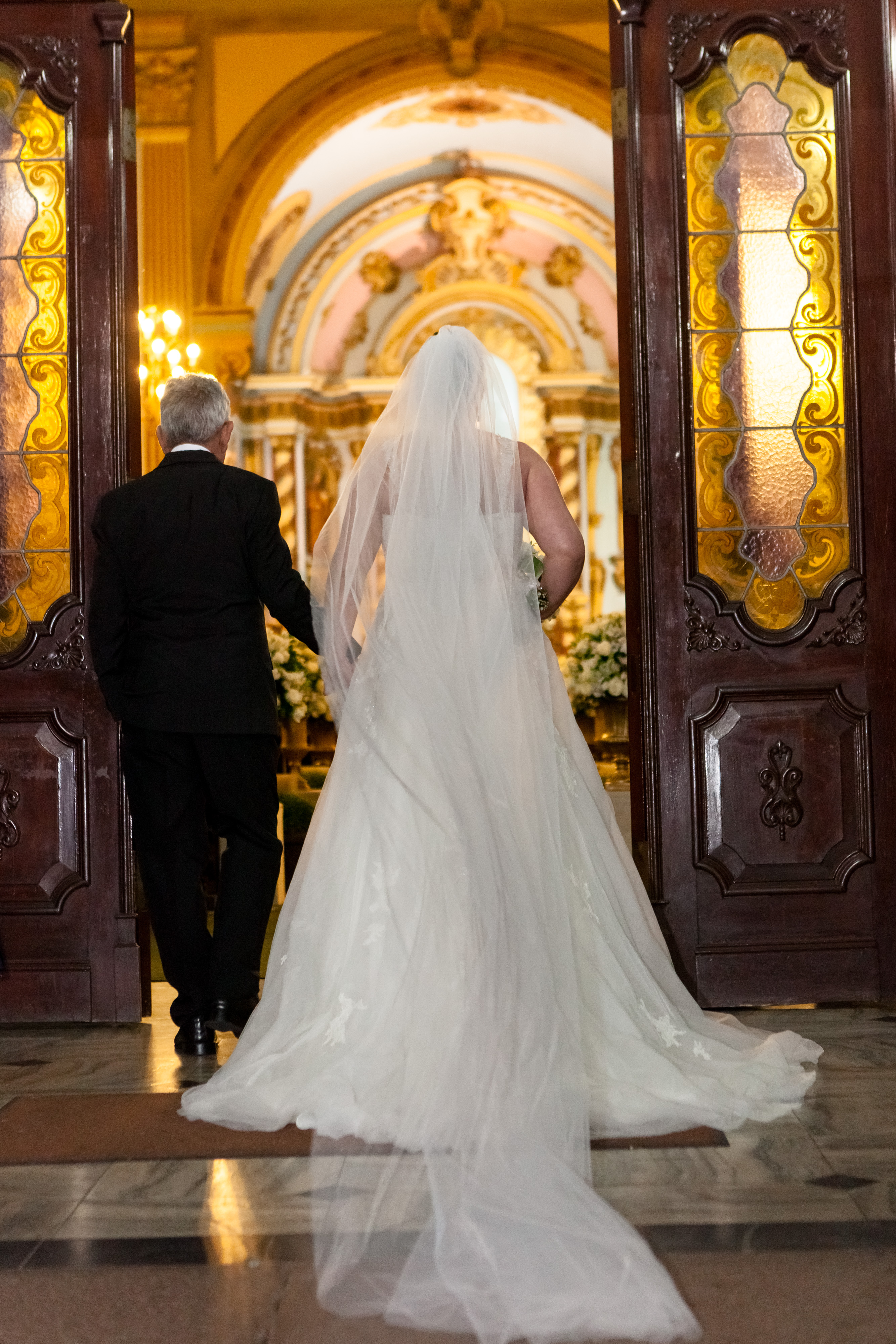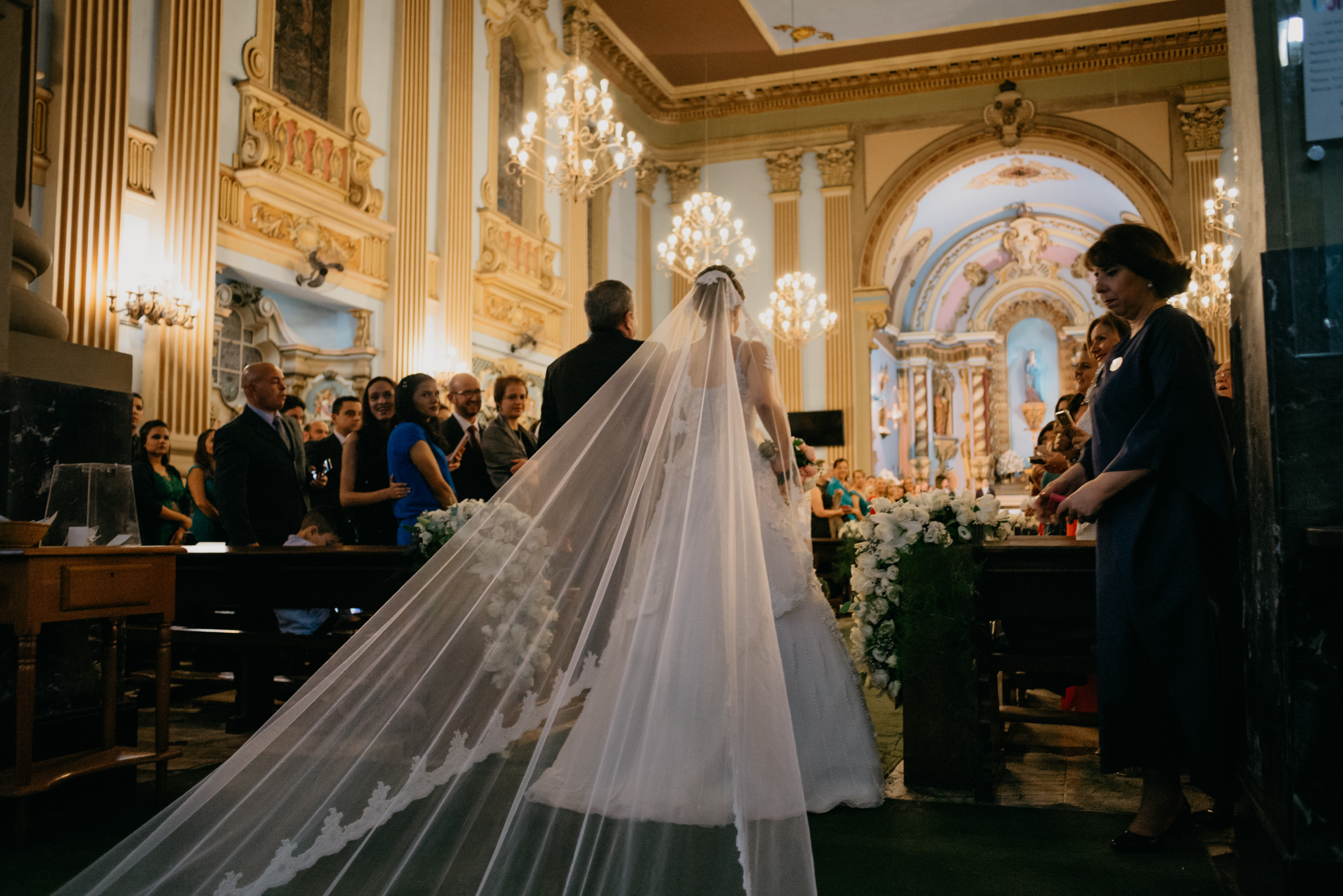 A cerimônia foi linda, com muita emoção ela entrou na Igreja junto ao pai, que se emocionou o tempo todo! Desde o momento em que viu a filha pronta descendo do carro, até o final da cerimônia!