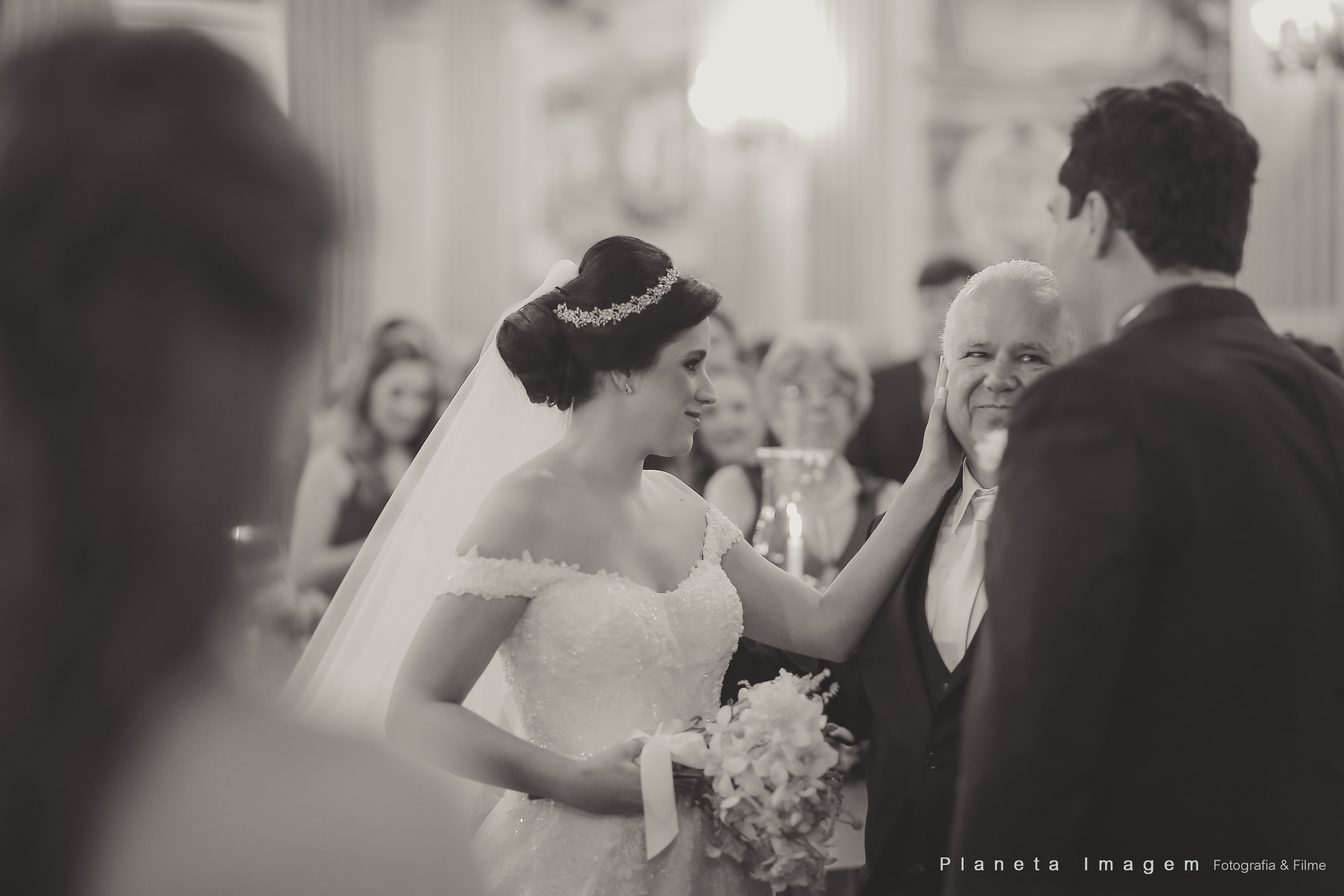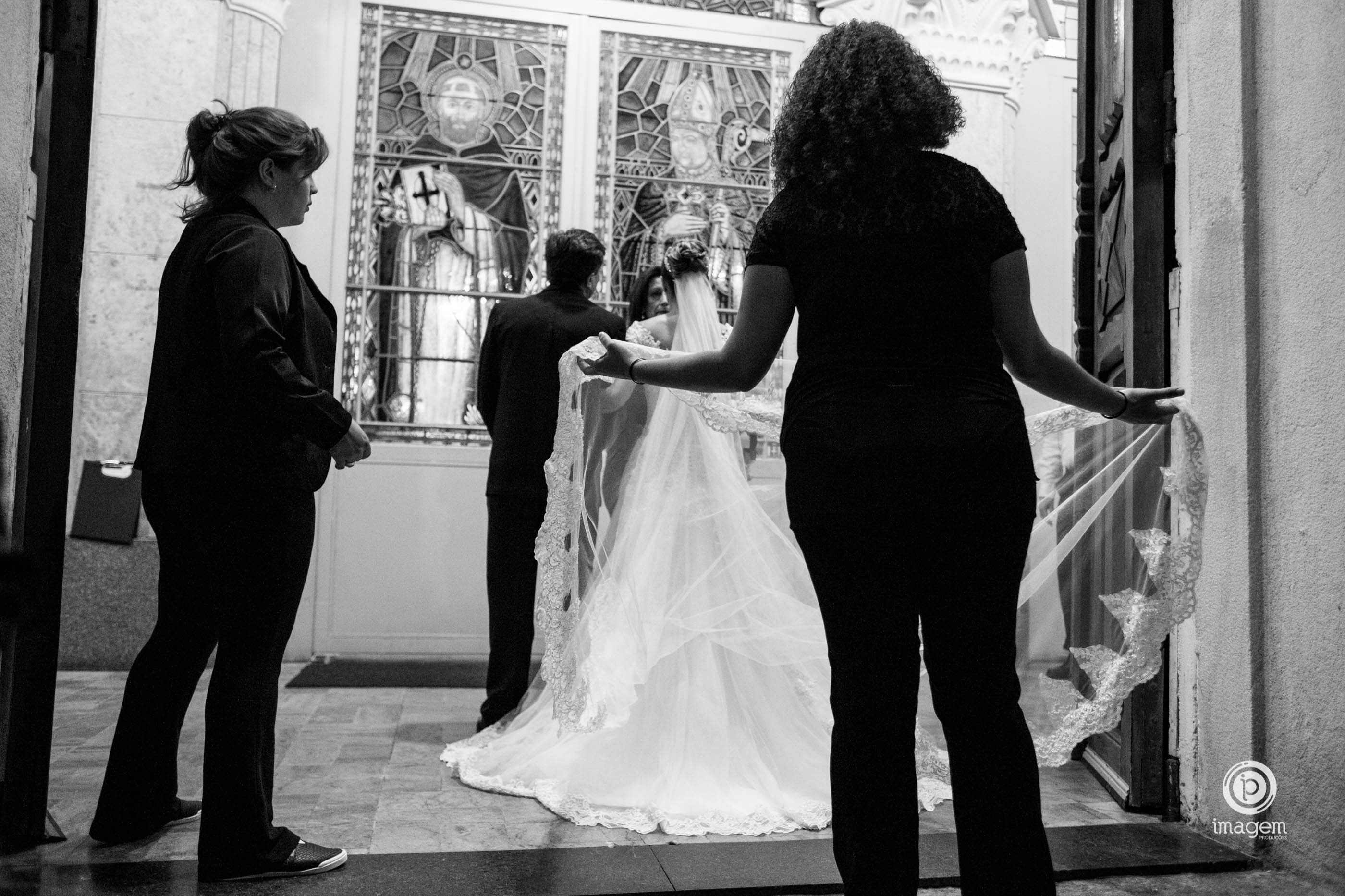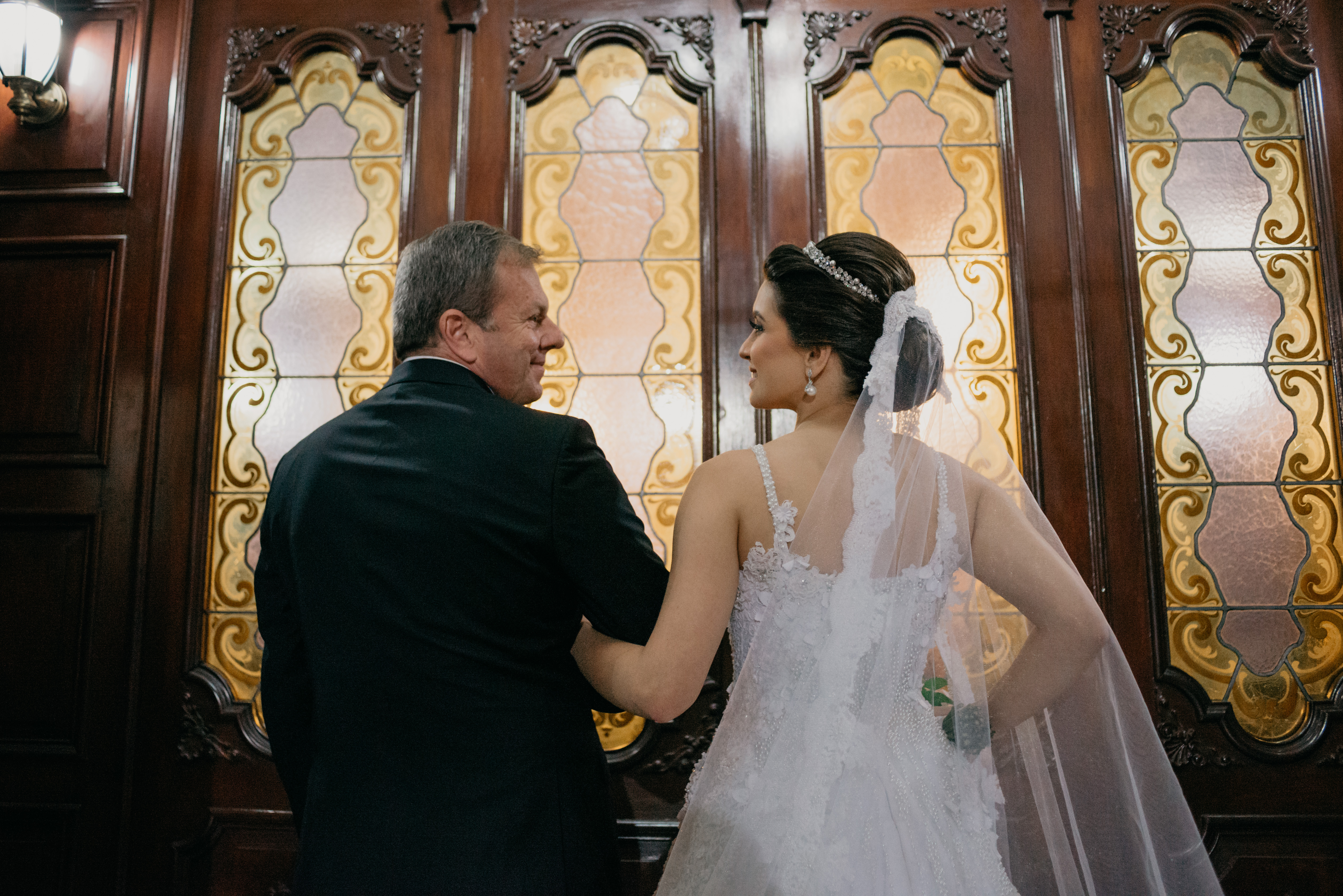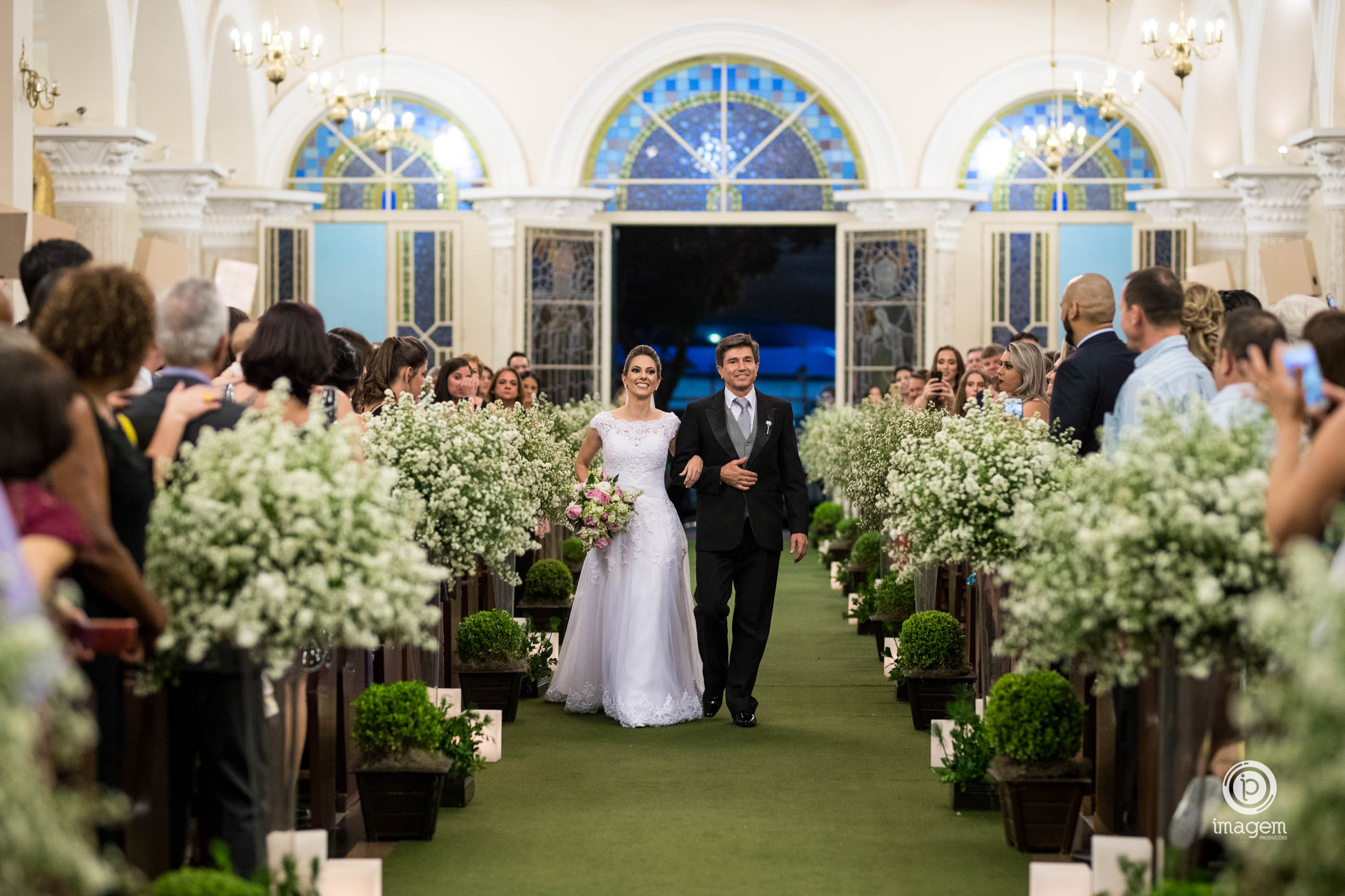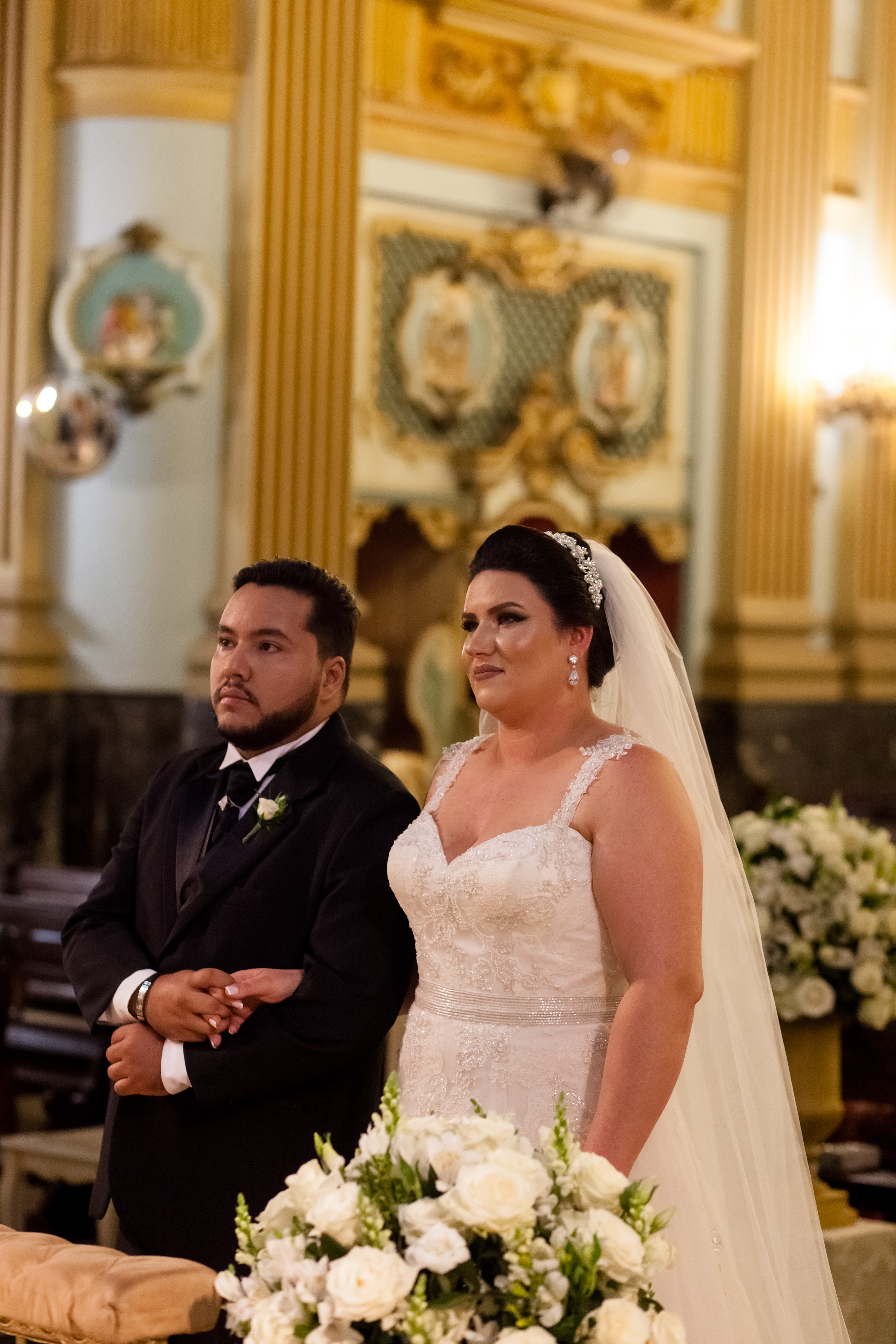 A cerimônia foi linda, com muita emoção ela entrou na Igreja junto ao pai, que se emocionou o tempo todo! Desde o momento em que viu a filha pronta descendo do carro, até o final da cerimônia!