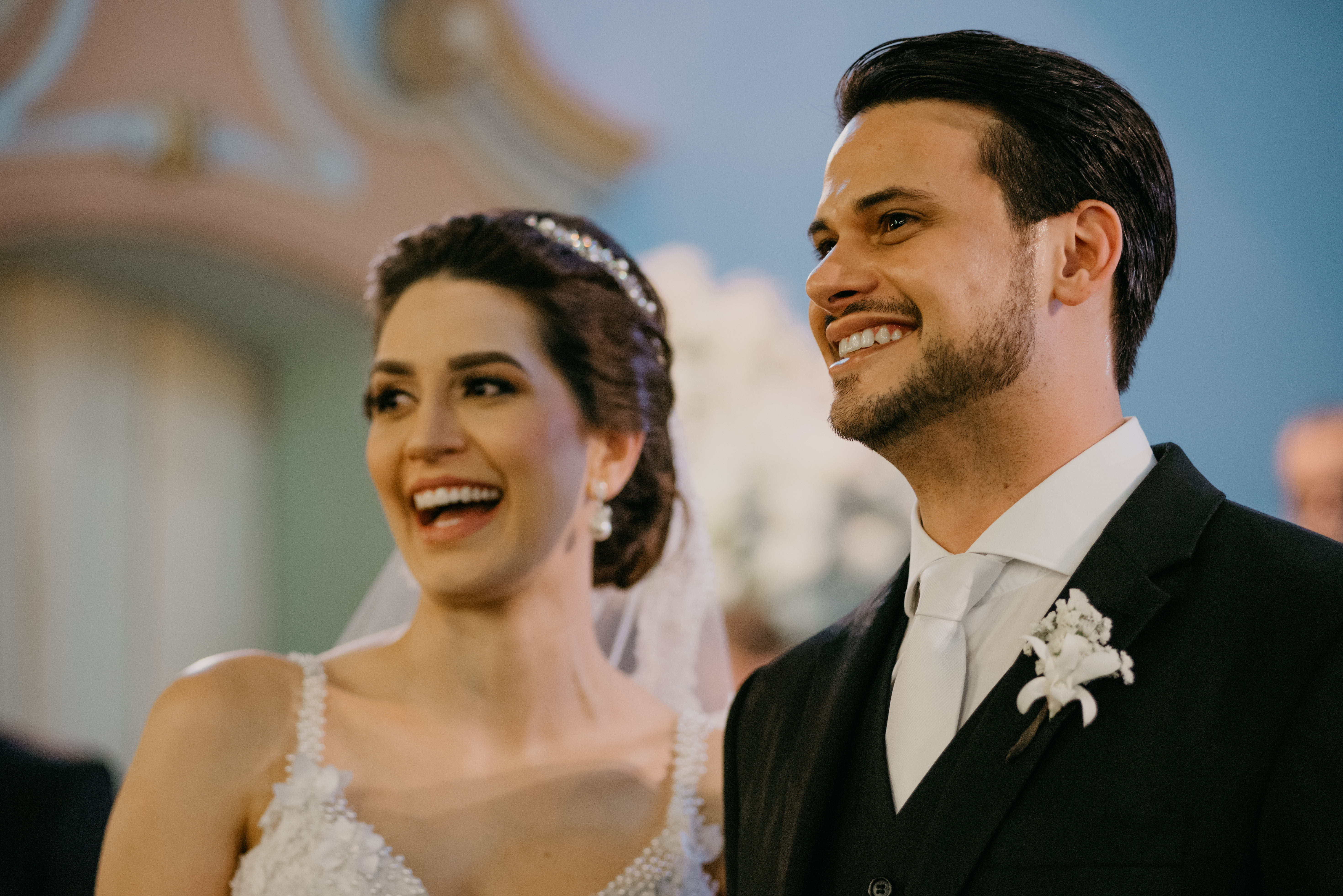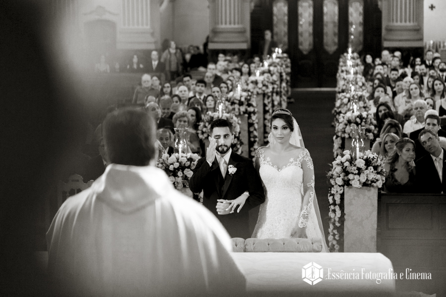 Tudo foi tomando forma, chegando em como eles queriam… a cerimônia foi linda, e o noivo se emocionou muito quando viu a doce Thais entrando! Também depois de tantos anos de namoro e mais dois de preparativos, ver a amada entrando tão linda na Igreja, não deu para segurar a emoção!