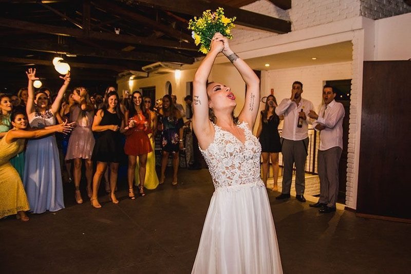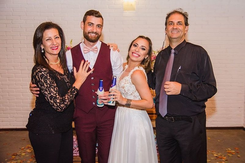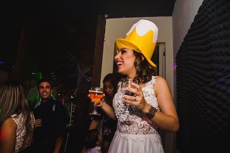 Depois tivemos uma festa super animada, com brinde dos noivos regado a cerveja, que é a cara deles, comida de boteco, muita música boa, pista cheia e diversão garantida!