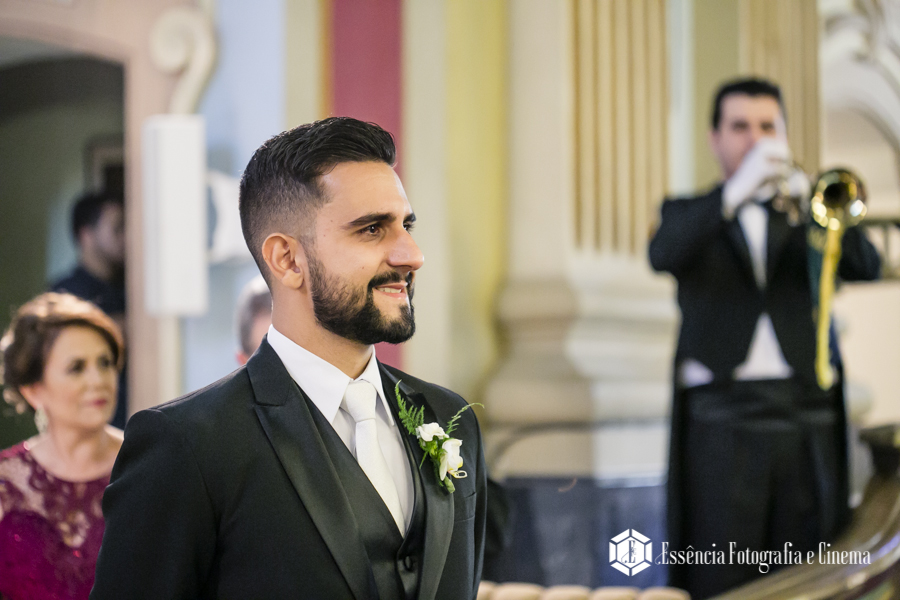 Que demais quando vemos a reação do noivo quando olha a amada entrando na Igreja!