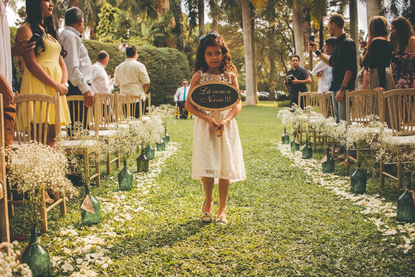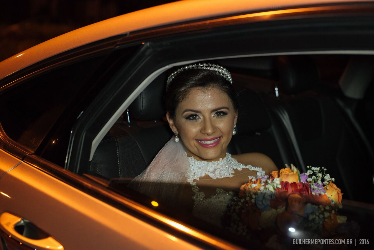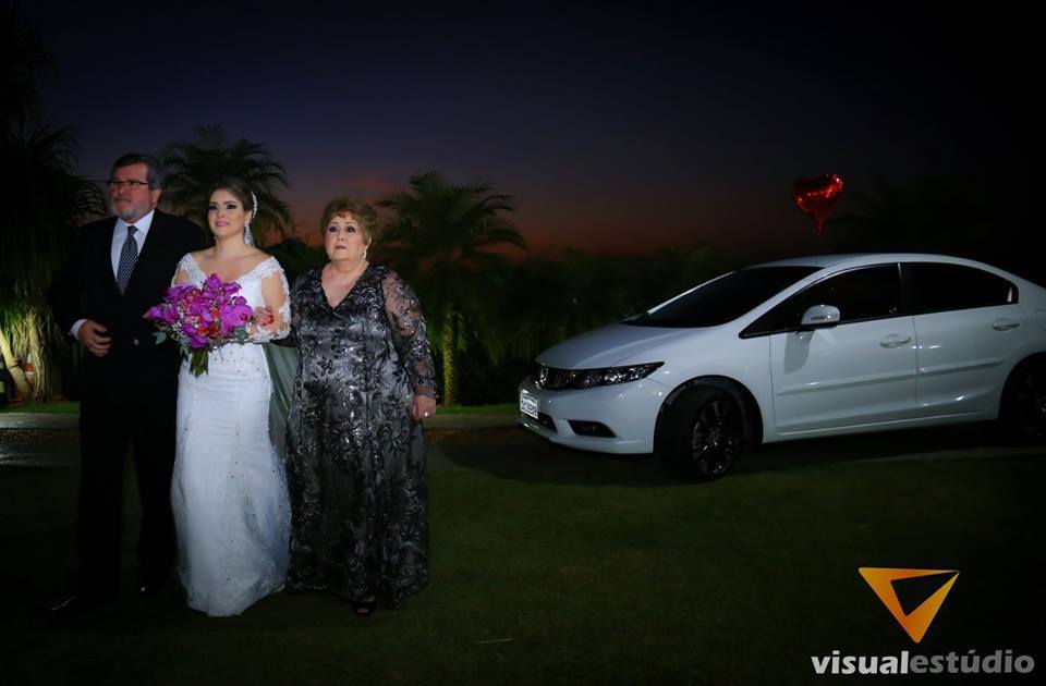 Na hora da entrada, quando estava prestes da tocar a marcha, ela percebeu que seria no local tão sonhado, entraria na cerimônia com seus arcos de flores, com um por do sol incrível!
