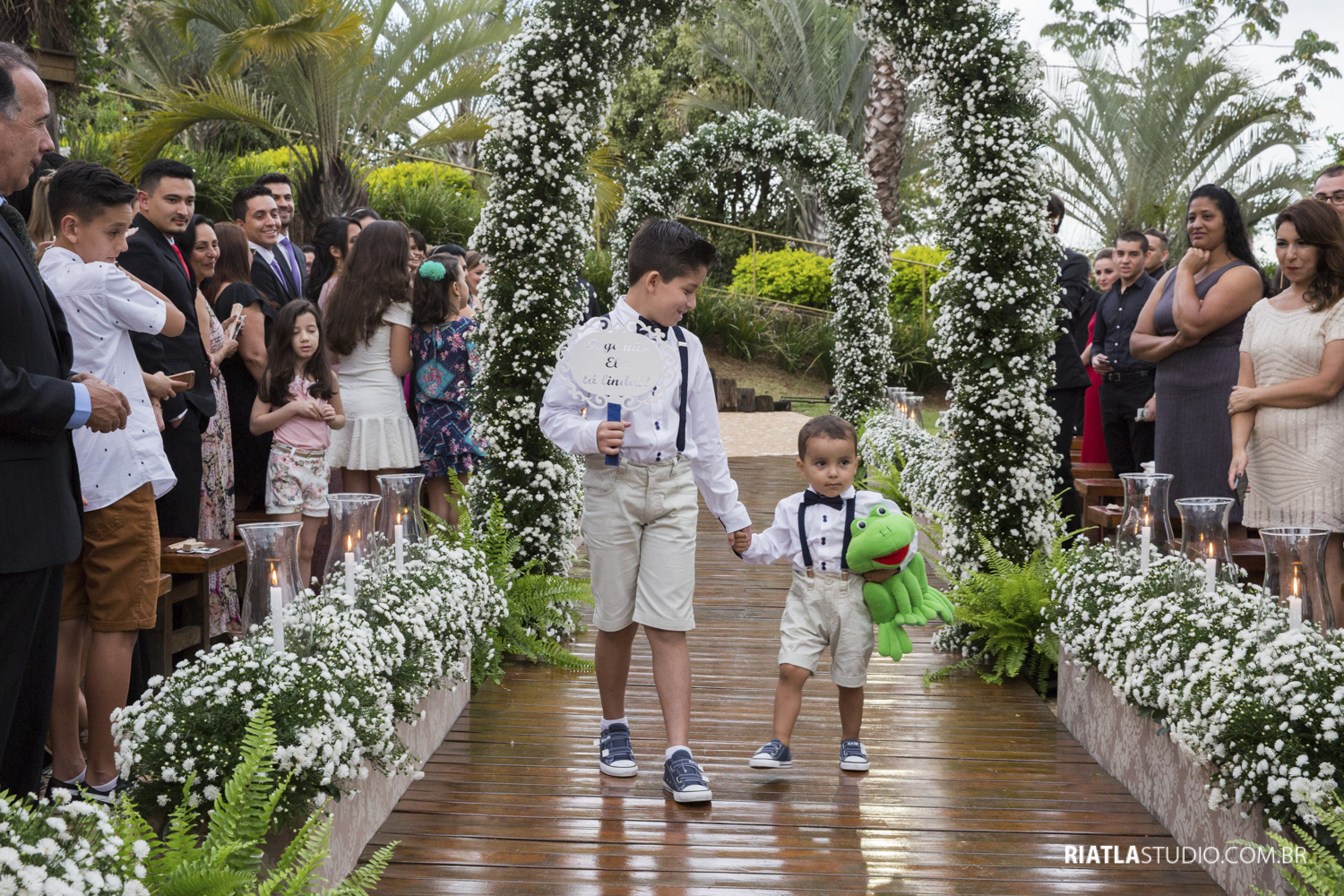Como sempre a cerimônia emociono, encanta… Avós presentes com muita honra levando as alianças, que lindo!!! Super emocionante, e claro, o noivo chora