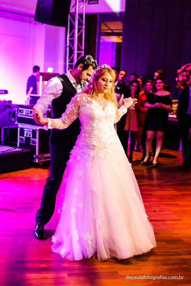 Logo que entraram no salão os noivos fizeram uma dança e já permaneceram na pista… imagine se ficou vazia!!! Lotada, do começo ao fim da festa!