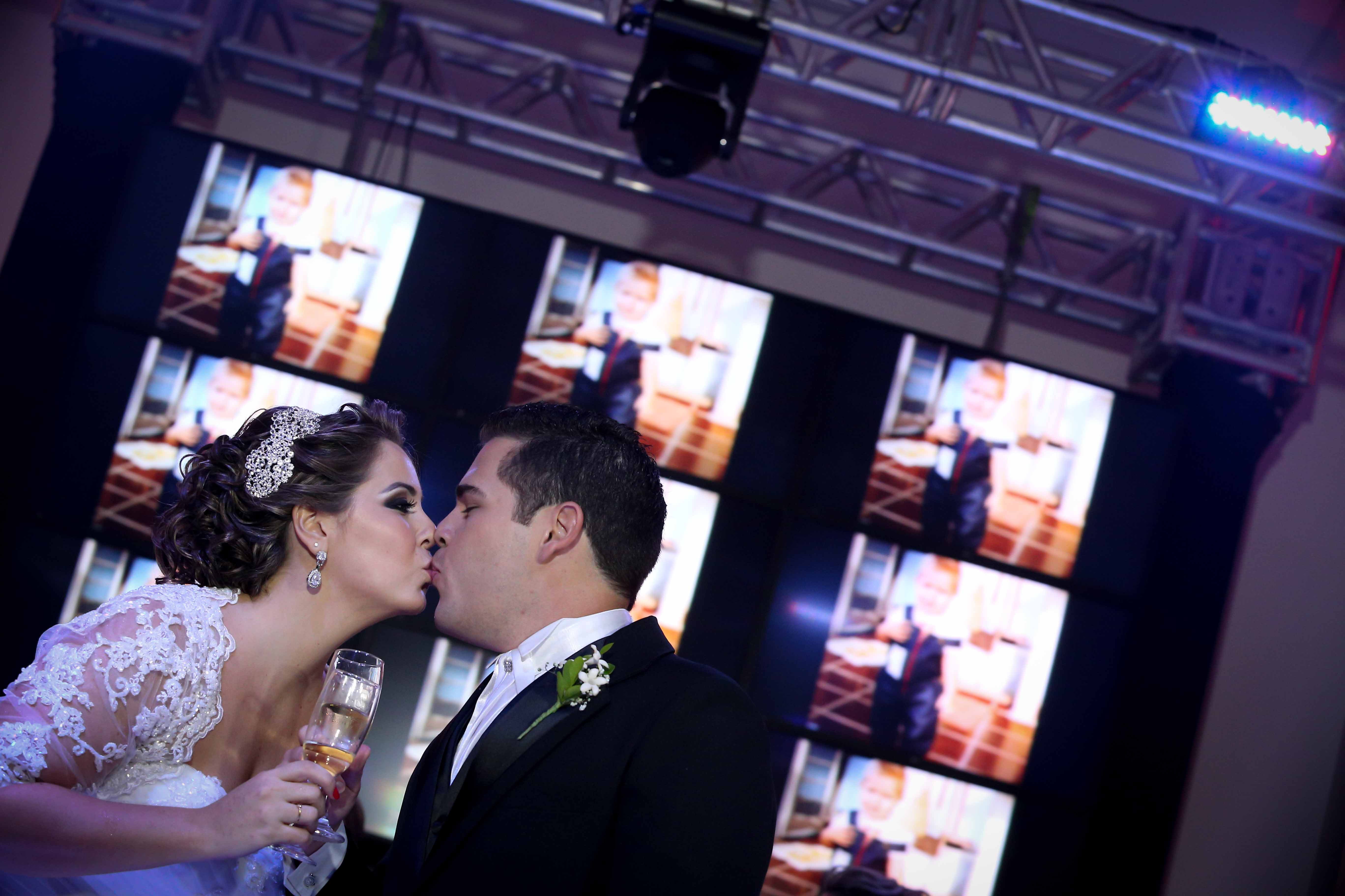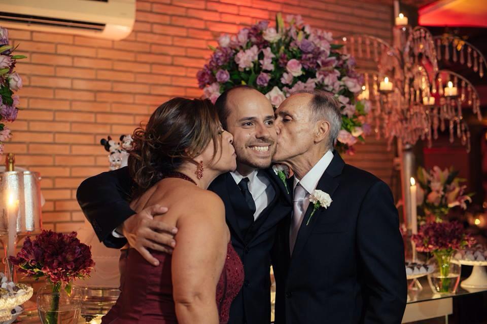 Muitos familiares e amigos estiveram presentes, mas os que não puderam, enviaram vídeo felicitando o doce casal