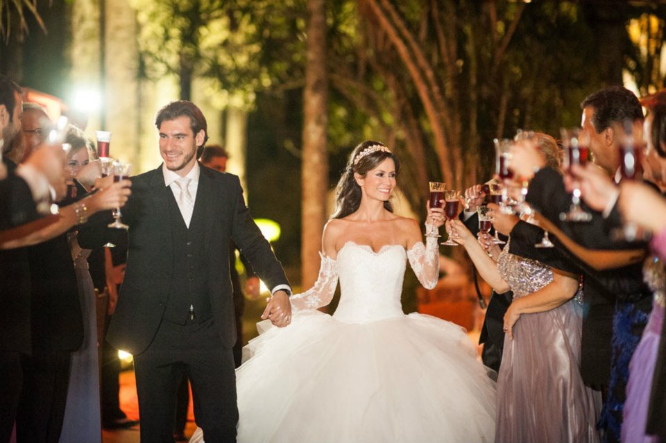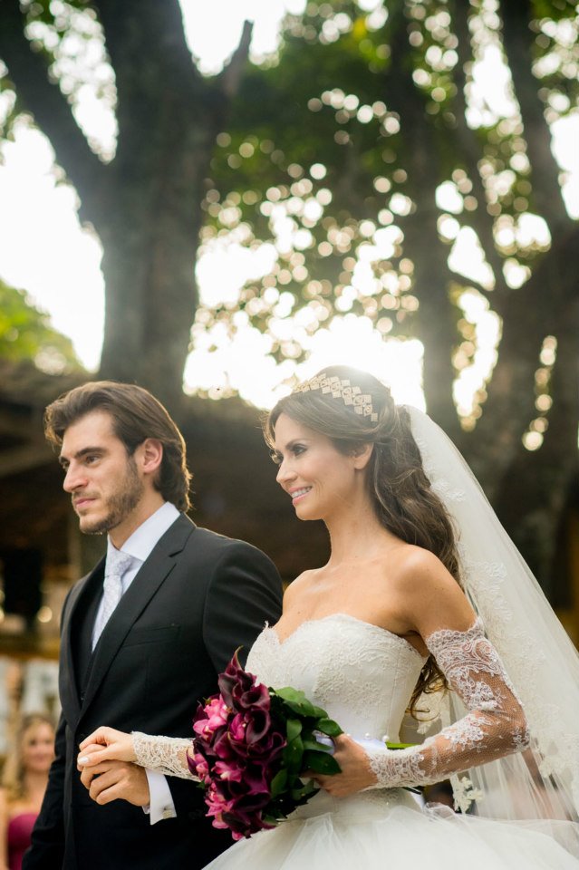 Um verdadeiro casamento de princesa, num cenário deslumbrante e um clima maravilhoso! Foi assim o casamento de Josie e Rodrigo que reuniu cerca de 250 convidados na Fazenda Santa Barbara em Itatiba. Uma decoração romântica que era composta por orquídeas e mosquitinhos, aquela florzinha branca miúda, usada no caminho para o altar. O rústico da fazenda foi aliada à elegância dos convidados e logicamente dos noivos que além de serem um casal lindo, estavam divinamente trajados! Os detalhes foram acompanhados e pensados minimamente pelo casal, que escolhiam tudo juntos! A escolha da fazenda tem um significado mais que especial para ambos! “Escolhemos casar ao ar livre para que todos pudessem sentir a presença de Deus.” Revela a noiva!