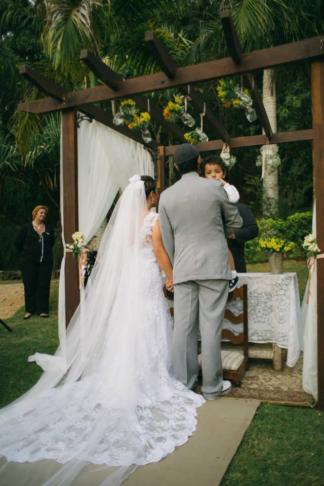A cerimônia foi conduzida pelo pai da noiva, que além de entrega-la ao noivo, também celebrou o casamento e deu a bênção ao casal. Que honra!!! Muito, mas muito emocionante!