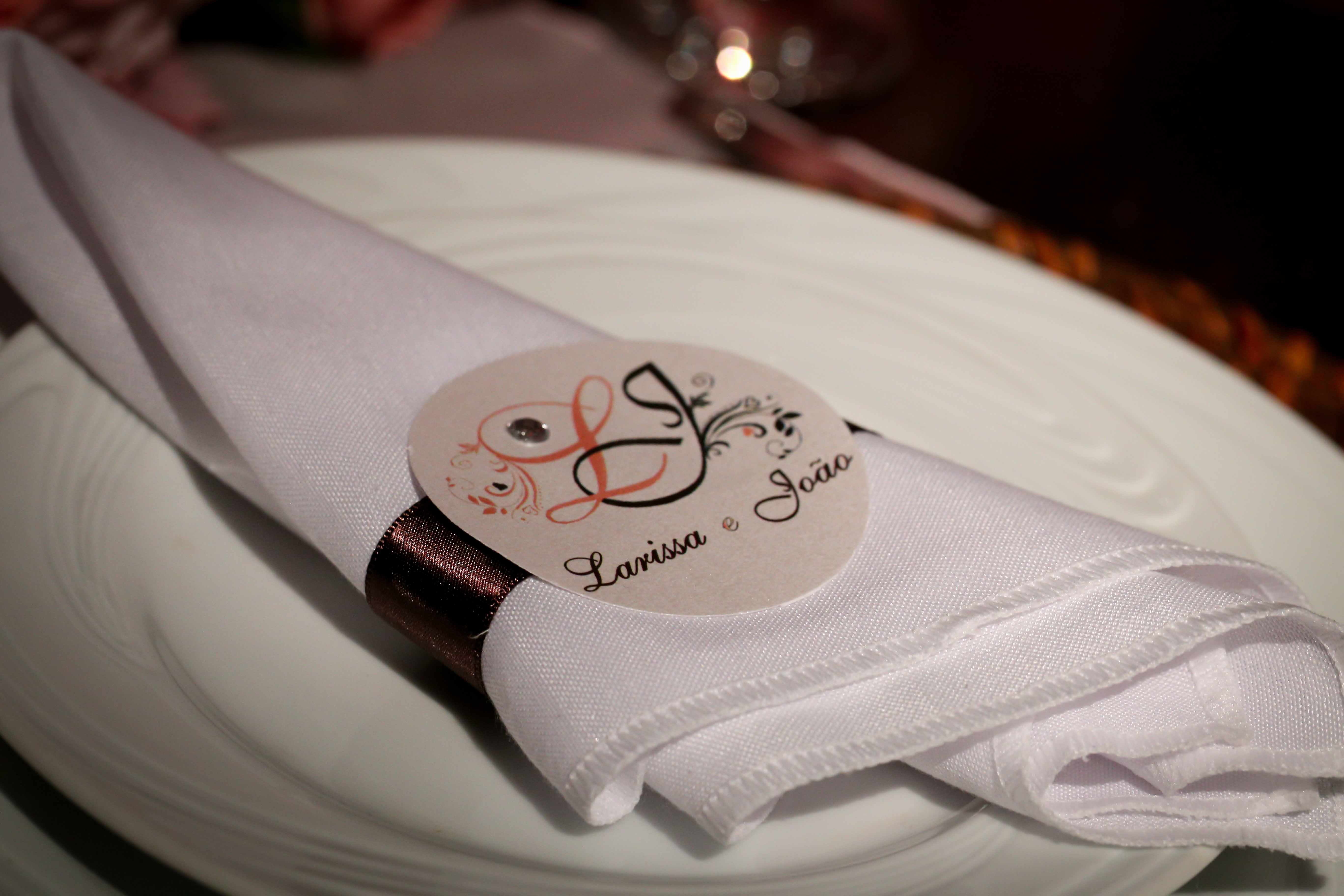 No topo de bolo, ao invés dos noivinhos, foi colocado o brasão dos noivos, usado no convite e em toda a papelaria.